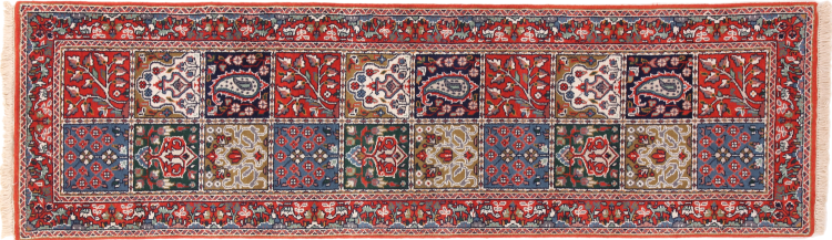 Questo tappeto Indo Ghom, fatto a mano in India, si avvicina molto al suo grande modello dall'Iran. La qualità è decisamente giusta. La sua densità di nodi inferiore consente un imbattibile rapporto qualità-prezzo, che sa come convincere.