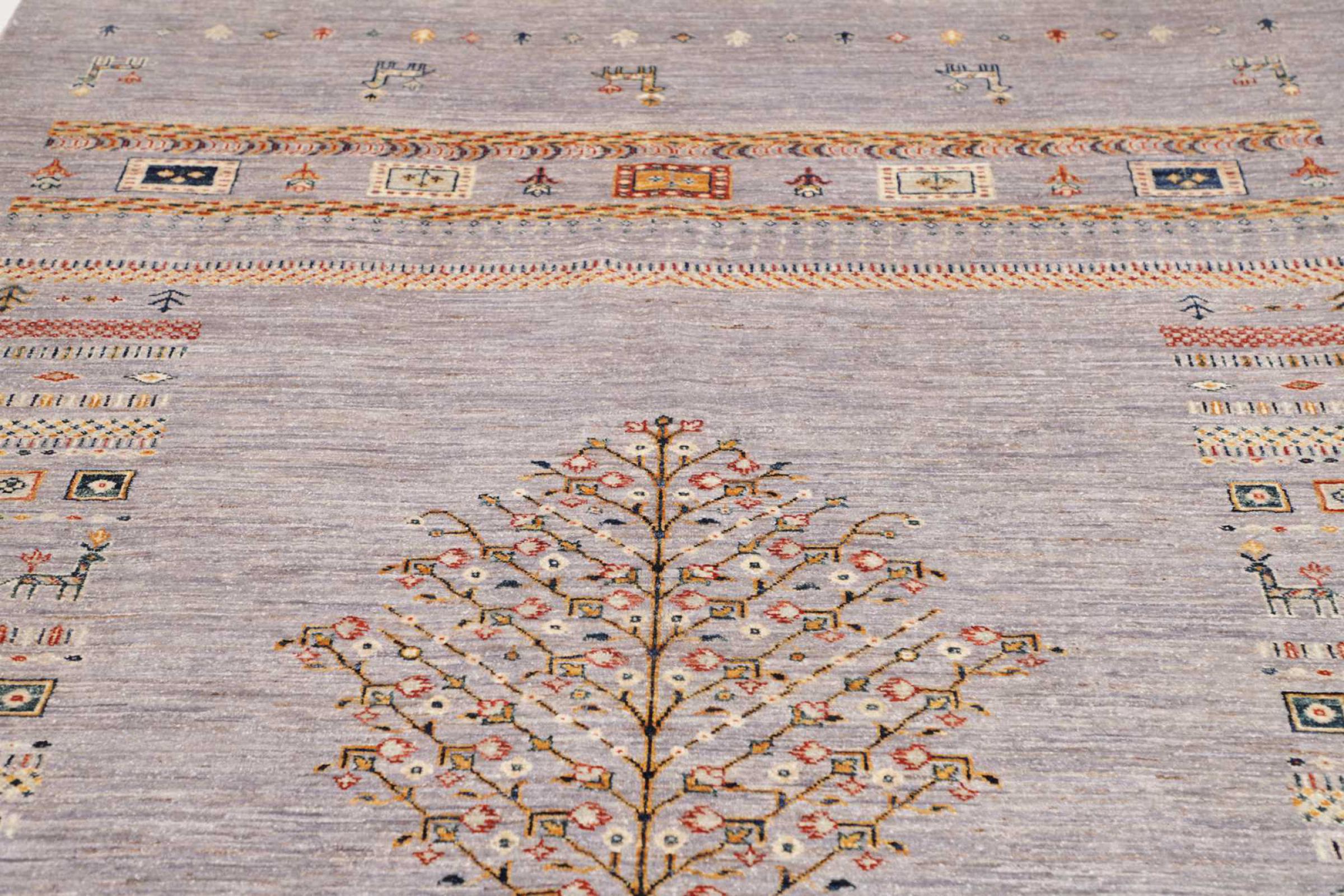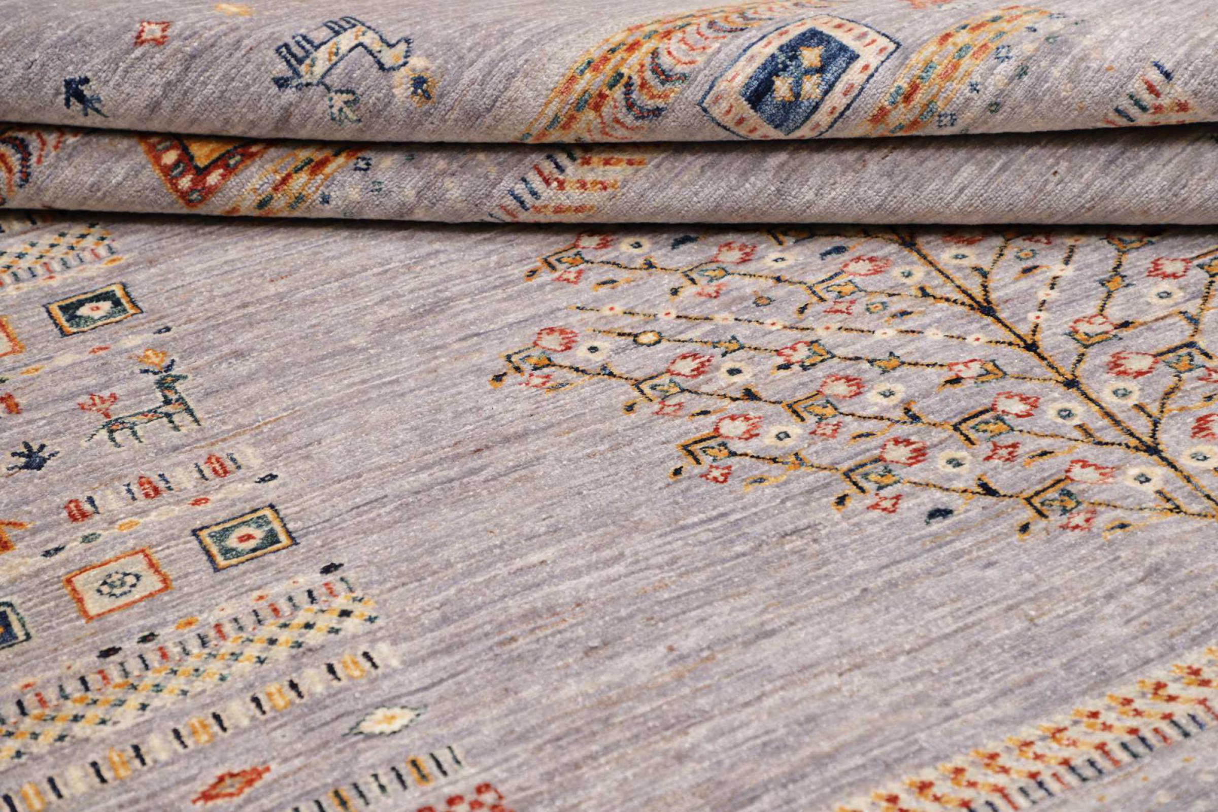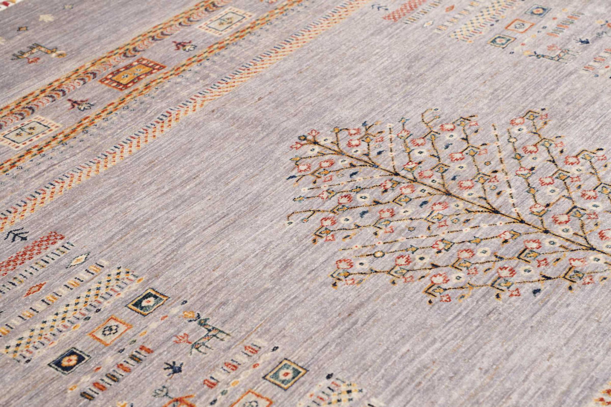Questo tappeto è realizzato in lana di pecora filata a mano di altissima qualità. Soprattutto in Iran (ex Persia), Afghanistan e Pakistan la lana viene ancora filata a mano prima che inizi l'annodatura vera e propria del tappeto. La lana si è dimostrata nei secoli un materiale naturale ed estremamente resistente. Tra le altre cose, ha proprietà di repellenza allo sporco e di isolamento termico. Allo stesso tempo, la lana è incomparabilmente morbida e ha una lucentezza naturale.