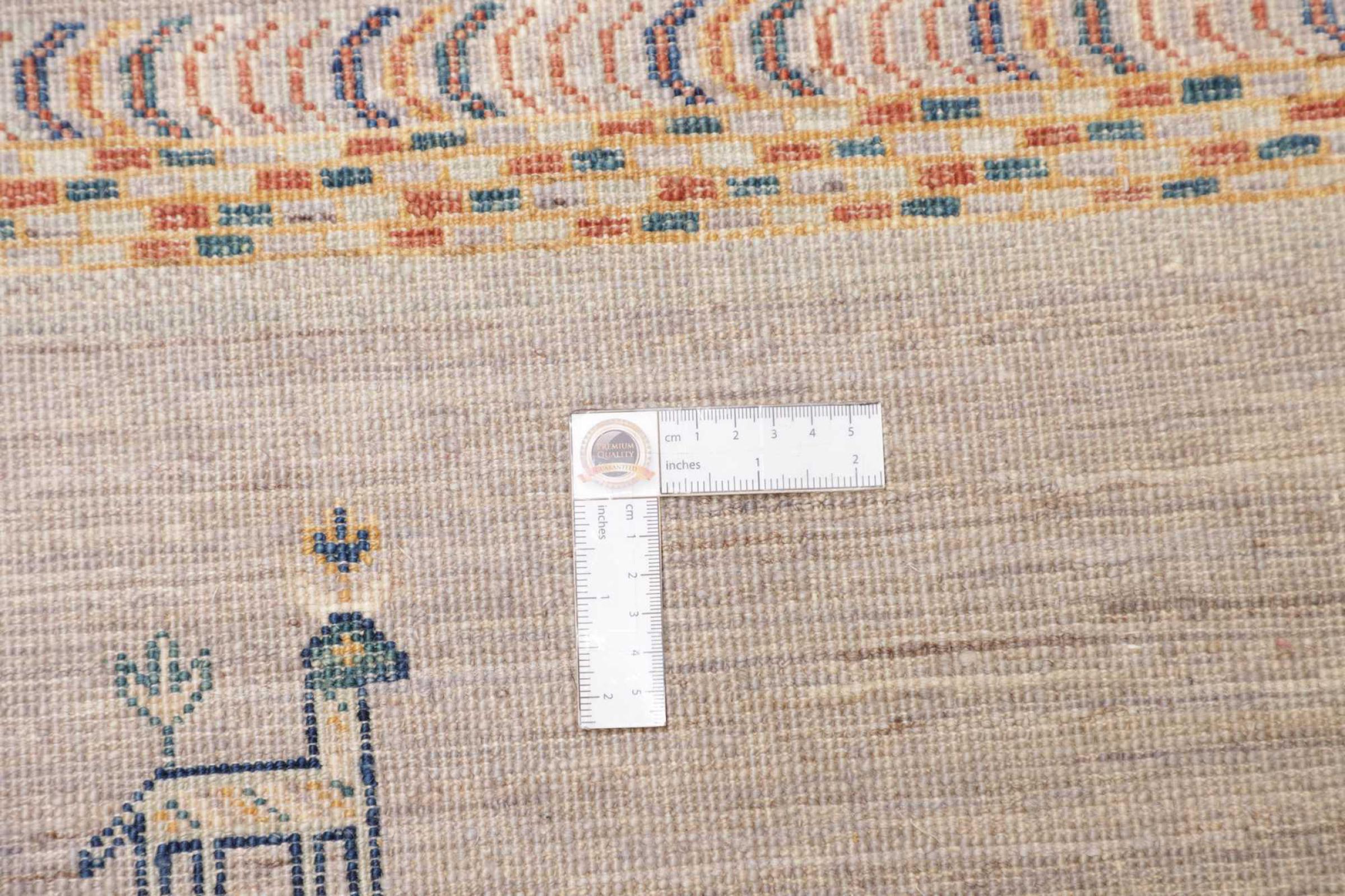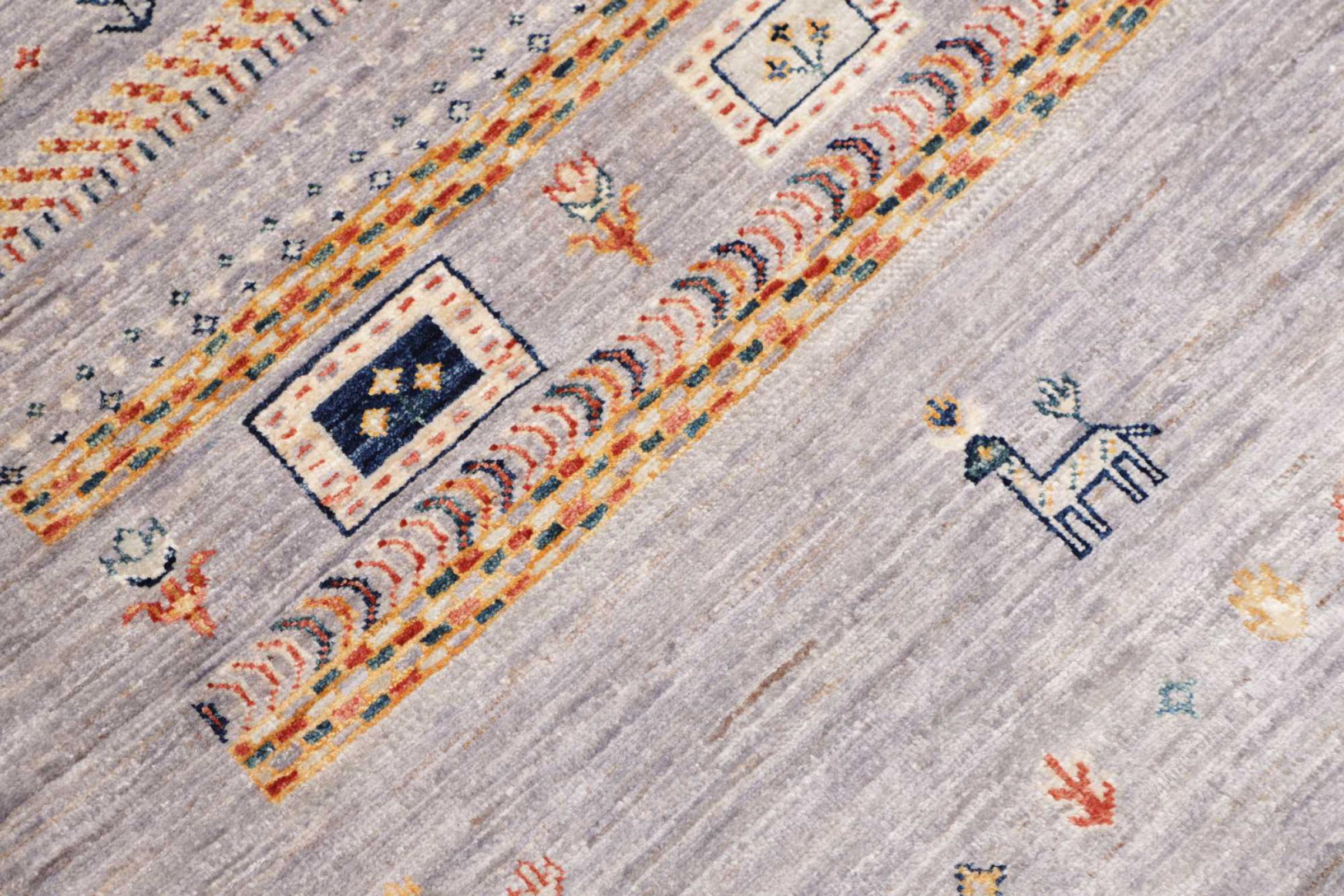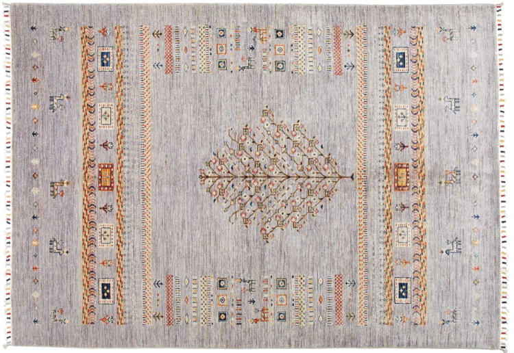 Questo tappeto è realizzato in lana di pecora filata a mano di altissima qualità. Soprattutto in Iran (ex Persia), Afghanistan e Pakistan la lana viene ancora filata a mano prima che inizi l'annodatura vera e propria del tappeto. La lana si è dimostrata nei secoli un materiale naturale ed estremamente resistente. Tra le altre cose, ha proprietà di repellenza allo sporco e di isolamento termico. Allo stesso tempo, la lana è incomparabilmente morbida e ha una lucentezza naturale.