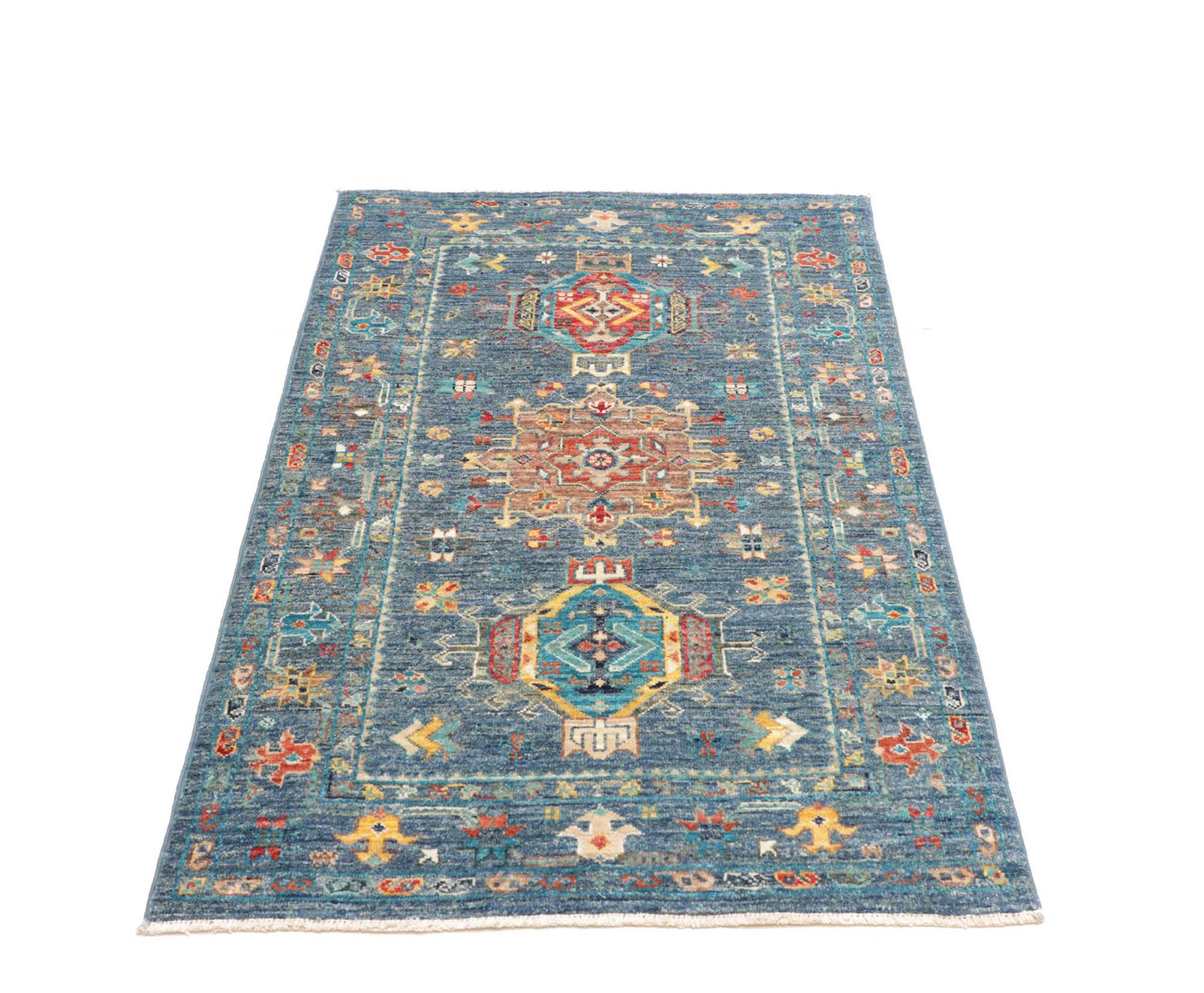Tappeto-N.: 306851002982438 Dimensione: 125x77 cm Spessore: circa . 5 mm Nodi: 128 000 - 160 000 / m² Lavorazione: Annodato a mano Fondo: Lana filata a mano Catena: Cotone Origine: Pakistan Età: Nuovo Peso: circa . 3 kg Disponibile: Unico - Solo 1 disponibili