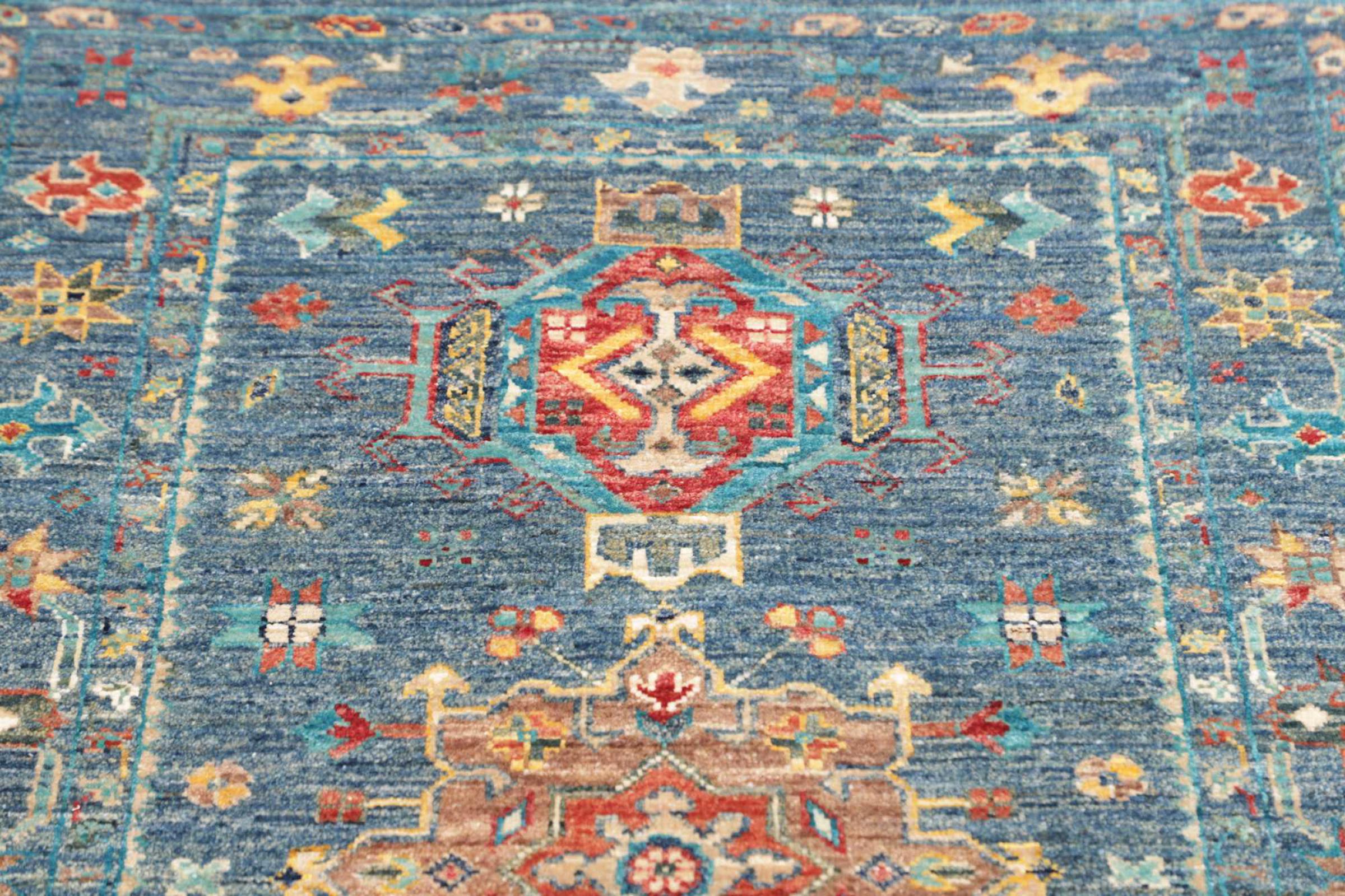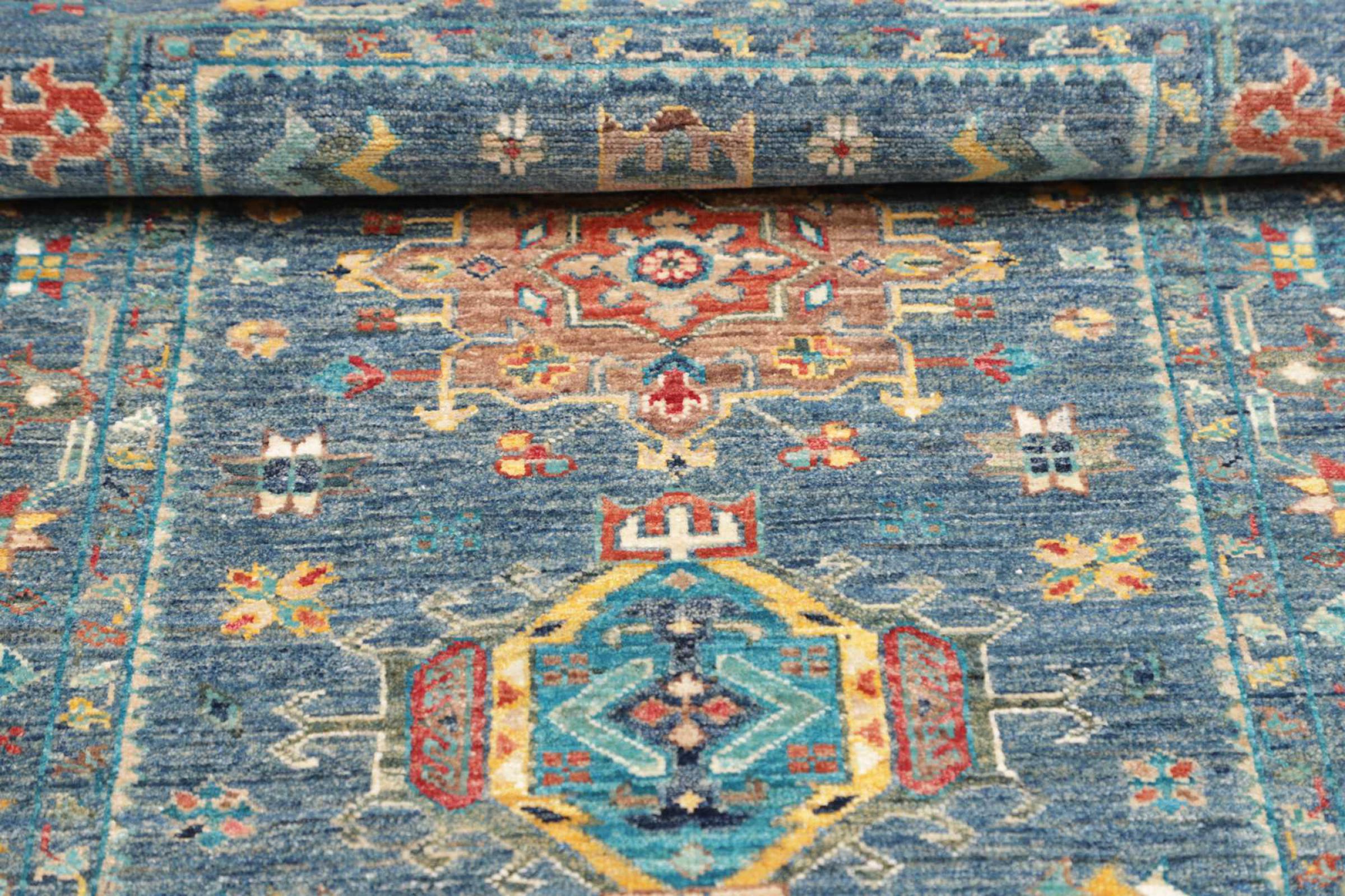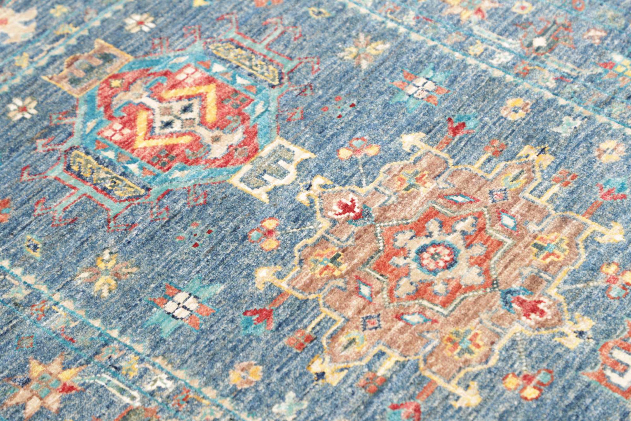 Questo tappeto è realizzato in lana di pecora filata a mano di altissima qualità. Soprattutto in Iran (ex Persia), Afghanistan e Pakistan la lana viene ancora filata a mano prima che inizi l'annodatura vera e propria del tappeto. La lana si è dimostrata nei secoli un materiale naturale ed estremamente resistente. Tra le altre cose, ha proprietà di repellenza allo sporco e di isolamento termico. Allo stesso tempo, la lana è incomparabilmente morbida e ha una lucentezza naturale.