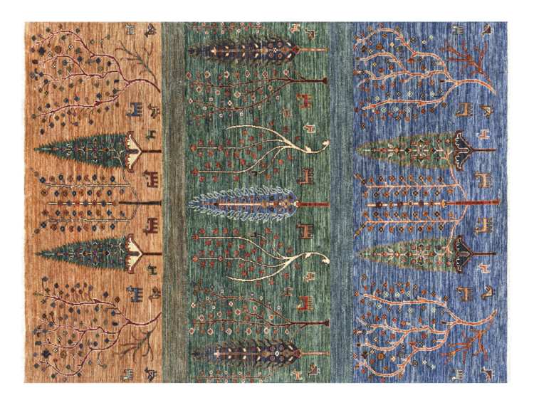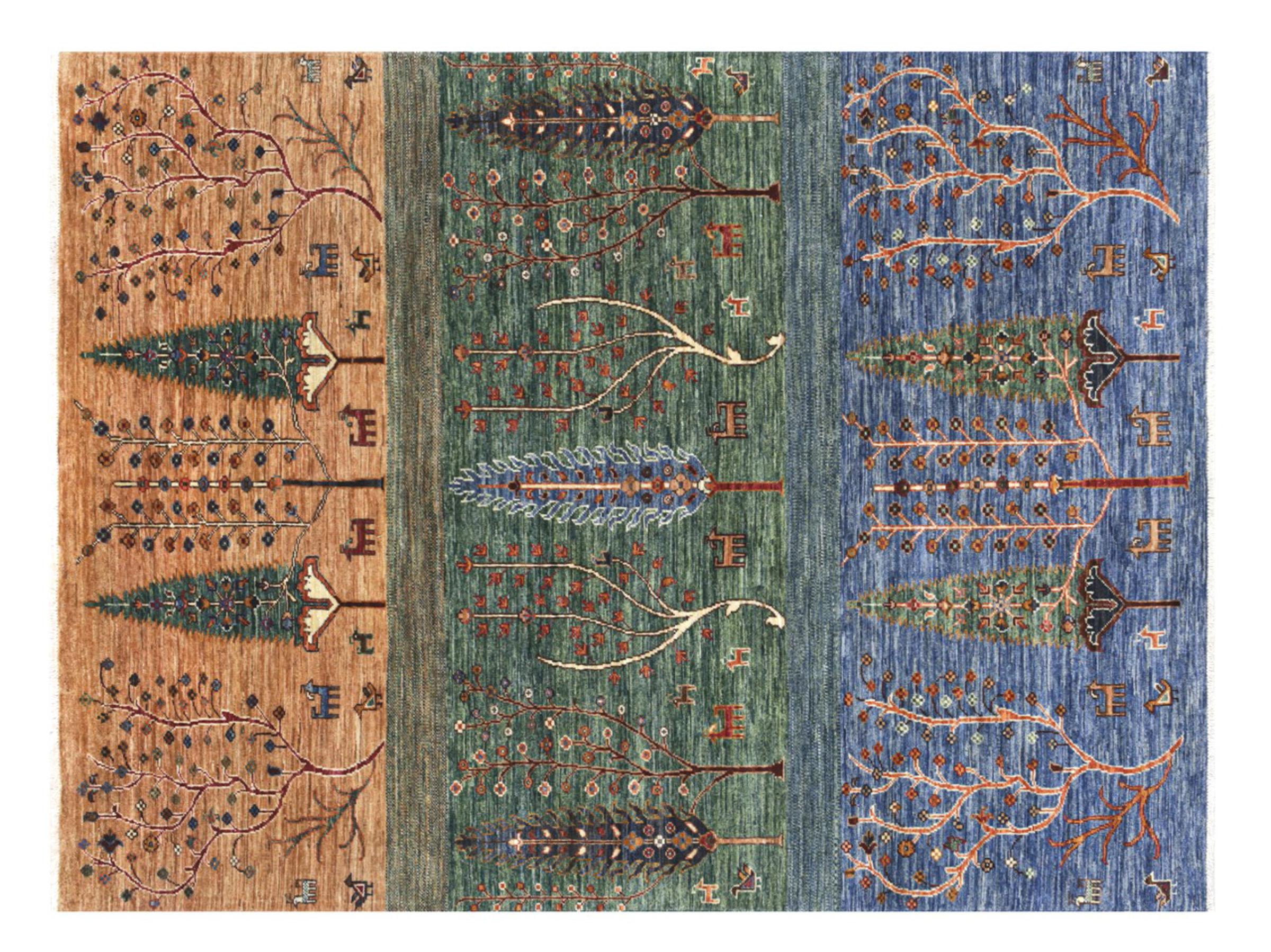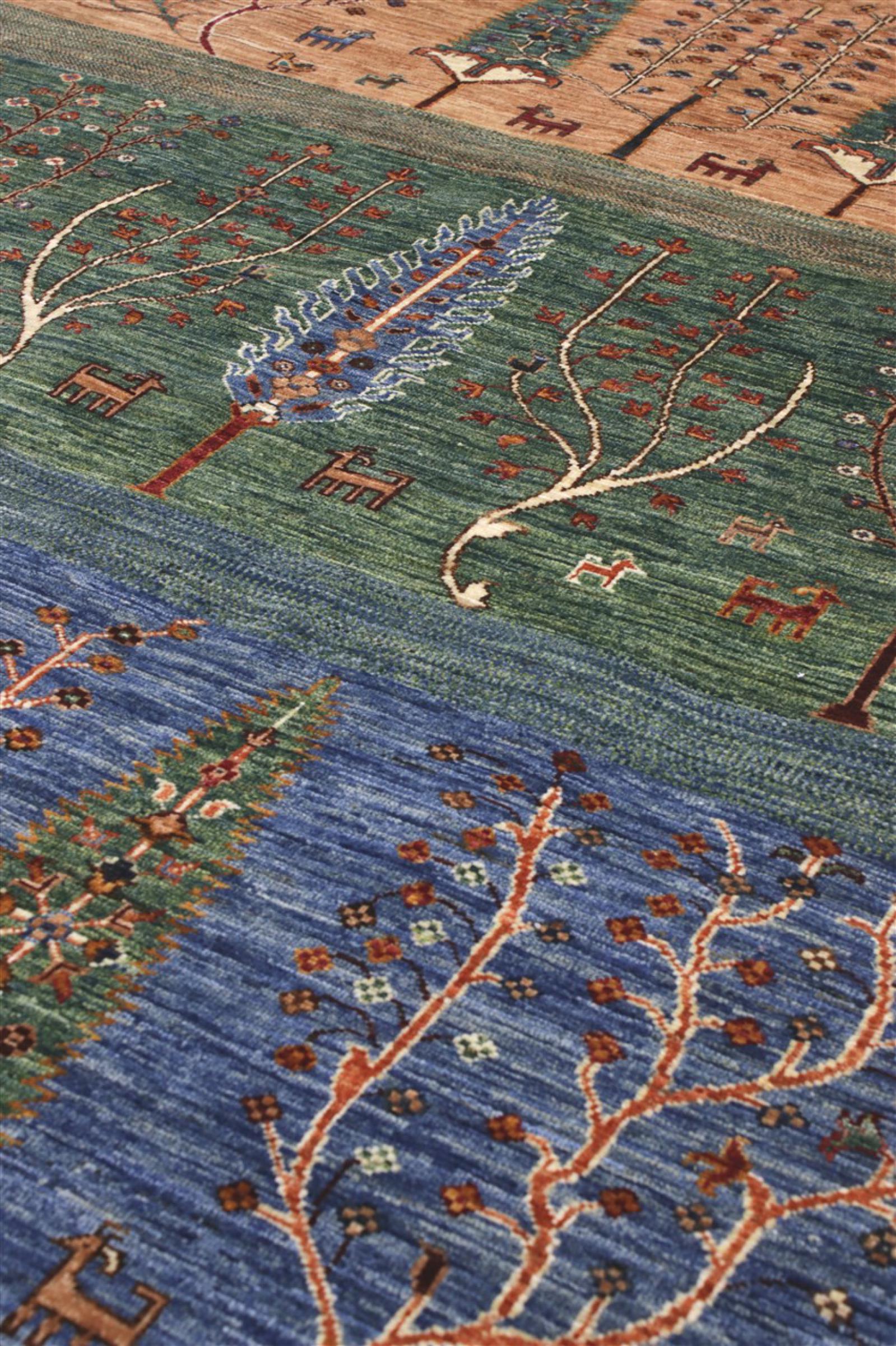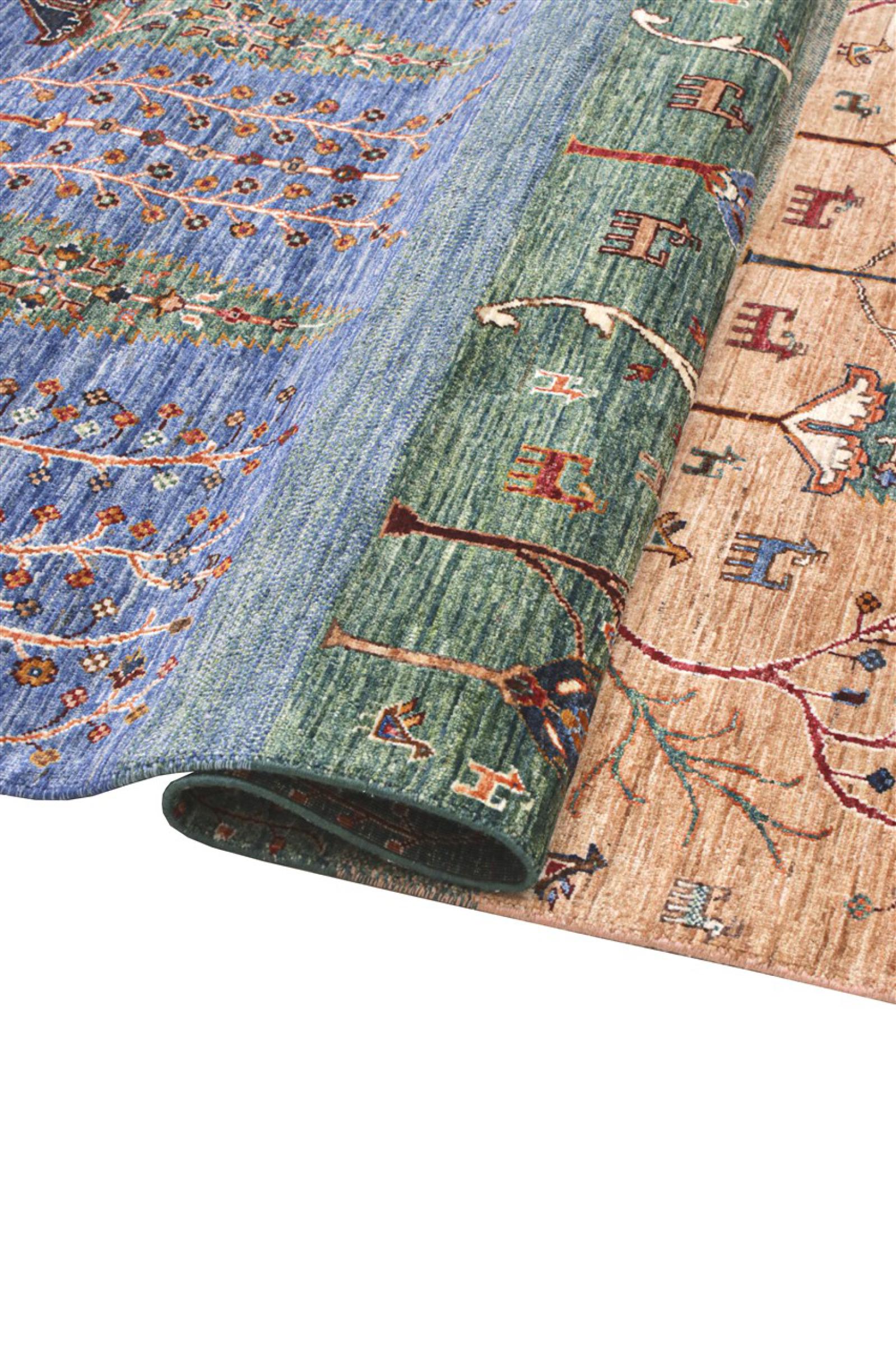 Questo tappeto è realizzato in lana di pecora filata a mano di altissima qualità. Soprattutto in Iran (ex Persia), Afghanistan e Pakistan la lana viene ancora filata a mano prima che inizi l'annodatura vera e propria del tappeto. La lana si è dimostrata nei secoli un materiale naturale ed estremamente resistente. Tra le altre cose, ha proprietà di repellenza allo sporco e di isolamento termico. Allo stesso tempo, la lana è incomparabilmente morbida e ha una lucentezza naturale.