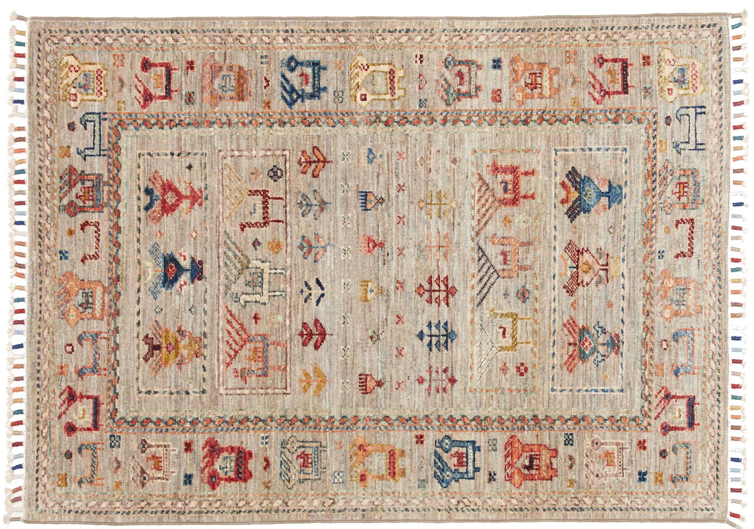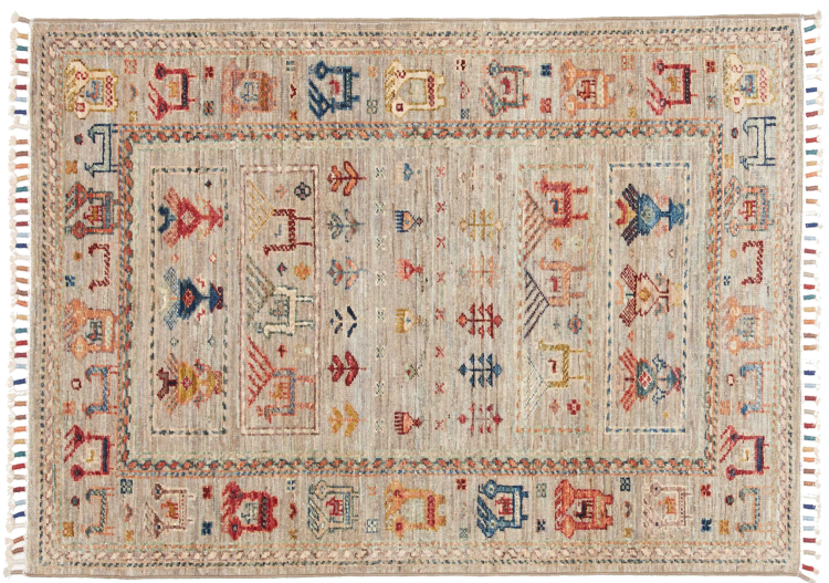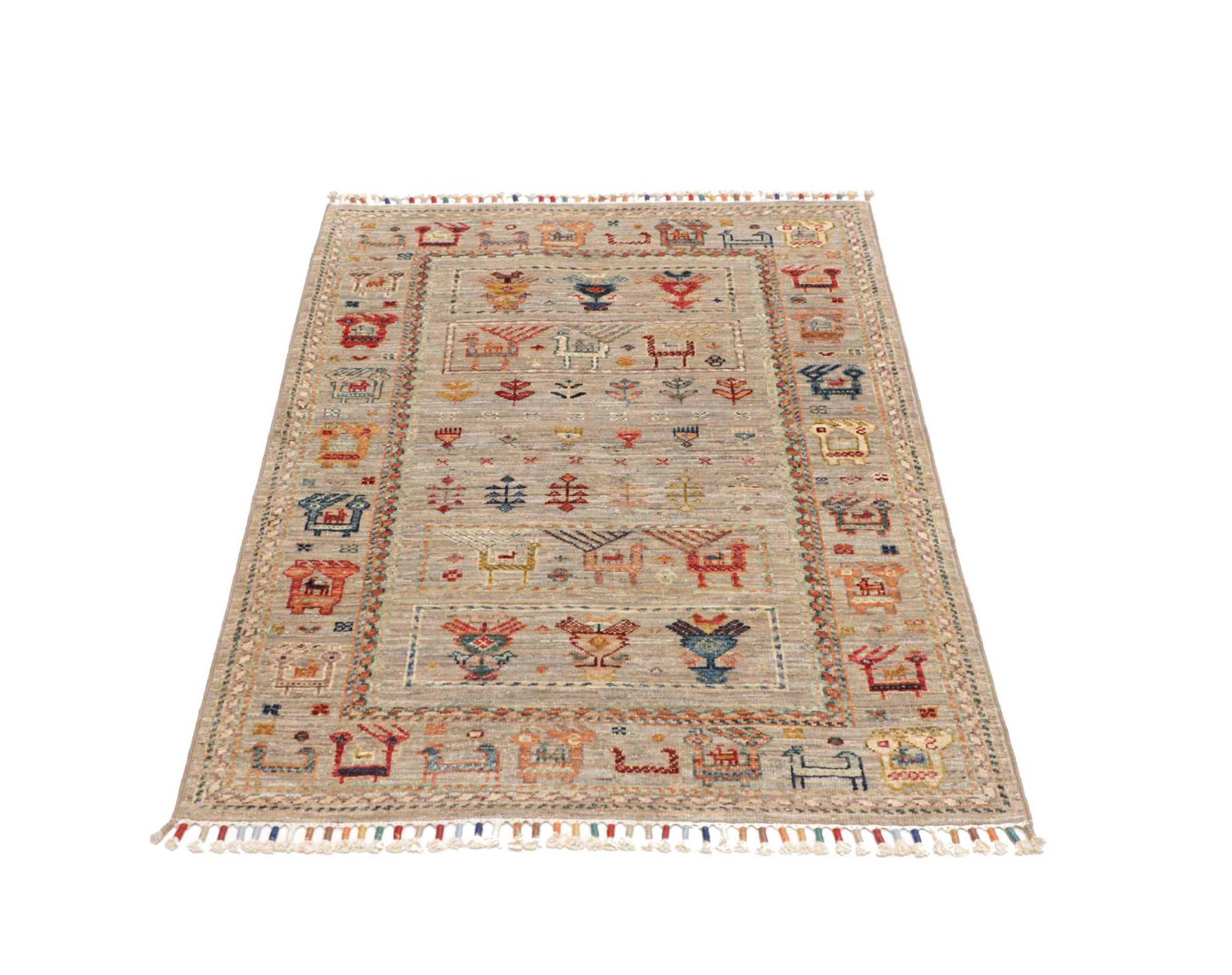 Questo tappeto è realizzato in lana di pecora filata a mano di altissima qualità. Soprattutto in Iran (ex Persia), Afghanistan e Pakistan la lana viene ancora filata a mano prima che inizi l'annodatura vera e propria del tappeto. La lana si è dimostrata nei secoli un materiale naturale ed estremamente resistente. Tra le altre cose, ha proprietà di repellenza allo sporco e di isolamento termico. Allo stesso tempo, la lana è incomparabilmente morbida e ha una lucentezza naturale.