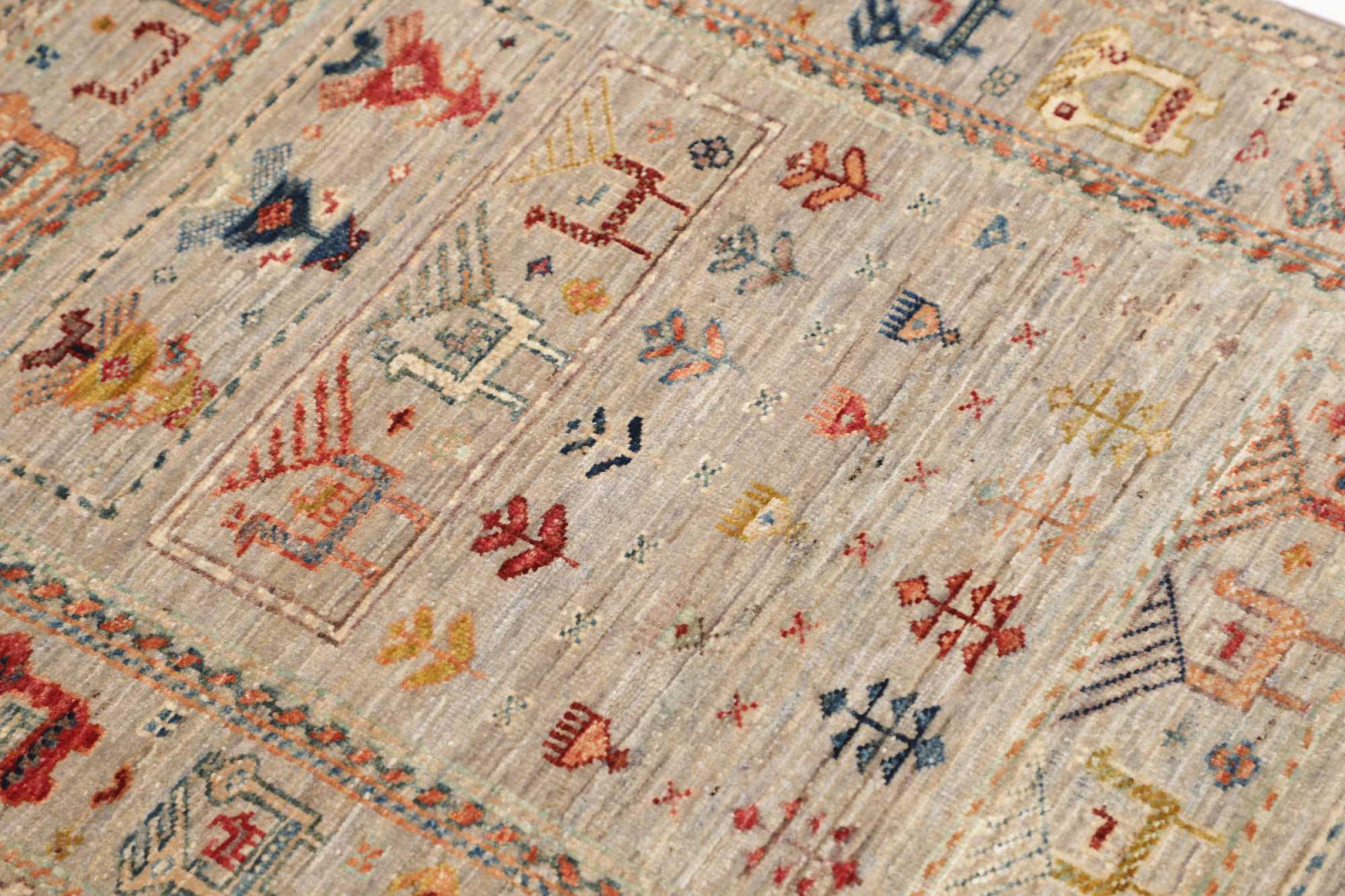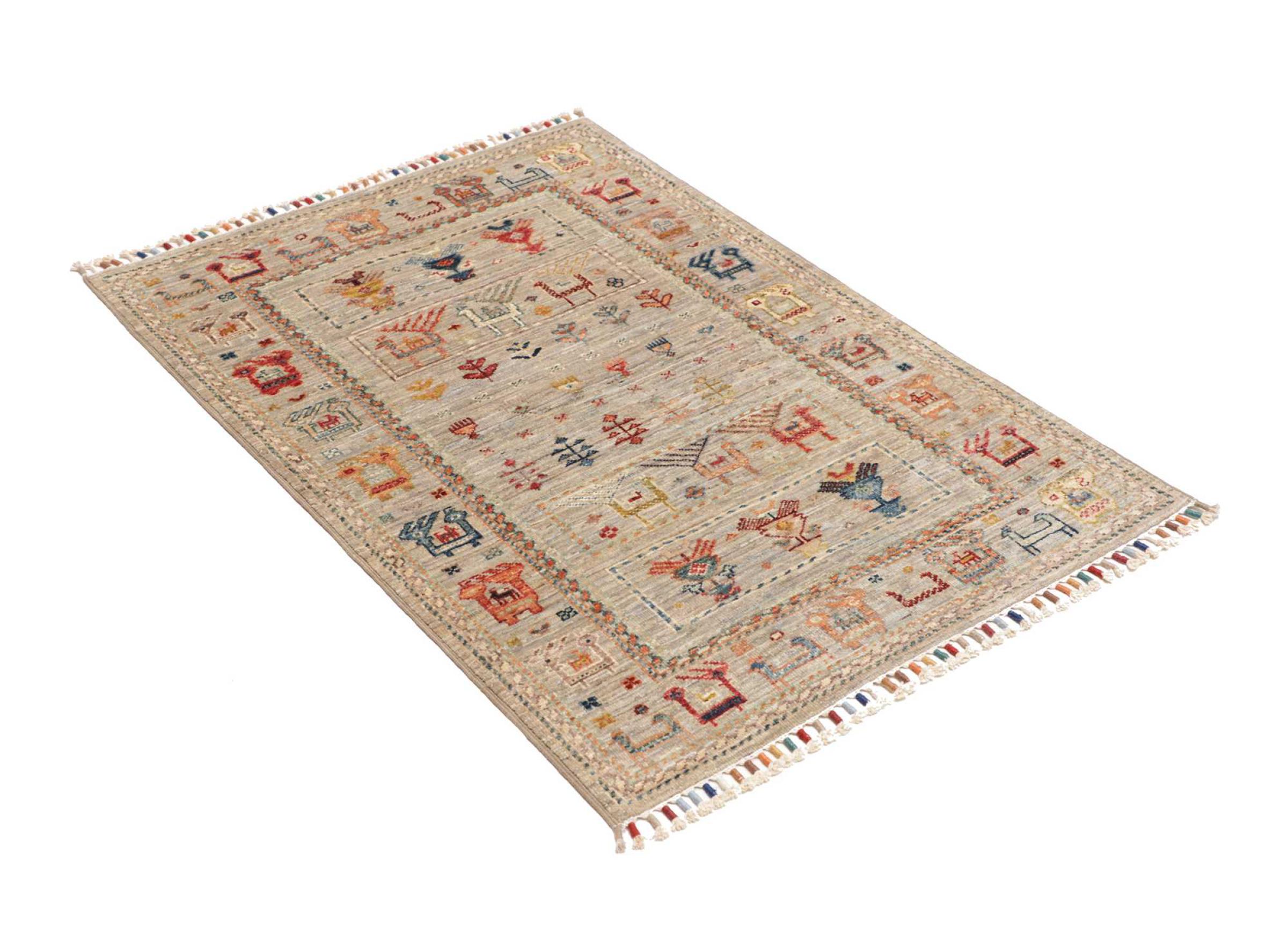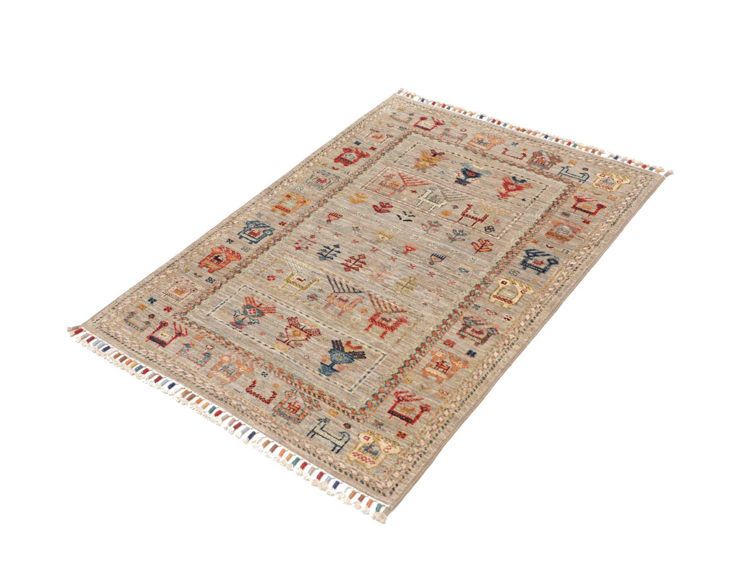 Questo tappeto è realizzato in lana di pecora filata a mano di altissima qualità. Soprattutto in Iran (ex Persia), Afghanistan e Pakistan la lana viene ancora filata a mano prima che inizi l'annodatura vera e propria del tappeto. La lana si è dimostrata nei secoli un materiale naturale ed estremamente resistente. Tra le altre cose, ha proprietà di repellenza allo sporco e di isolamento termico. Allo stesso tempo, la lana è incomparabilmente morbida e ha una lucentezza naturale.