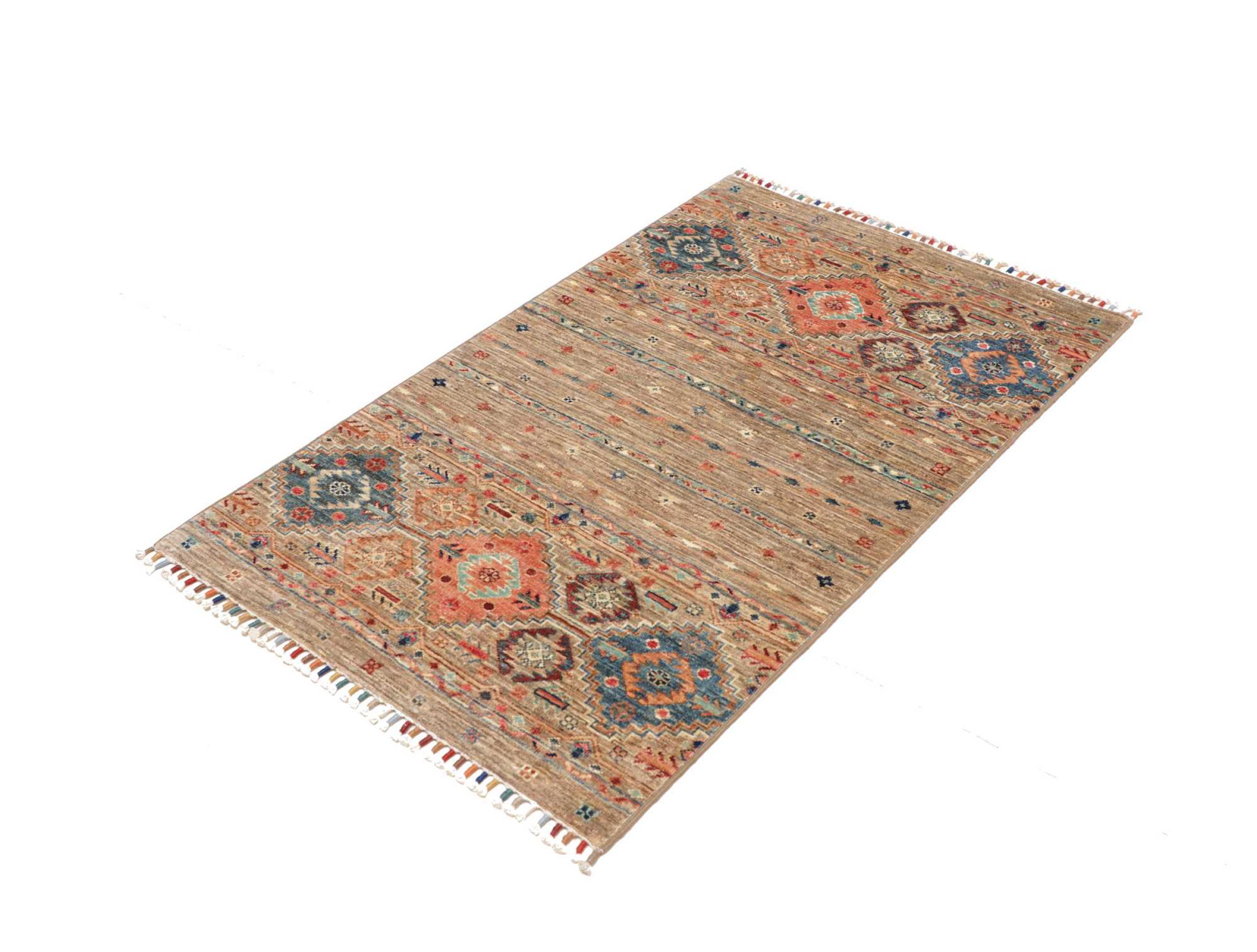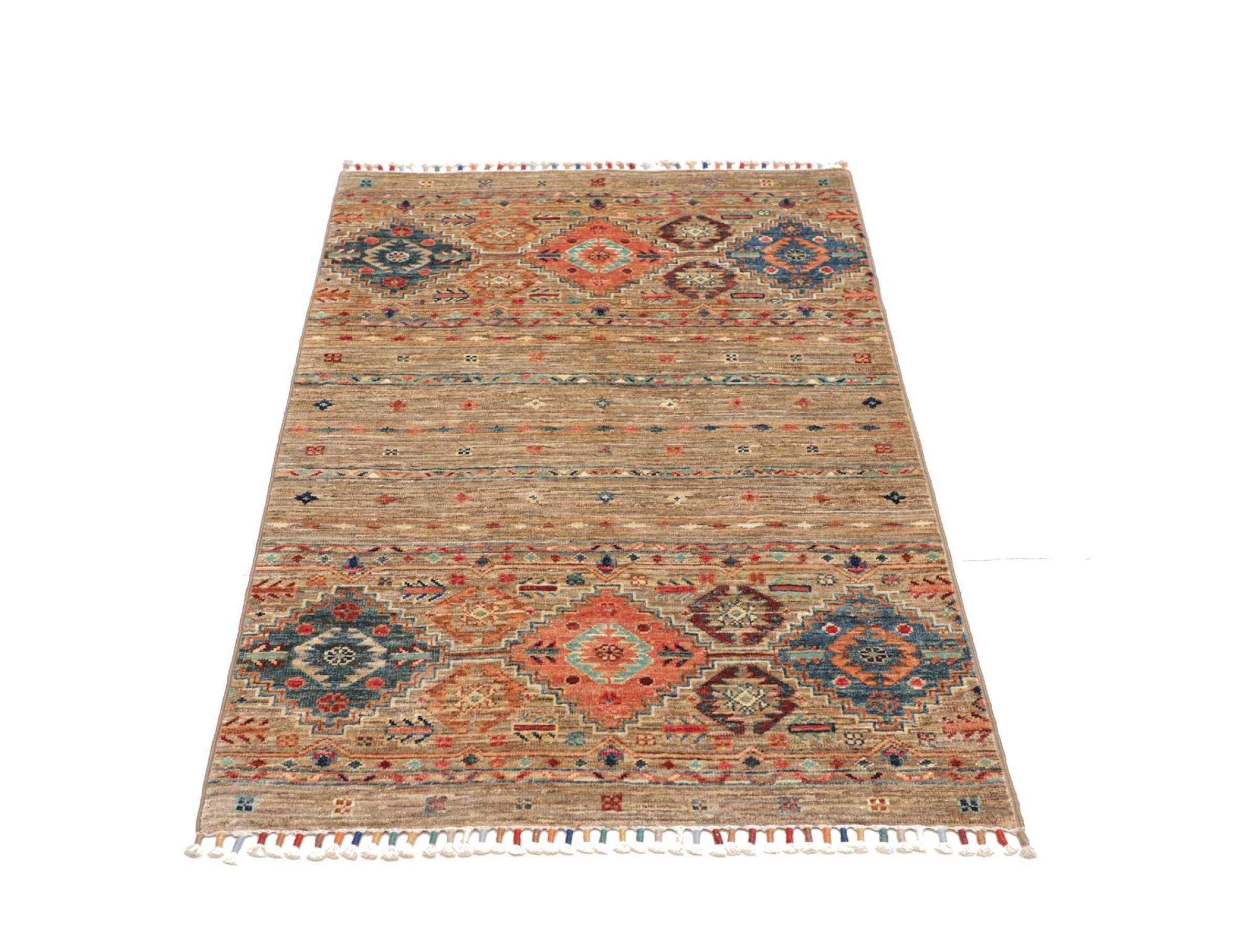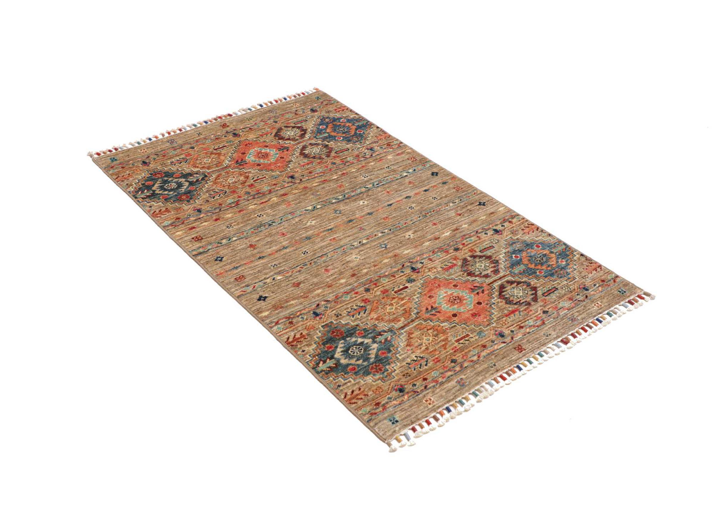 Tappeto-N.: 286758004771937 Dimensione: 124x80 cm Spessore: circa . 5 mm Nodi: 128 000 - 160 000 / m² Lavorazione: Annodato a mano Fondo: Lana filata a mano Catena: Cotone Origine: Pakistan Età: Nuovo Peso: circa . 3 kg Disponibile: Unico - Solo 1 disponibili