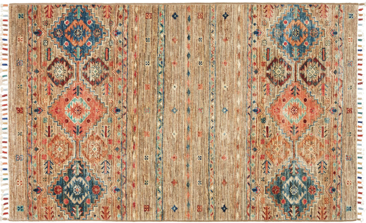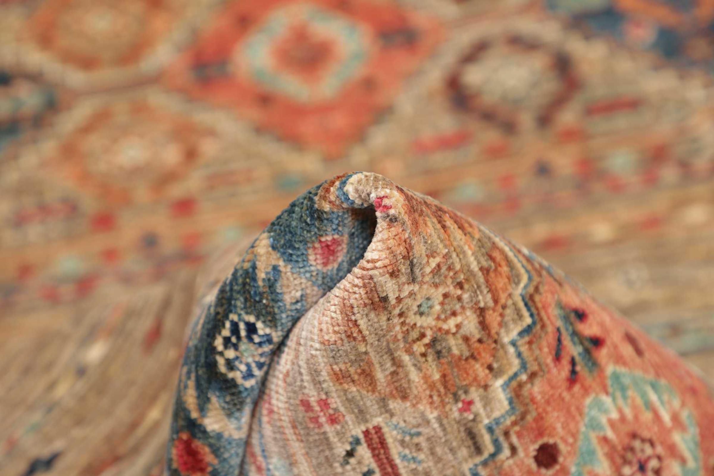 Questo tappeto è realizzato in lana di pecora filata a mano di altissima qualità. Soprattutto in Iran (ex Persia), Afghanistan e Pakistan la lana viene ancora filata a mano prima che inizi l'annodatura vera e propria del tappeto. La lana si è dimostrata nei secoli un materiale naturale ed estremamente resistente. Tra le altre cose, ha proprietà di repellenza allo sporco e di isolamento termico. Allo stesso tempo, la lana è incomparabilmente morbida e ha una lucentezza naturale.