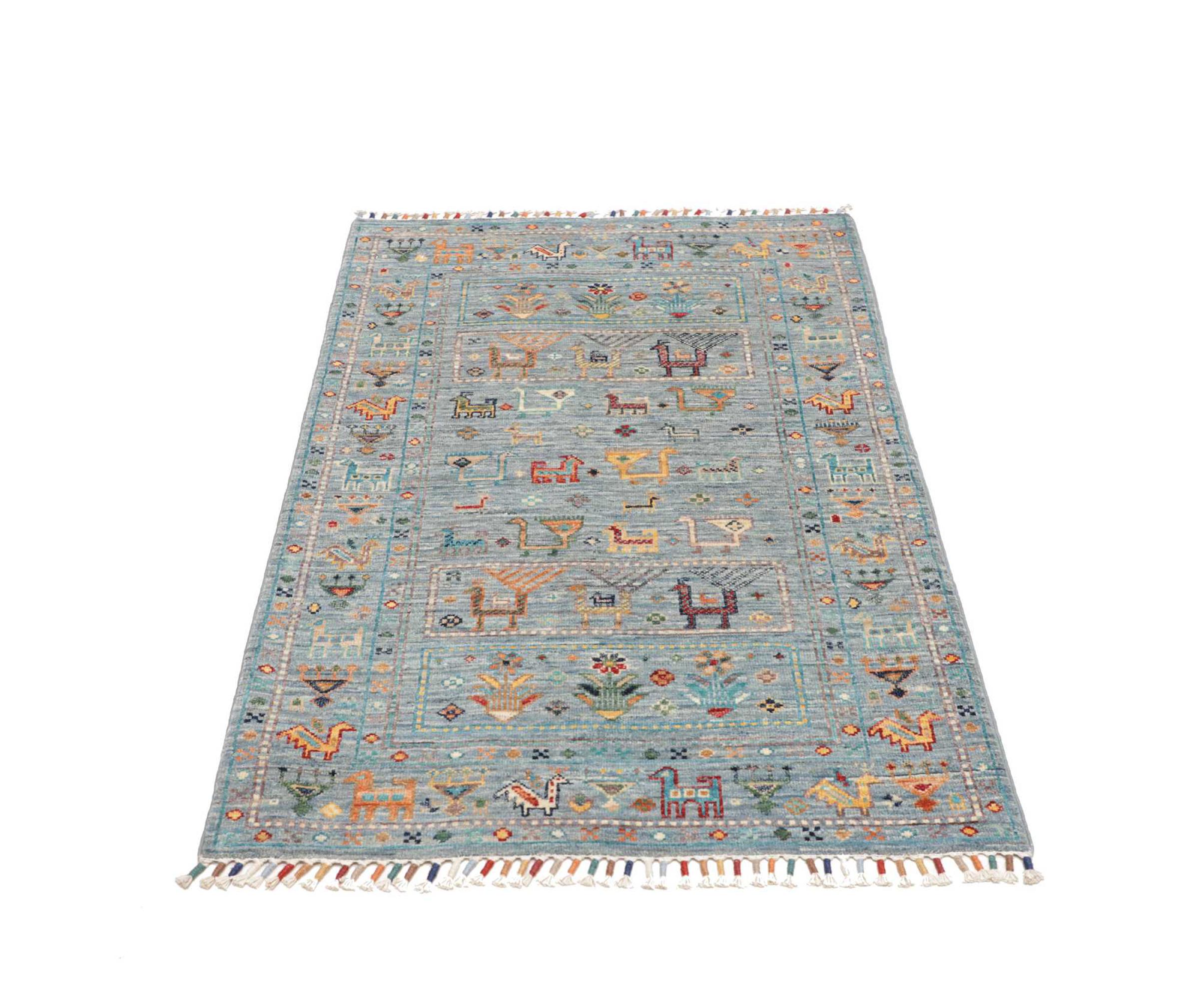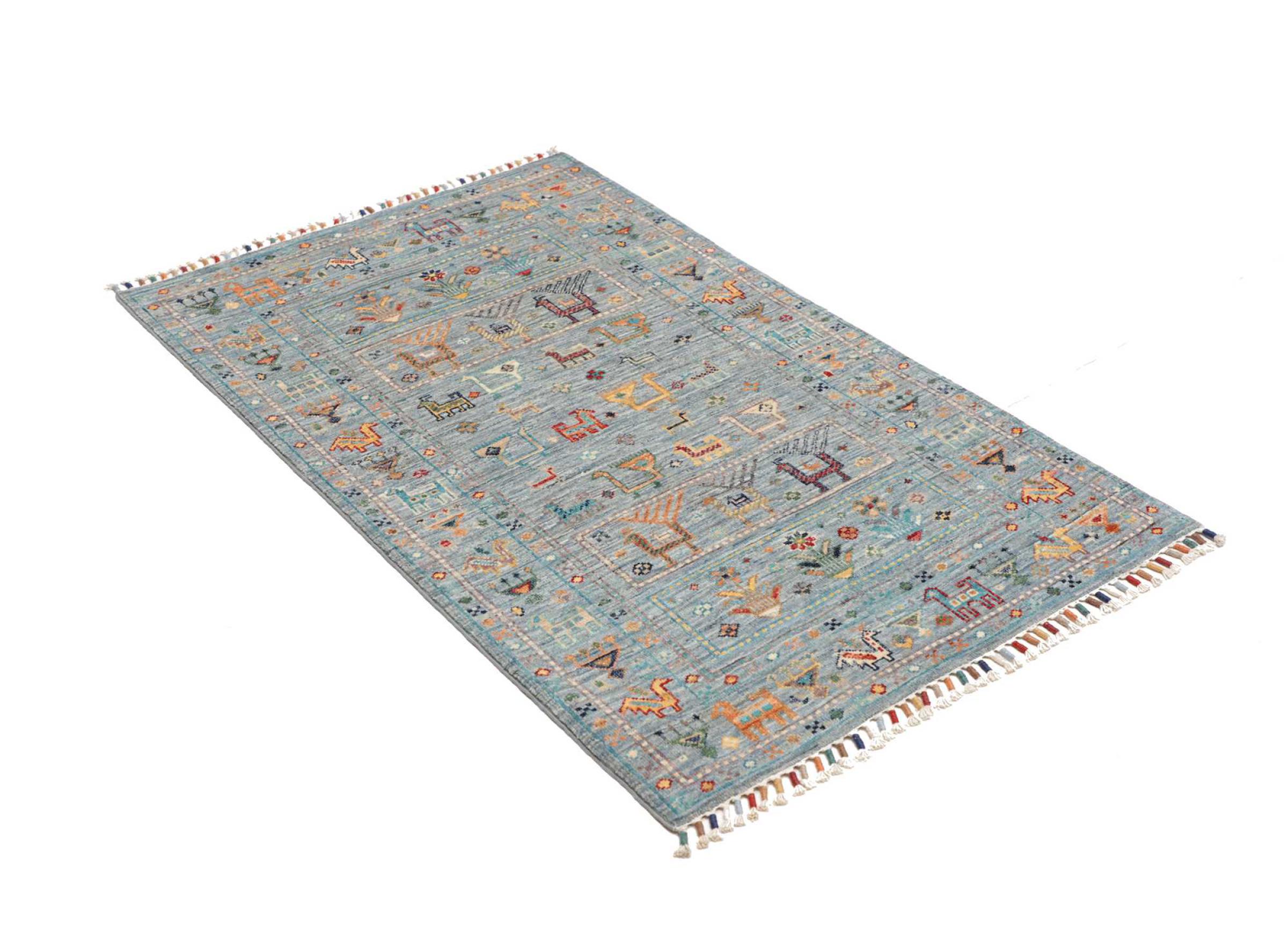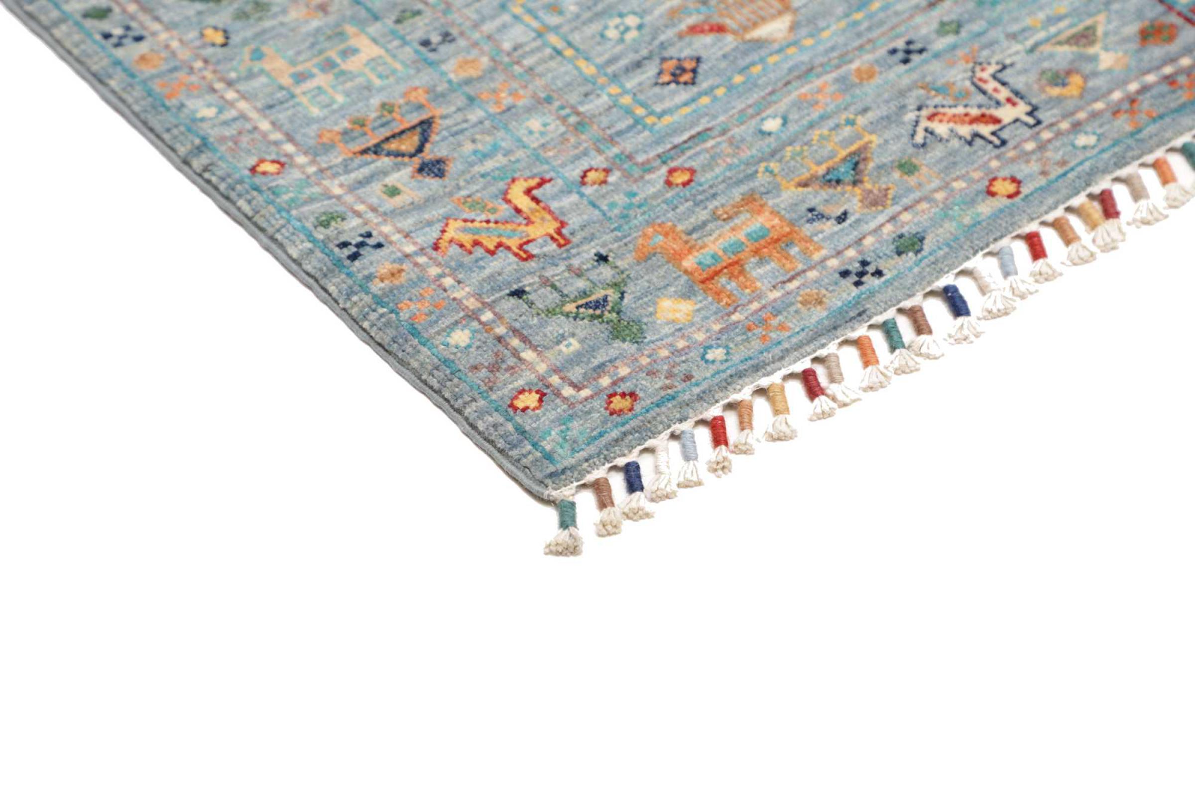 Tappeto-N.: 28679100419577 Dimensione: 124x80 cm Spessore: circa . 5 mm Nodi: 128 000 - 160 000 / m² Lavorazione: Annodato a mano Fondo: Lana filata a mano Catena: Cotone Origine: Pakistan Età: Nuovo Peso: circa . 3 kg Disponibile: Unico - Solo 1 disponibili