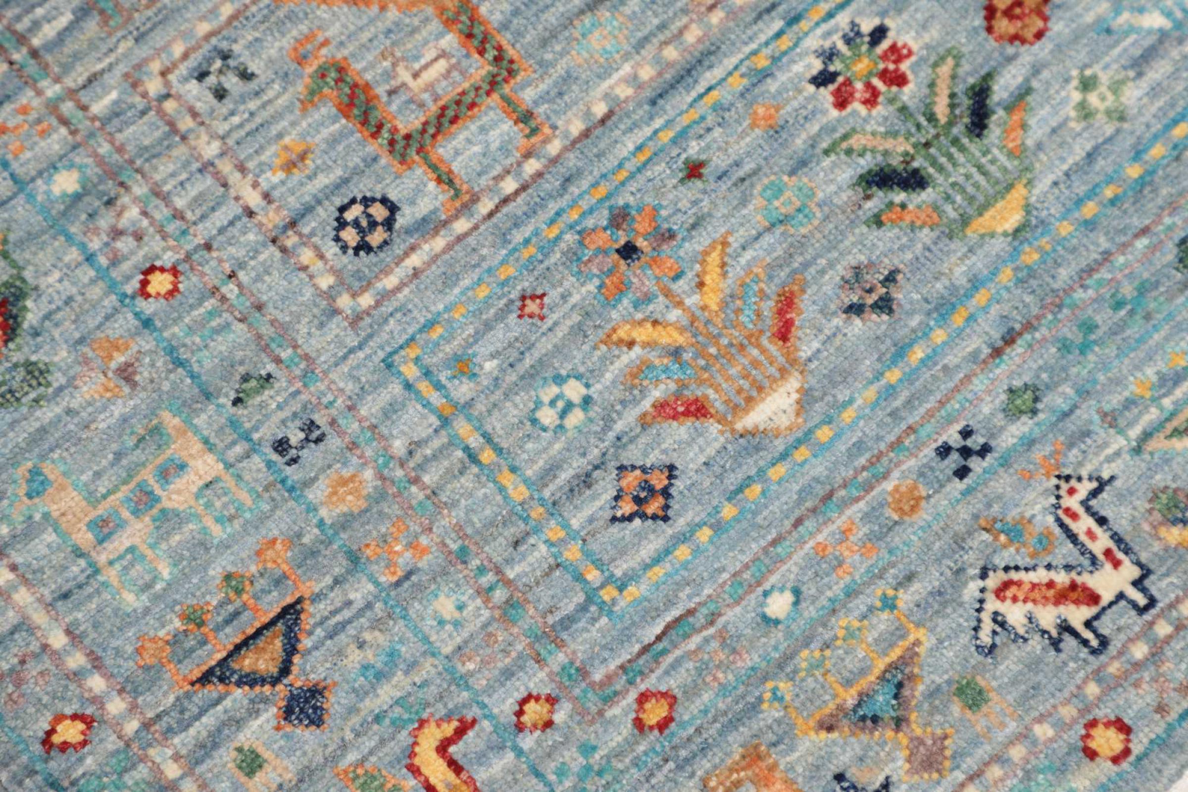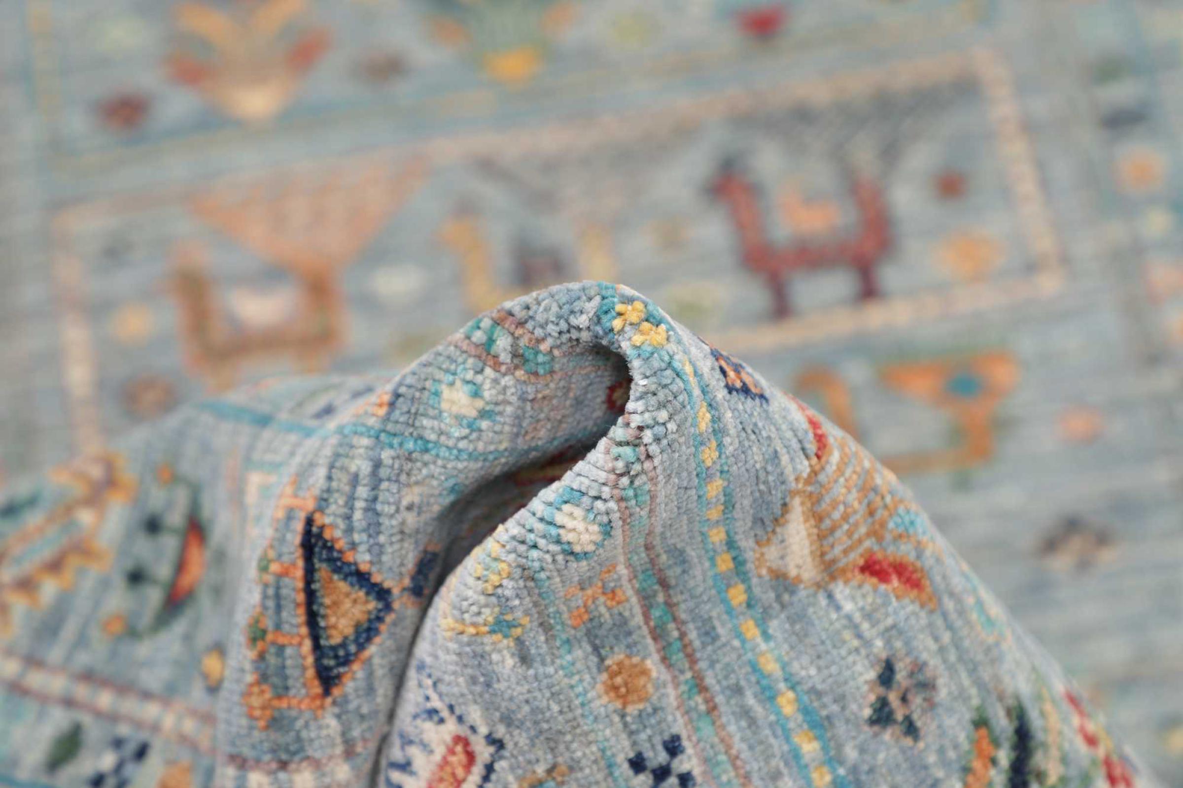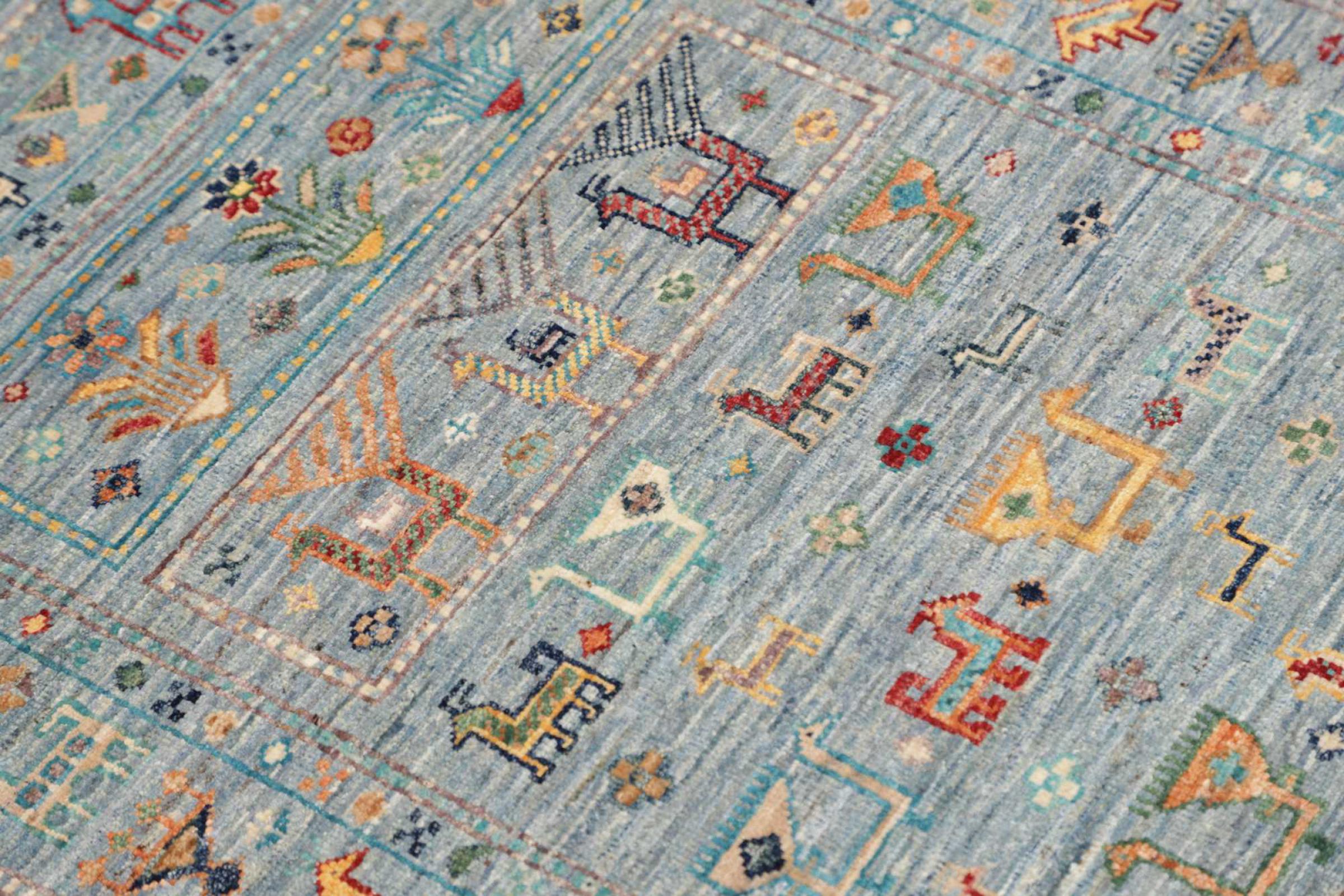 Questo tappeto è realizzato in lana di pecora filata a mano di altissima qualità. Soprattutto in Iran (ex Persia), Afghanistan e Pakistan la lana viene ancora filata a mano prima che inizi l'annodatura vera e propria del tappeto. La lana si è dimostrata nei secoli un materiale naturale ed estremamente resistente. Tra le altre cose, ha proprietà di repellenza allo sporco e di isolamento termico. Allo stesso tempo, la lana è incomparabilmente morbida e ha una lucentezza naturale.