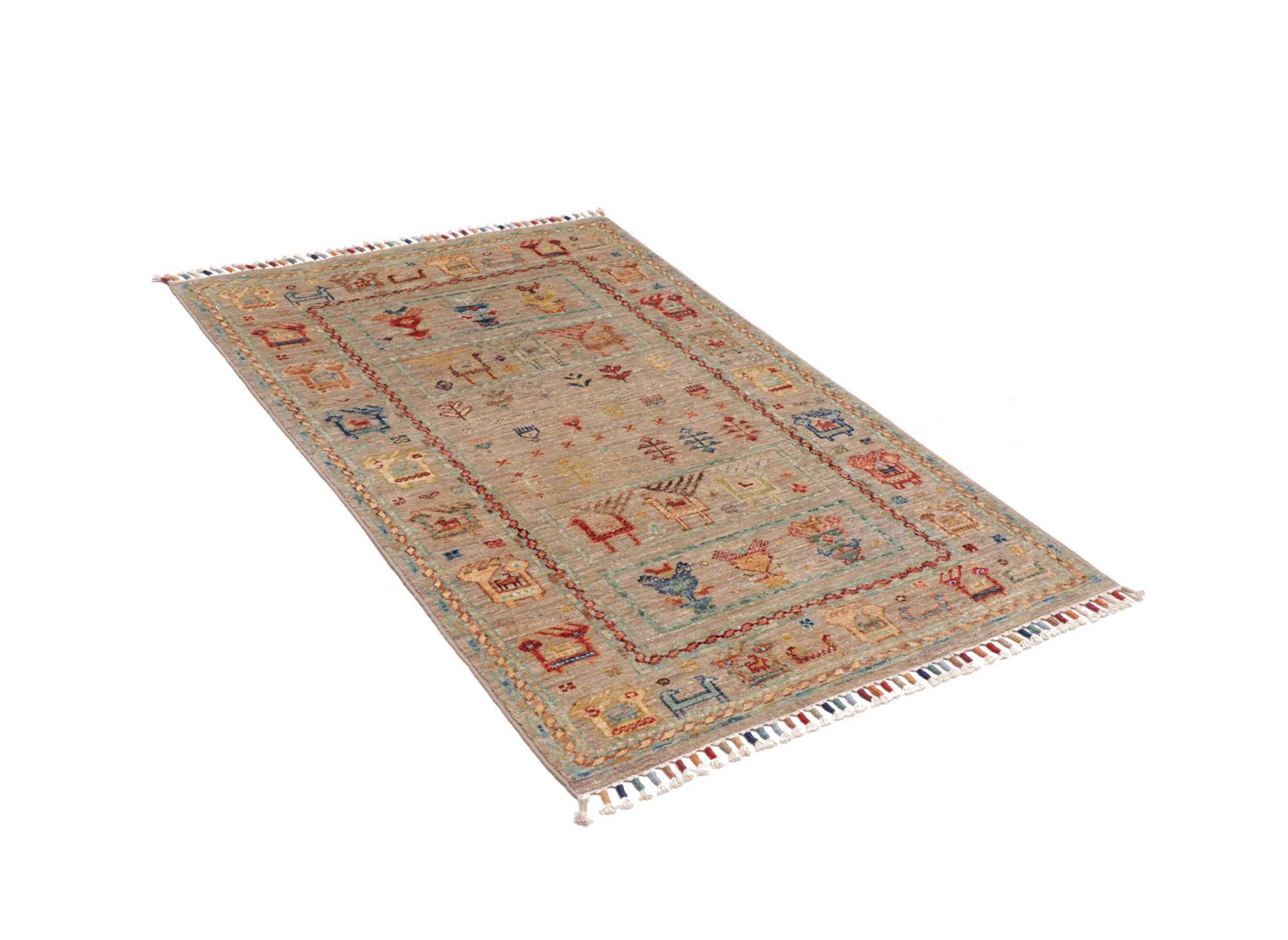 Questo tappeto è realizzato in lana di pecora filata a mano di altissima qualità. Soprattutto in Iran (ex Persia), Afghanistan e Pakistan la lana viene ancora filata a mano prima che inizi l'annodatura vera e propria del tappeto. La lana si è dimostrata nei secoli un materiale naturale ed estremamente resistente. Tra le altre cose, ha proprietà di repellenza allo sporco e di isolamento termico. Allo stesso tempo, la lana è incomparabilmente morbida e ha una lucentezza naturale.