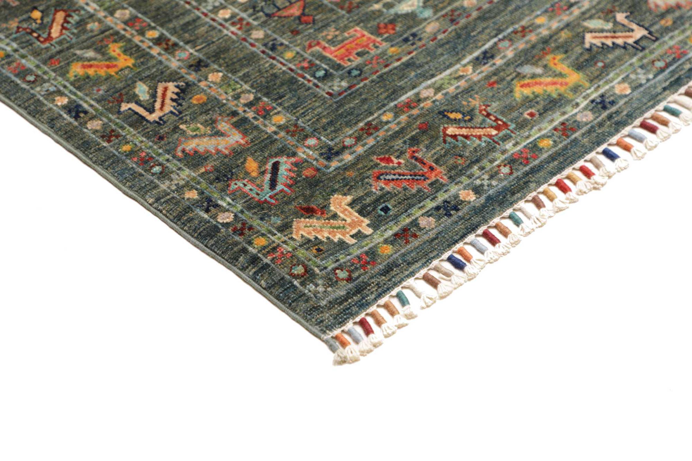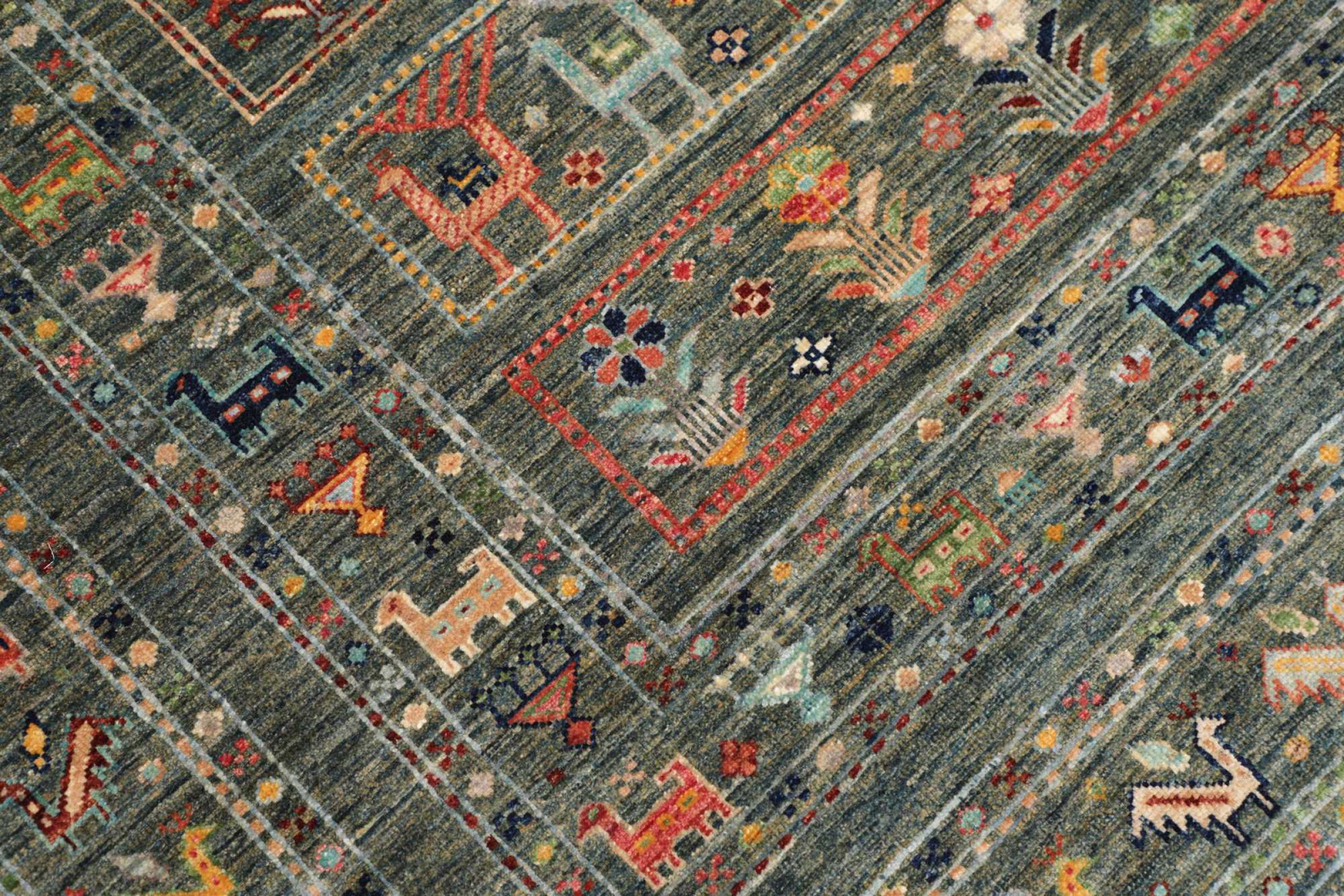 Questo tappeto è realizzato in lana di pecora filata a mano di altissima qualità. Soprattutto in Iran (ex Persia), Afghanistan e Pakistan la lana viene ancora filata a mano prima che inizi l'annodatura vera e propria del tappeto. La lana si è dimostrata nei secoli un materiale naturale ed estremamente resistente. Tra le altre cose, ha proprietà di repellenza allo sporco e di isolamento termico. Allo stesso tempo, la lana è incomparabilmente morbida e ha una lucentezza naturale.