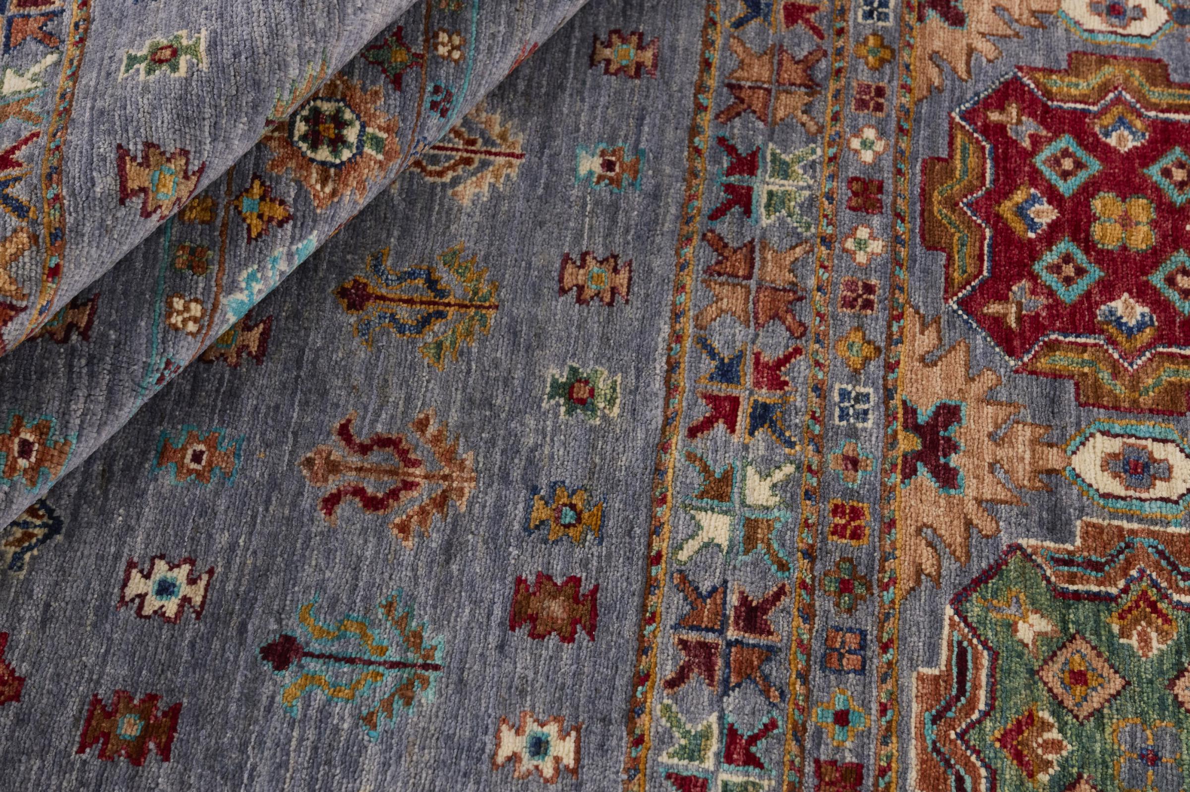 Questo tappeto è realizzato in lana di pecora filata a mano di altissima qualità. Soprattutto in Iran (ex Persia), Afghanistan e Pakistan la lana viene ancora filata a mano prima che inizi l'annodatura vera e propria del tappeto. La lana si è dimostrata nei secoli un materiale naturale ed estremamente resistente. Tra le altre cose, ha proprietà di repellenza allo sporco e di isolamento termico. Allo stesso tempo, la lana è incomparabilmente morbida e ha una lucentezza naturale.