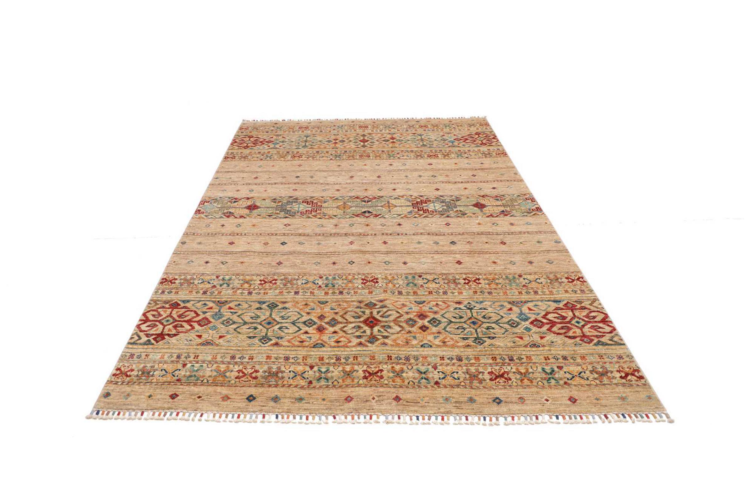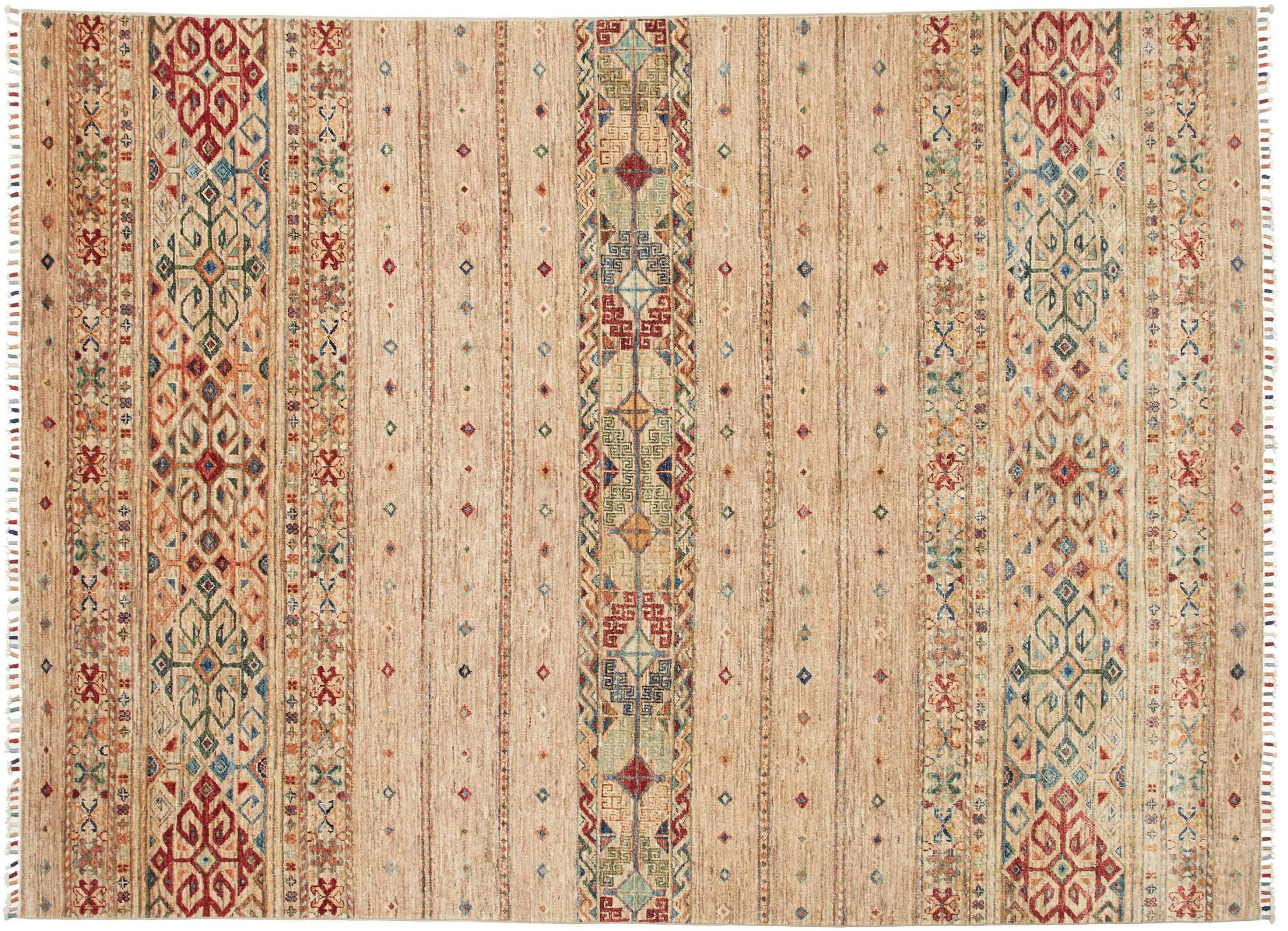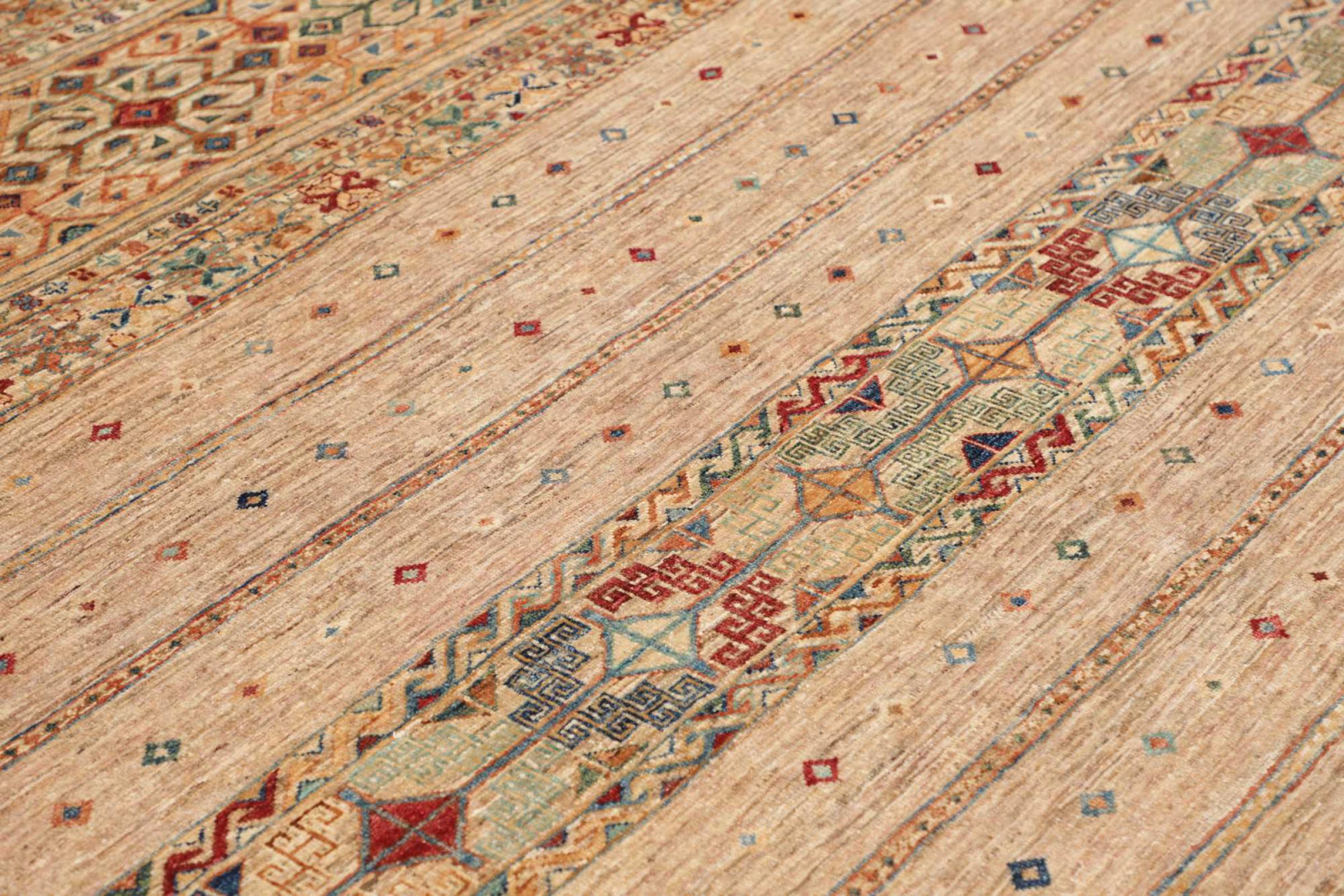 Questo tappeto Arijana Shaal è stato annodato a mano in Pakistan con la migliore maestria artigianale. Promette una qualità molto alta e offre quindi un piacere duraturo. Il motivo a strisce è vario ed emozionante. Si ispirava al noto disegno di Moharamati. Se i tappeti monocromi sono troppo noiosi per voi, sarete sicuramente deliziati da questa Arijana Shaal.