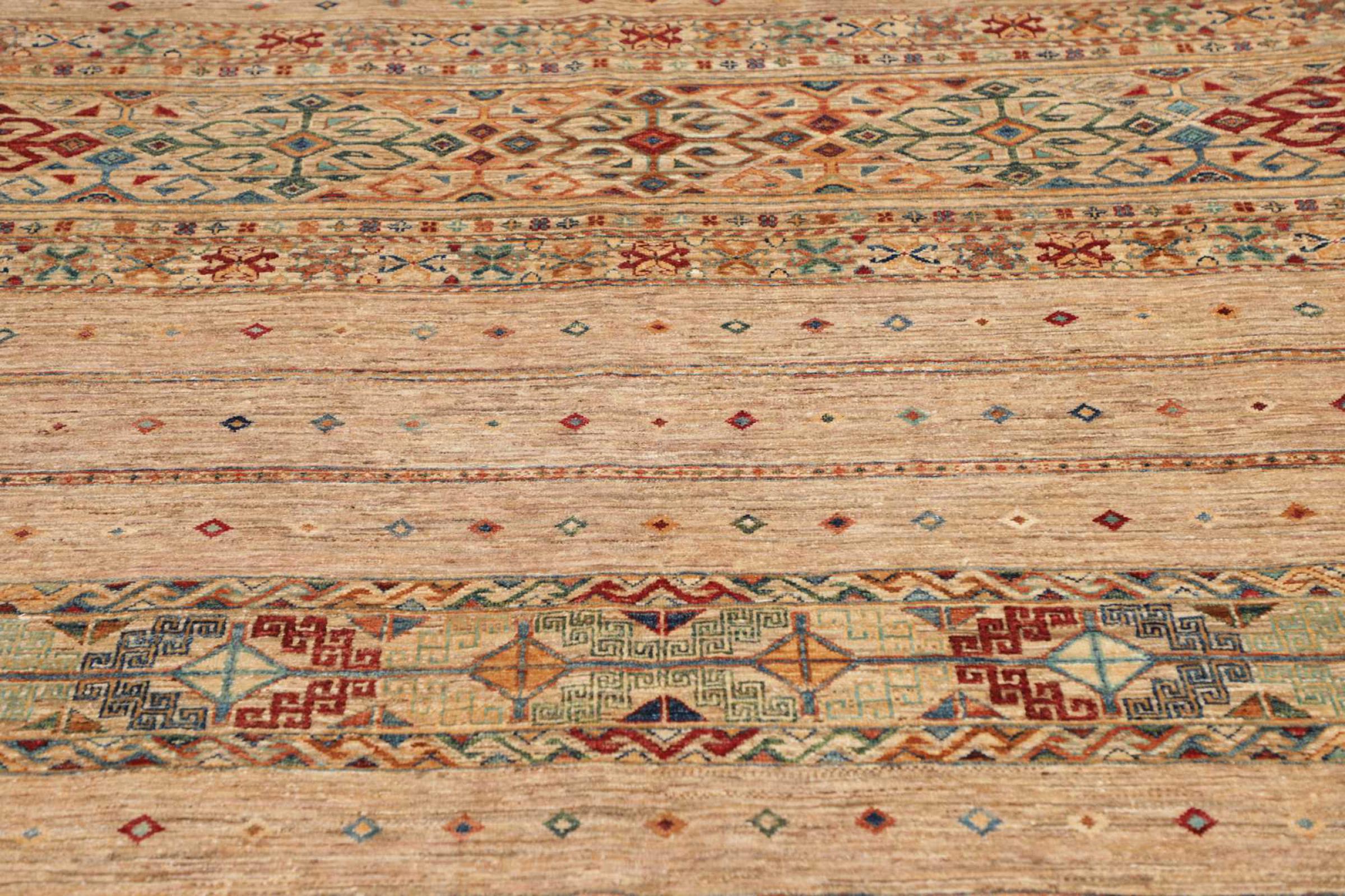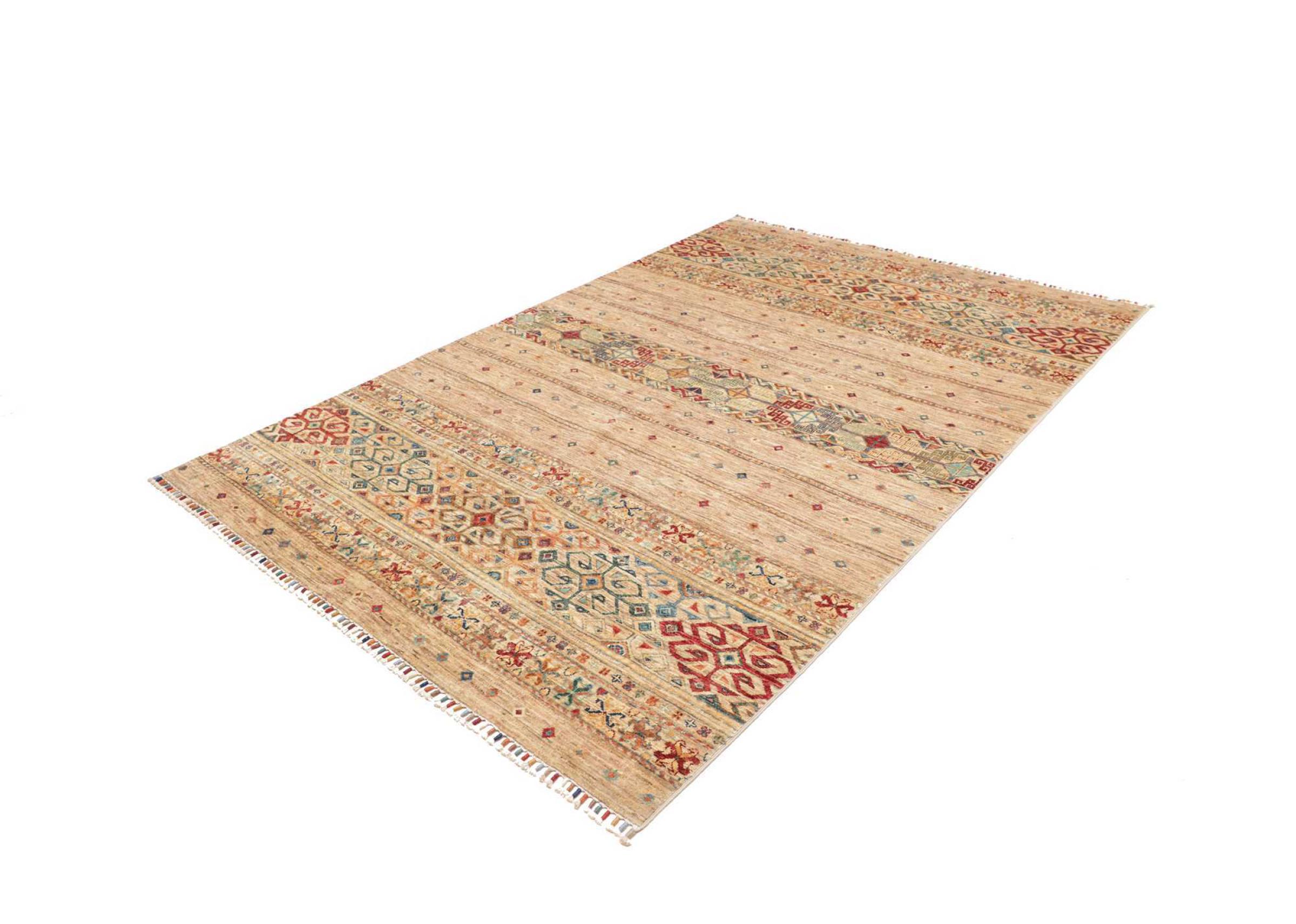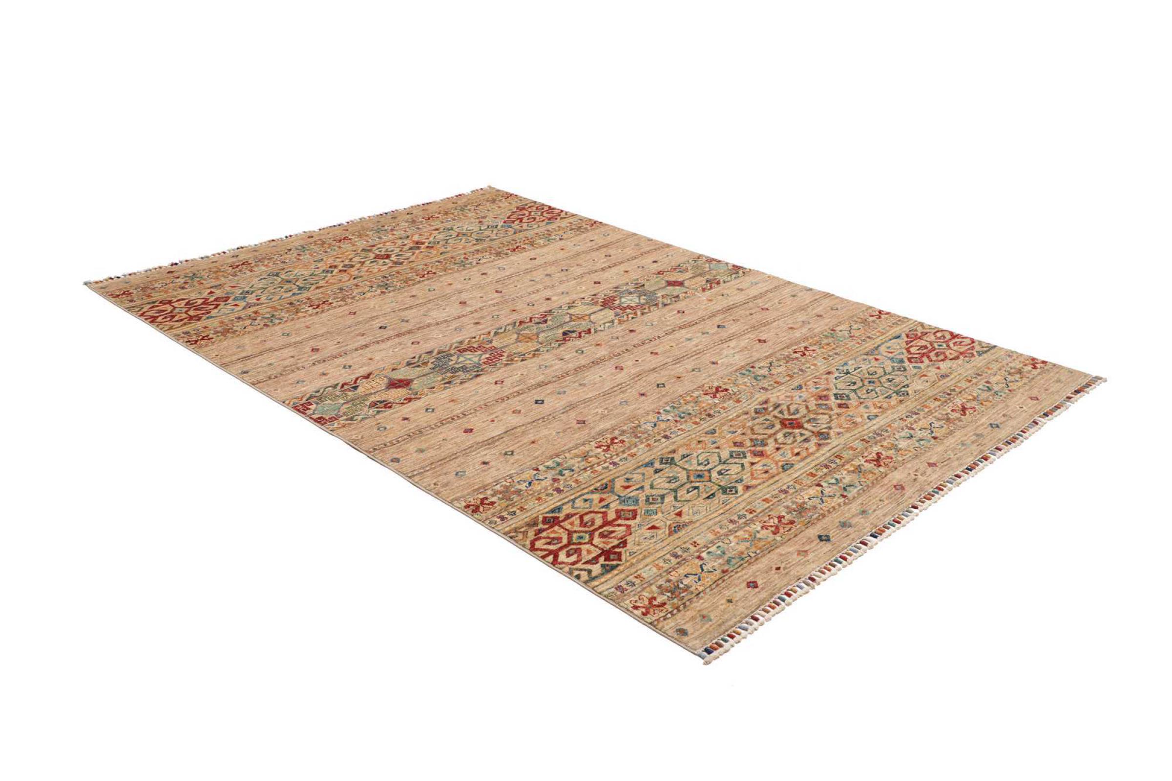 Questo tappeto Arijana Shaal è stato annodato a mano in Pakistan con la migliore maestria artigianale. Promette una qualità molto alta e offre quindi un piacere duraturo. Il motivo a strisce è vario ed emozionante. Si ispirava al noto disegno di Moharamati. Se i tappeti monocromi sono troppo noiosi per voi, sarete sicuramente deliziati da questa Arijana Shaal.