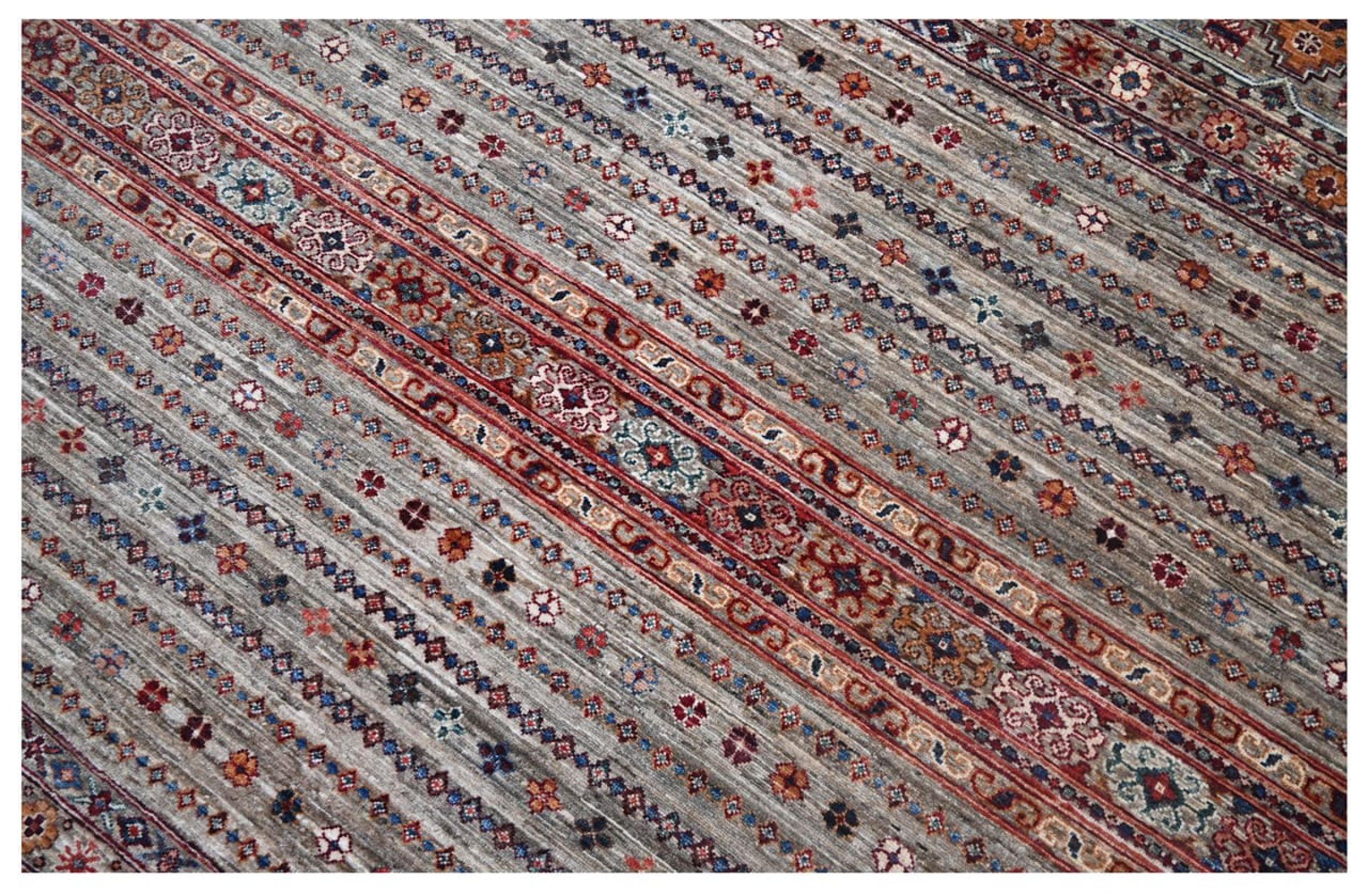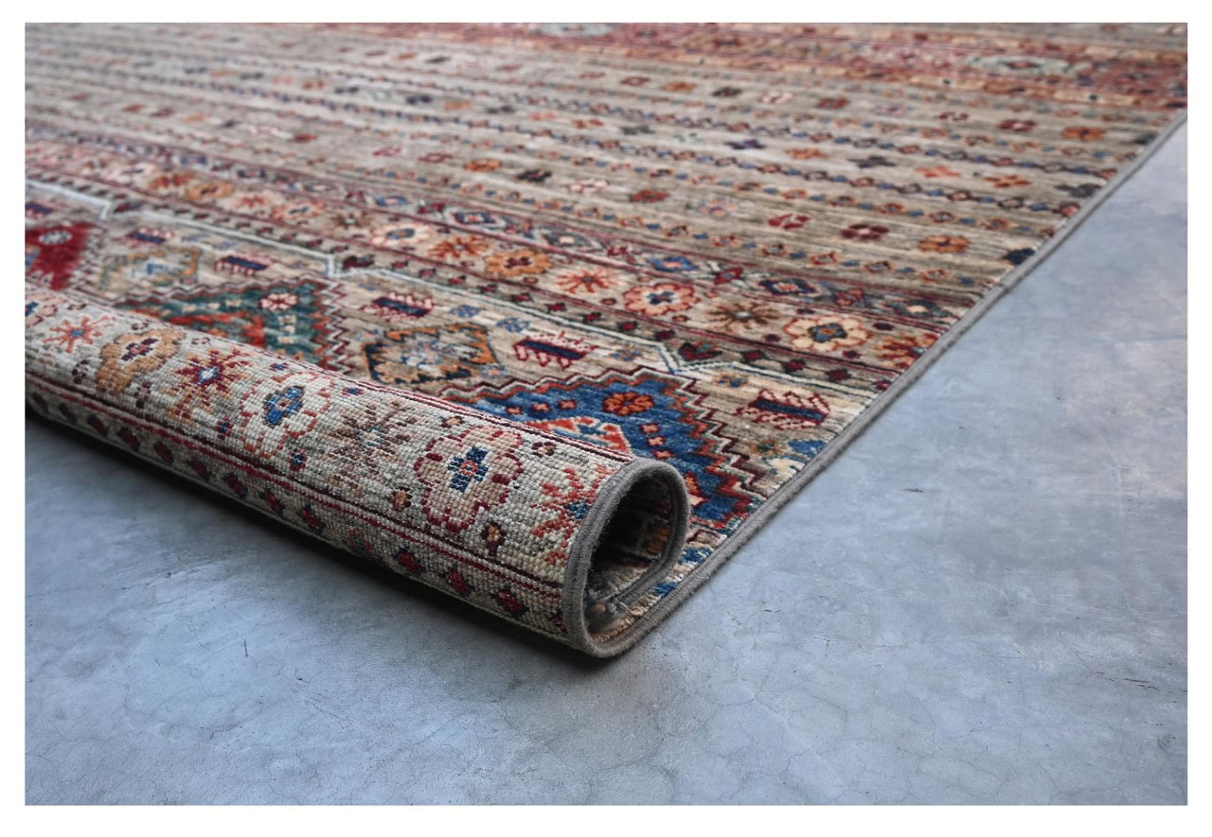 Questo tappeto Arijana Shaal è stato annodato a mano in Pakistan con la migliore maestria artigianale. Promette una qualità molto alta e offre quindi un piacere duraturo. Il motivo a strisce è vario ed emozionante. Si ispirava al noto disegno di Moharamati. Se i tappeti monocromi sono troppo noiosi per voi, sarete sicuramente deliziati da questa Arijana Shaal.