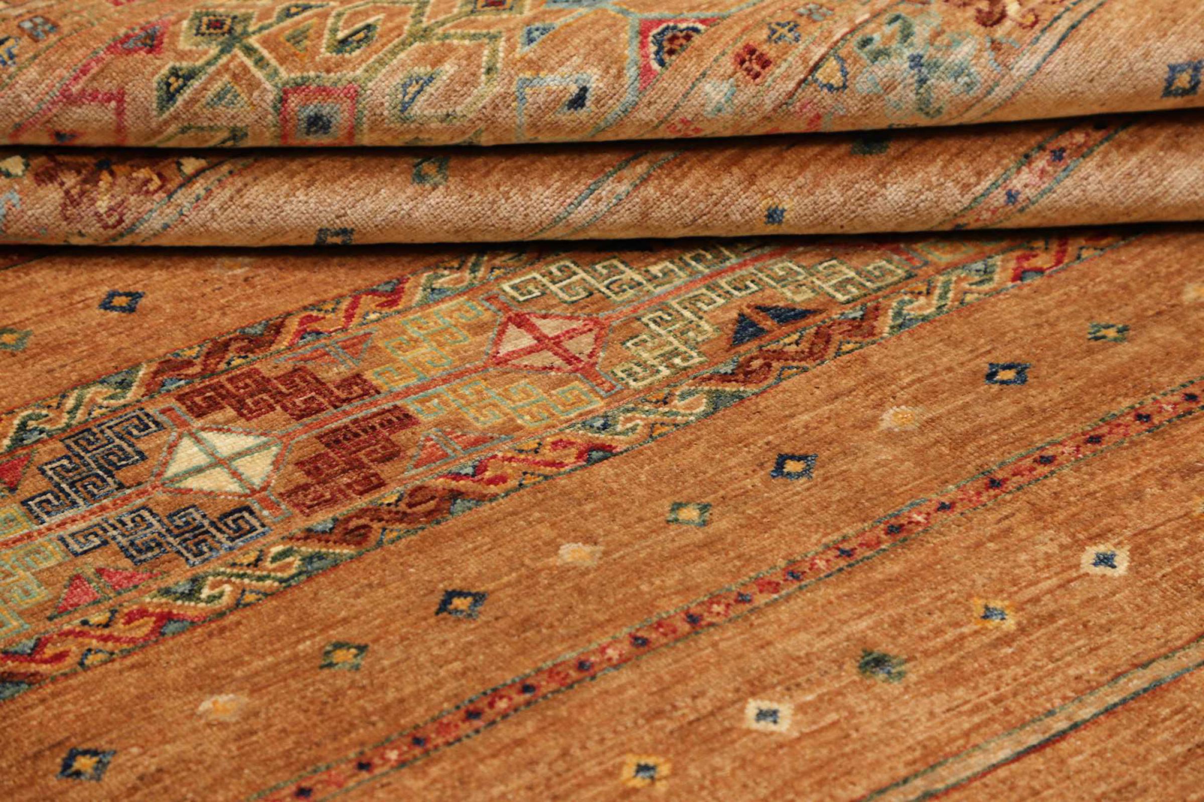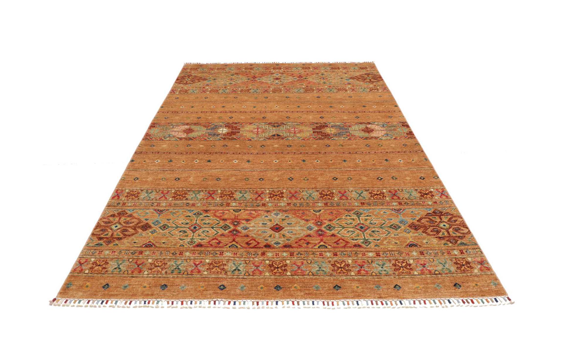 Questo tappeto Arijana Shaal è stato annodato a mano in Pakistan con la migliore maestria artigianale. Promette una qualità molto alta e offre quindi un piacere duraturo. Il motivo a strisce è vario ed emozionante. Si ispirava al noto disegno di Moharamati. Se i tappeti monocromi sono troppo noiosi per voi, sarete sicuramente deliziati da questa Arijana Shaal.