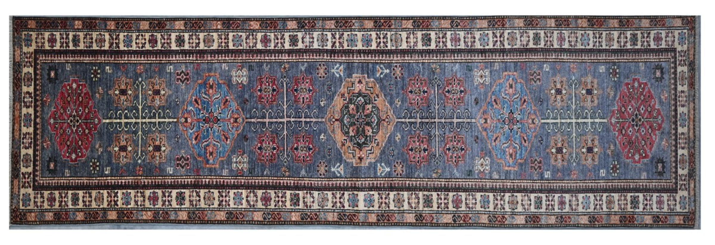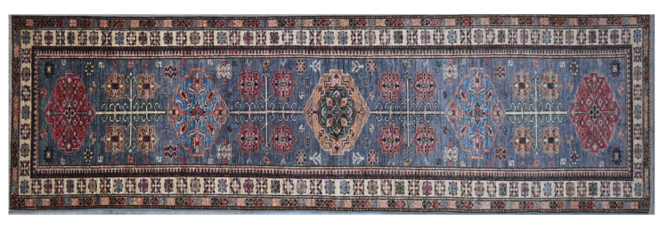 Tappeto-N.: 291035005609069 Dimensione: 302x82 cm Spessore: circa . 5 mm Nodi: 160 000 - 200 000 / m² Lavorazione: Annodato a mano Fondo: Lana filata a mano Catena: Cotone Origine: Pakistan Età: Nuovo Peso: circa . 9 kg Disponibile: Unico - Solo 1 disponibili