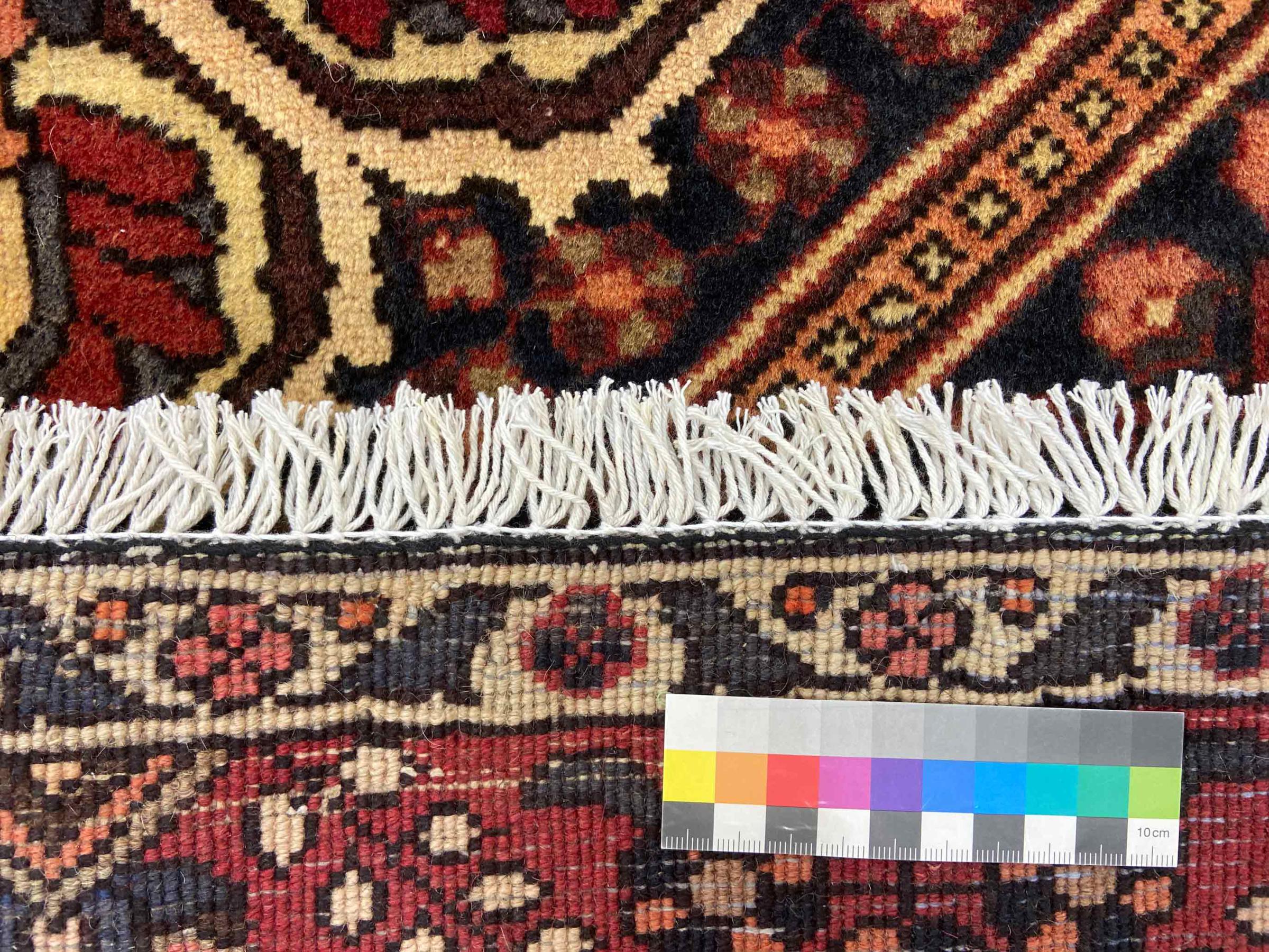 Questo Bakhtiar persiano era annodato a mano dai nomadi della tribù dei Bakhtiari. Questo tappeto persiano gioca con i colori dell'Oriente nei motivi più belli. Il design dei suoi ornamenti si ispira ai giardini persiani. Nel corso degli anni, il cosiddetto design tradizionale del giardino ha guadagnato grande popolarità nel mondo occidentale. La sua elevata densità di annodatura in combinazione con il forte filato promette un piacere duraturo dell'arte del tappeto persiano.