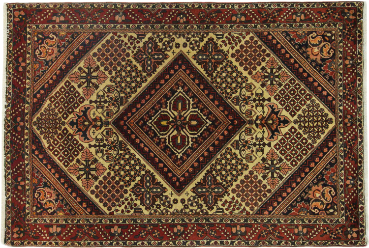 Tappeto-N.: 318153006097978 Dimensione: 202x141 cm Spessore: circa . 12 mm Nodi: 128 000 - 160 000 / m² Lavorazione: Annodato a mano Fondo: Lana filata a mano Catena: Cotone Origine: Persia / Iran Età: Nuovo Peso: circa . 11 kg Conosciuto anche come Baktjar Disponibile: Unico - Solo 1 disponibili