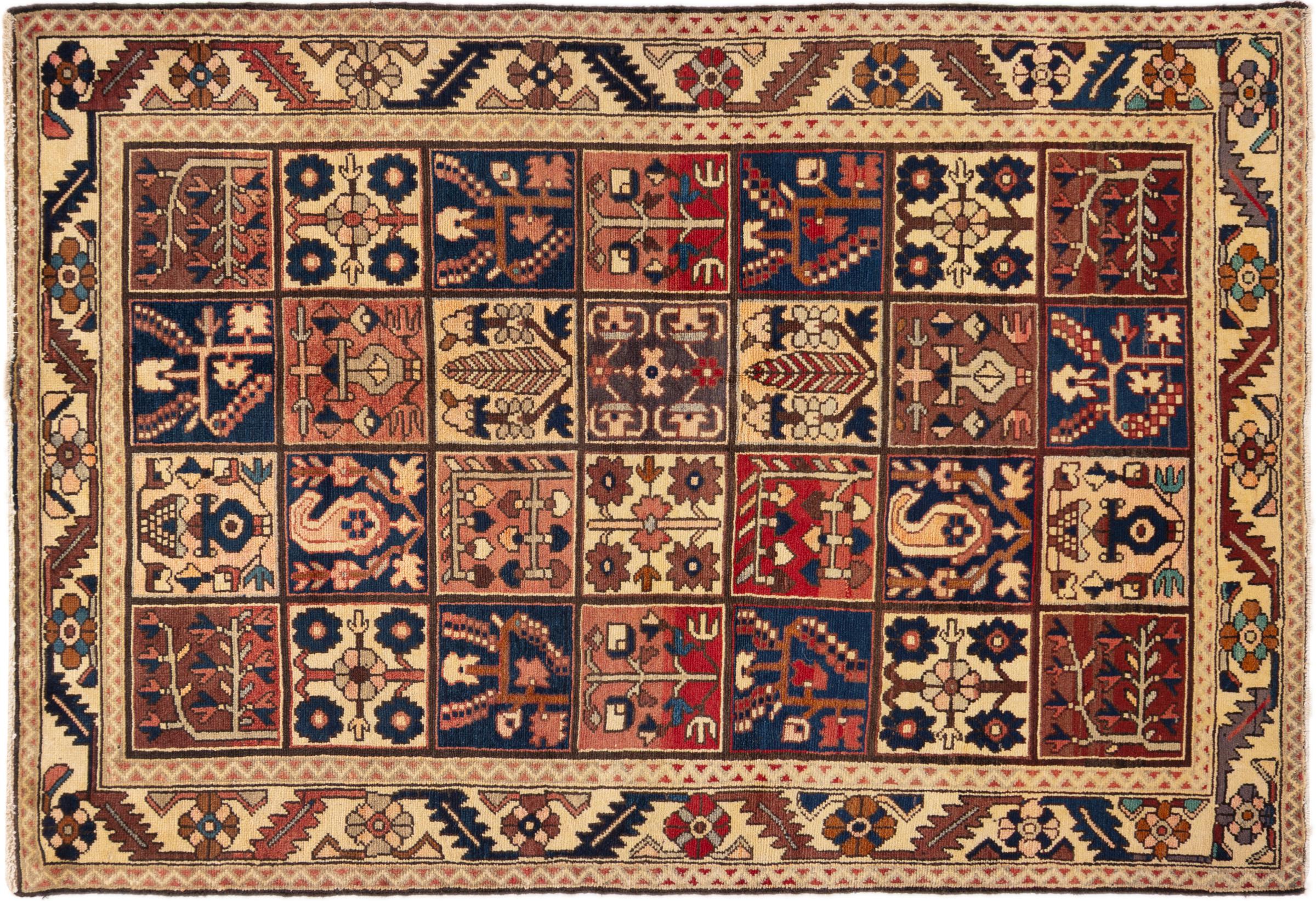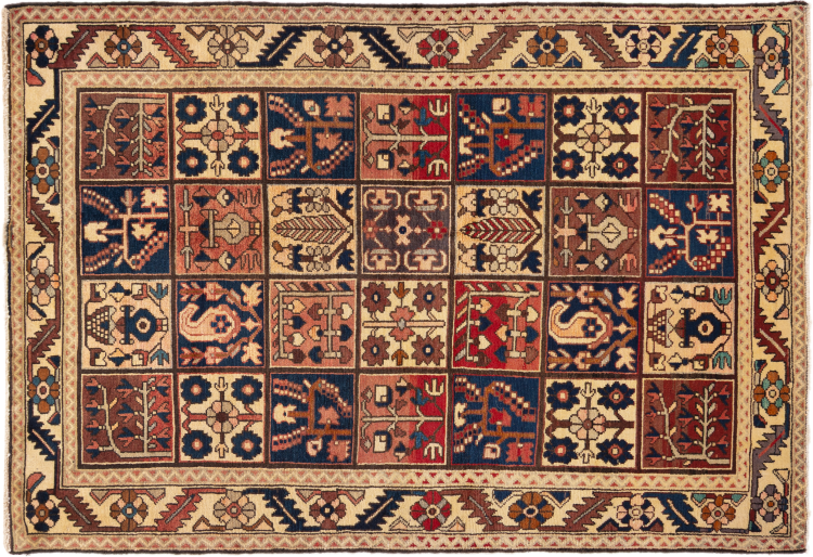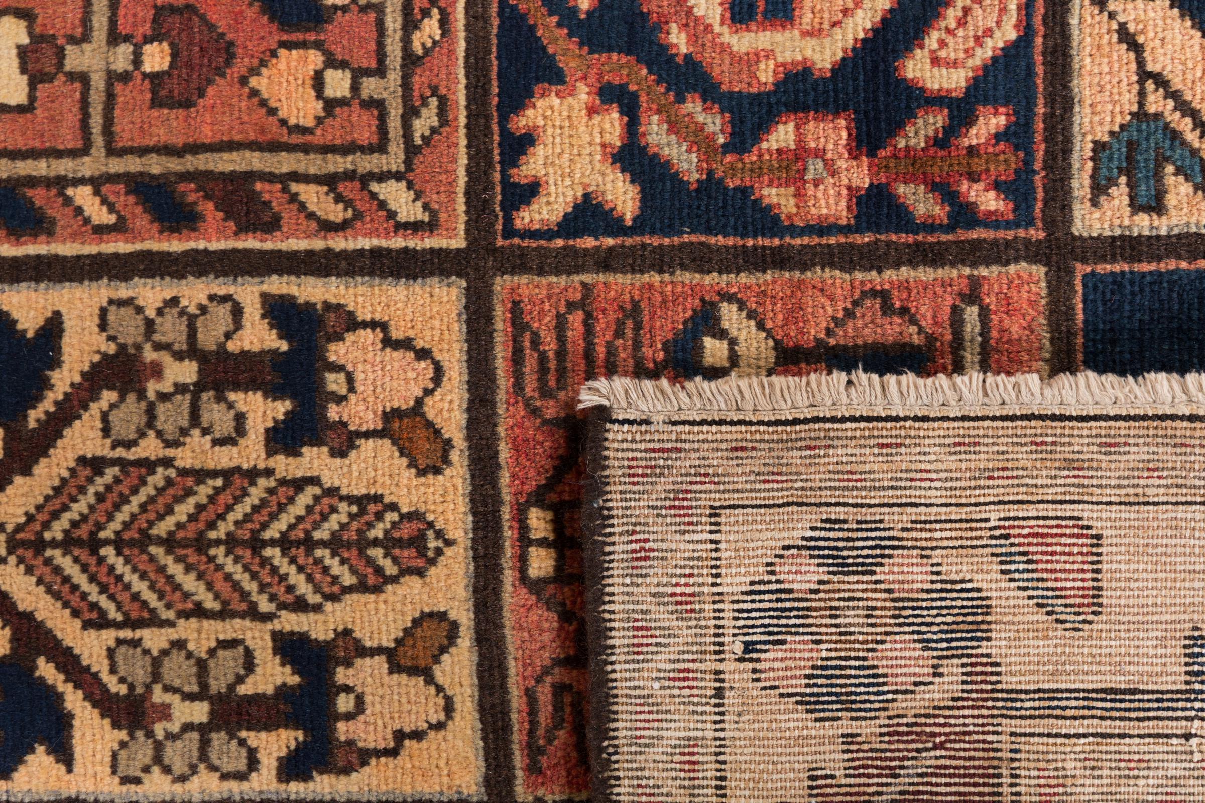 Questo Bakhtiar persiano era annodato a mano dai nomadi della tribù dei Bakhtiari. Questo tappeto persiano gioca con i colori dell'Oriente nei motivi più belli. Il design dei suoi ornamenti si ispira ai giardini persiani. Nel corso degli anni, il cosiddetto design tradizionale del giardino ha guadagnato grande popolarità nel mondo occidentale. La sua elevata densità di annodatura in combinazione con il forte filato promette un piacere duraturo dell'arte del tappeto persiano.