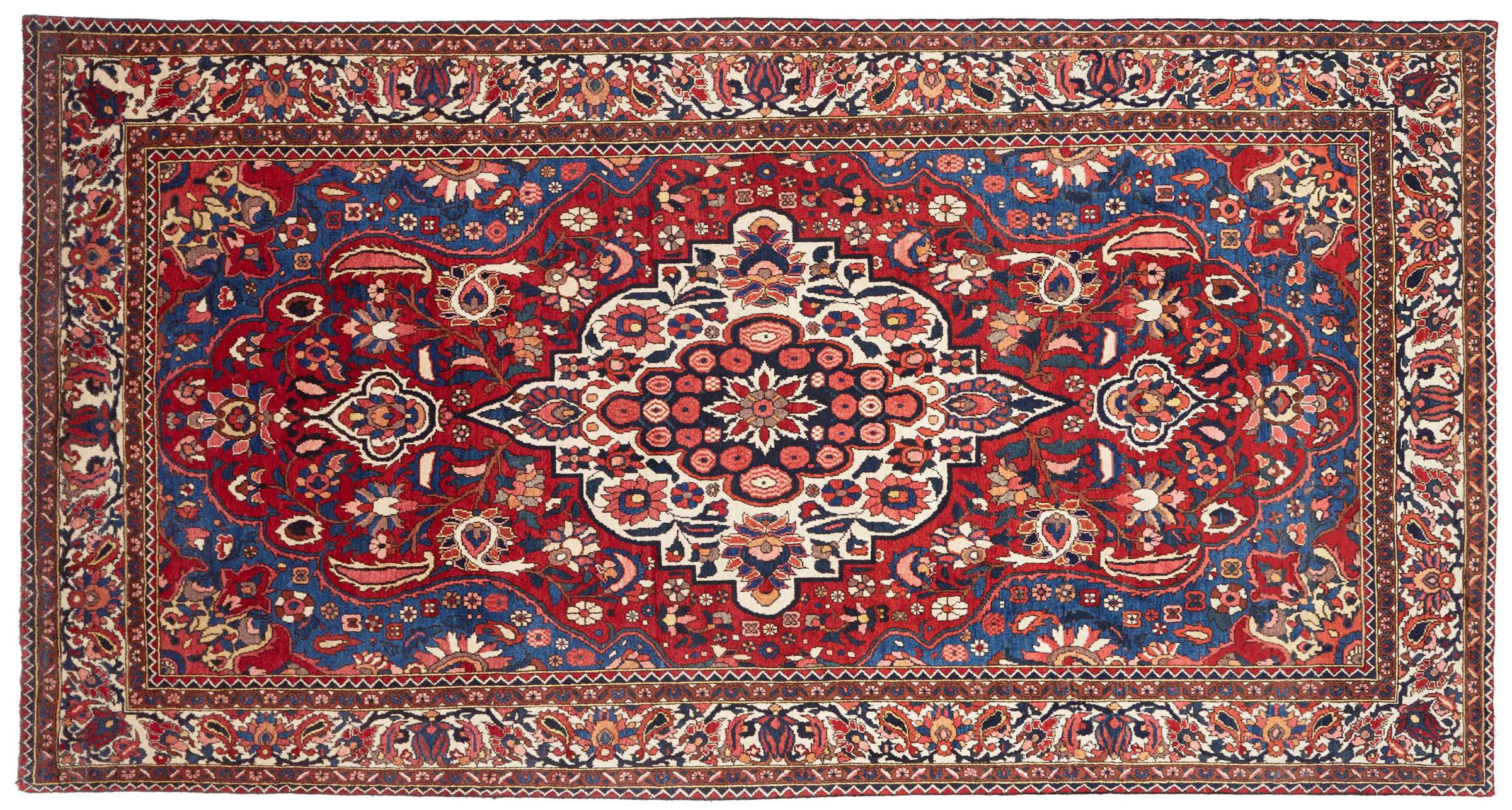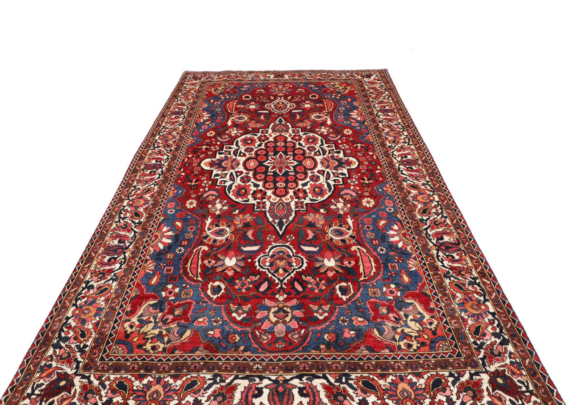 Questo Bakhtiar persiano era annodato a mano dai nomadi della tribù dei Bakhtiari. Questo tappeto persiano gioca con i colori dell'Oriente nei motivi più belli. Il design dei suoi ornamenti si ispira ai giardini persiani. Nel corso degli anni, il cosiddetto design tradizionale del giardino ha guadagnato grande popolarità nel mondo occidentale. La sua elevata densità di annodatura in combinazione con il forte filato promette un piacere duraturo dell'arte del tappeto persiano.