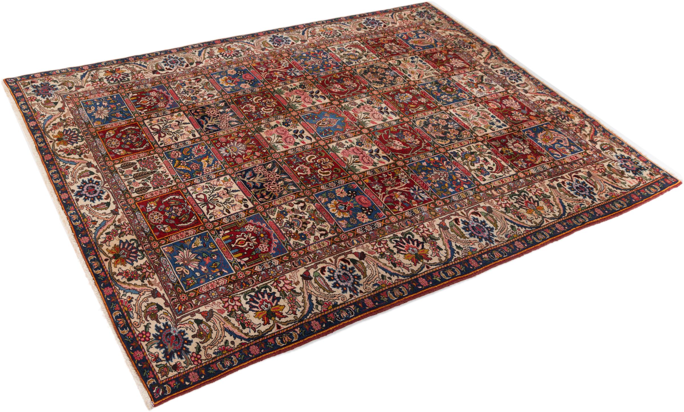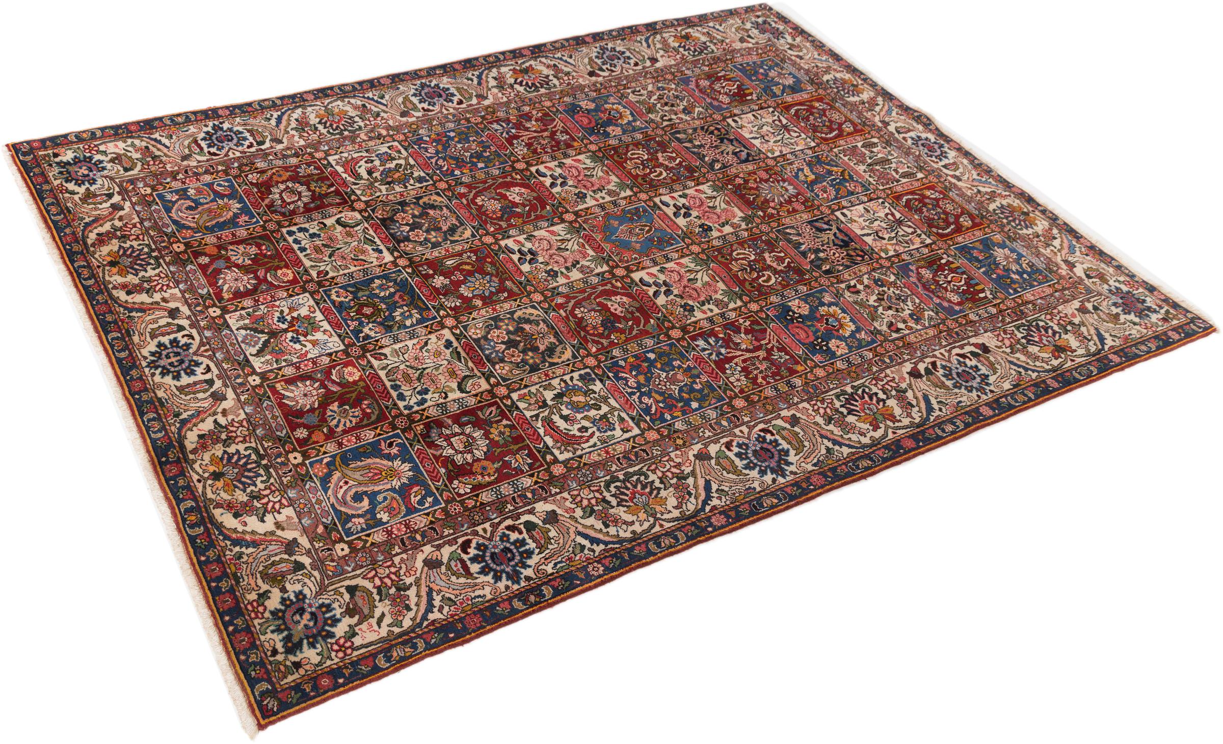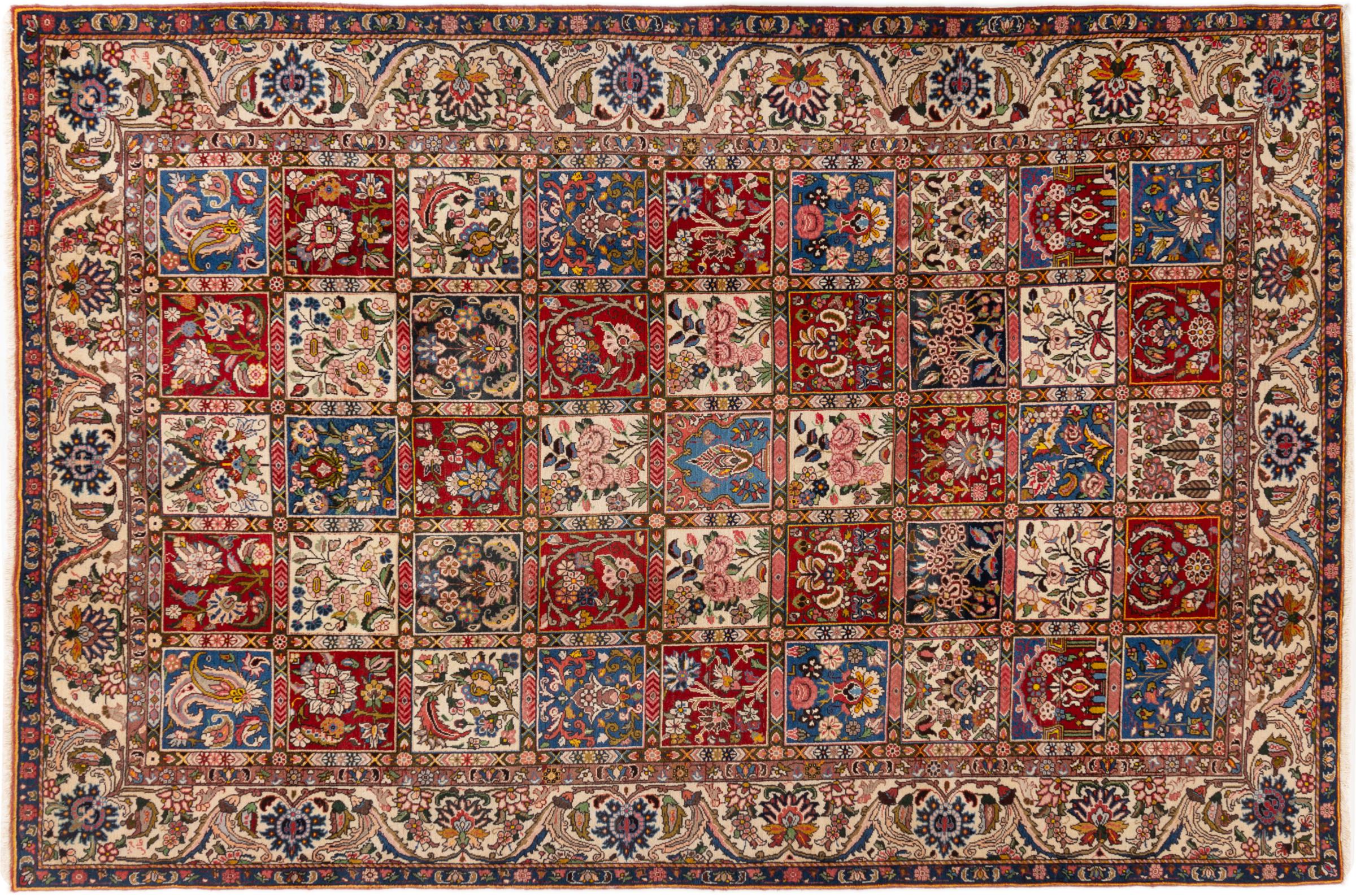 Questo Bakhtiar persiano era annodato a mano dai nomadi della tribù dei Bakhtiari. Questo tappeto persiano gioca con i colori dell'Oriente nei motivi più belli. Il design dei suoi ornamenti si ispira ai giardini persiani. Nel corso degli anni, il cosiddetto design tradizionale del giardino ha guadagnato grande popolarità nel mondo occidentale. La sua elevata densità di annodatura in combinazione con il forte filato promette un piacere duraturo dell'arte del tappeto persiano.