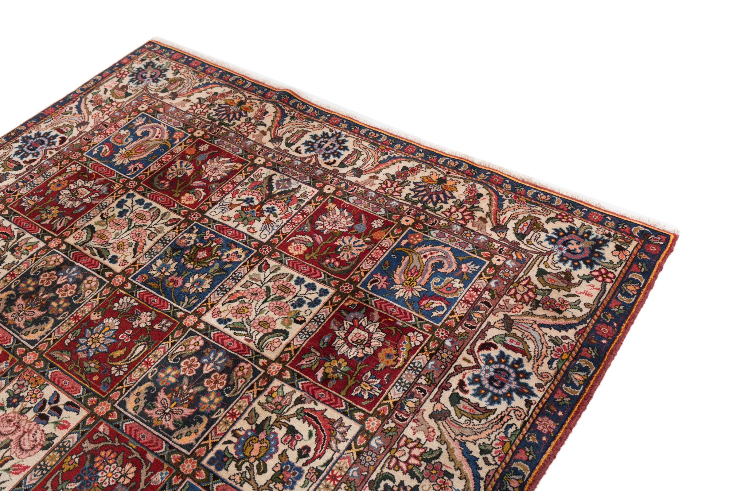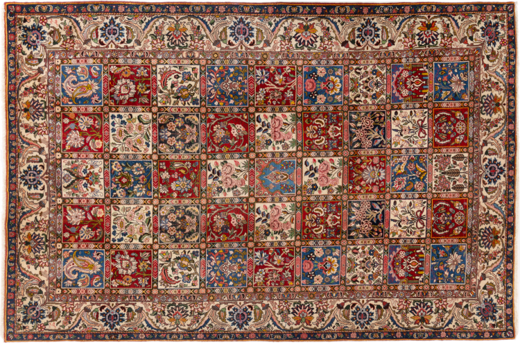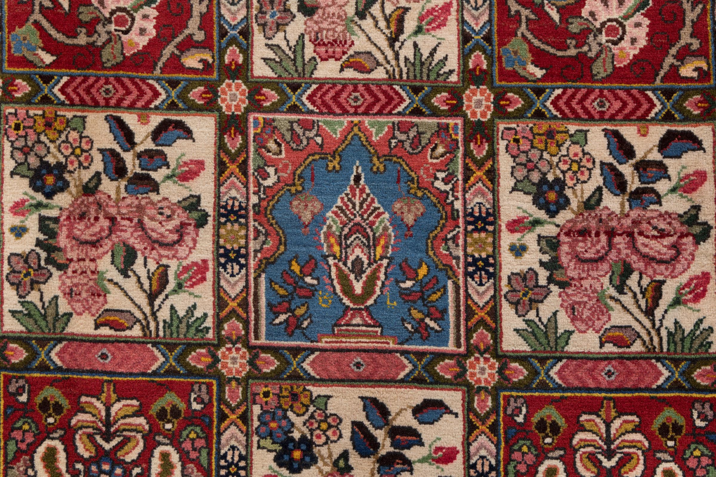 Questo Bakhtiar persiano era annodato a mano dai nomadi della tribù dei Bakhtiari. Questo tappeto persiano gioca con i colori dell'Oriente nei motivi più belli. Il design dei suoi ornamenti si ispira ai giardini persiani. Nel corso degli anni, il cosiddetto design tradizionale del giardino ha guadagnato grande popolarità nel mondo occidentale. La sua elevata densità di annodatura in combinazione con il forte filato promette un piacere duraturo dell'arte del tappeto persiano.