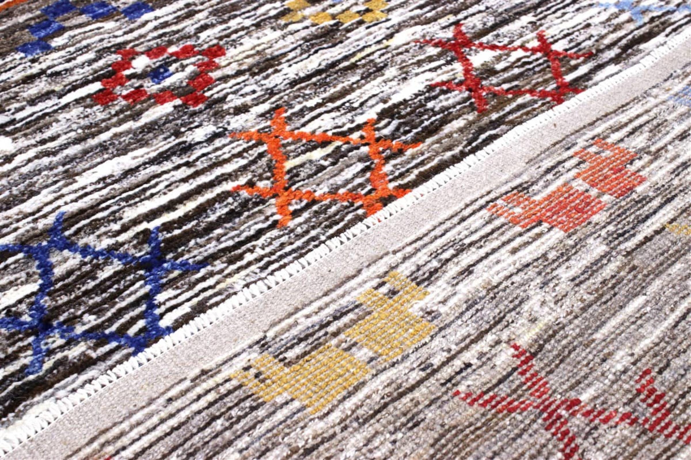 Questo tappeto berbero Ghashghai è caratterizzato dalla sua lana di alta qualità e da una trama fitta e particolarmente precisa. È quindi eccezionalmente resistente e ha un pelo costantemente compatto ma meravigliosamente morbido. Il suo design ispira ogni giorno con colori e motivi simbolici.