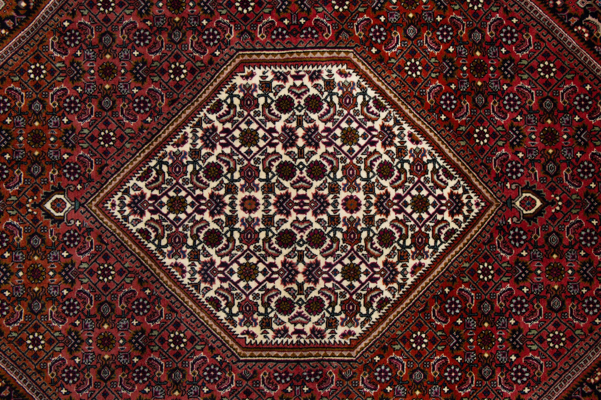 Questi tappeti persiani venivano annodati a mano in una piccola cittá curda. Questi tappeti Bdjar rappresentano alta qualitáe grazie alla compattezza della trama, dovuta allo spessore die noti, garantiscono lunga durata. Questi tappeti curdi hanno convinto sin dall´inizio, e per molto altro tempo ancora!