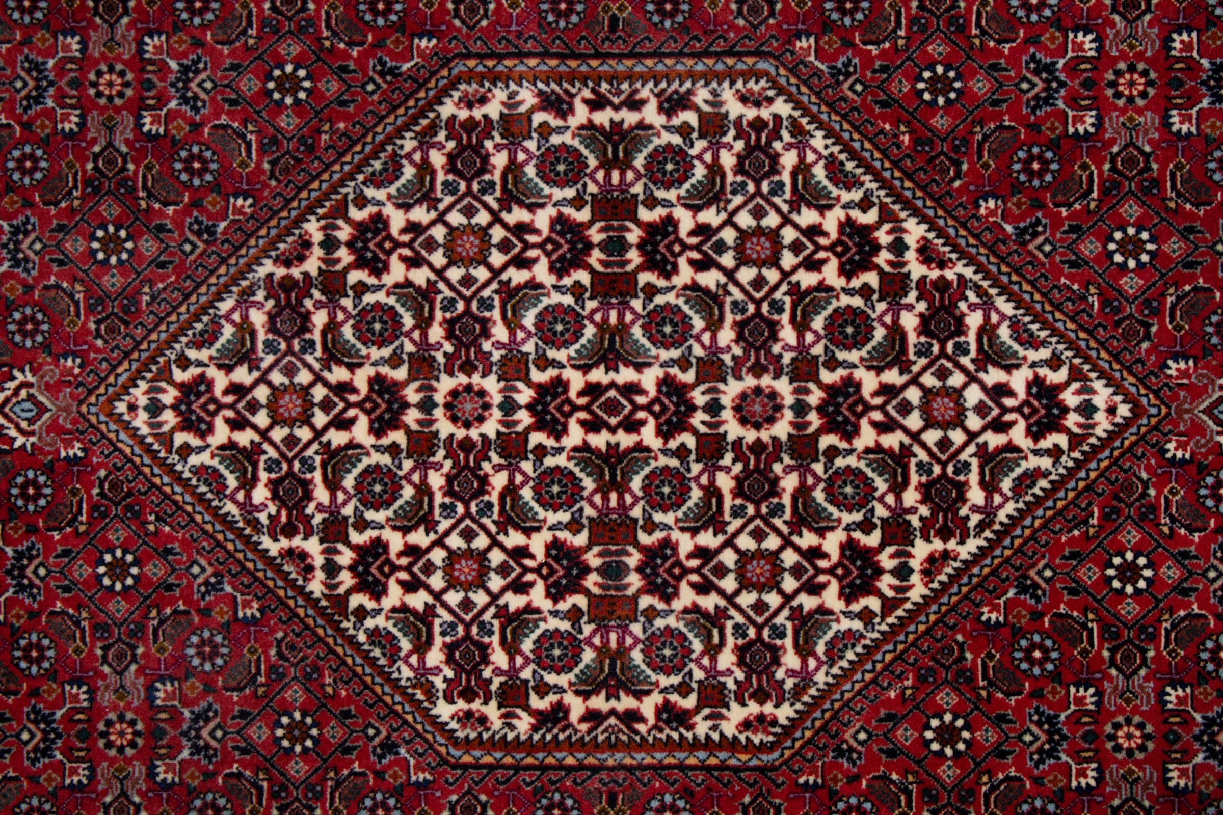 Questi tappeti persiani venivano annodati a mano in una piccola cittá curda. Questi tappeti Bdjar rappresentano alta qualitáe grazie alla compattezza della trama, dovuta allo spessore die noti, garantiscono lunga durata. Questi tappeti curdi hanno convinto sin dall´inizio, e per molto altro tempo ancora!