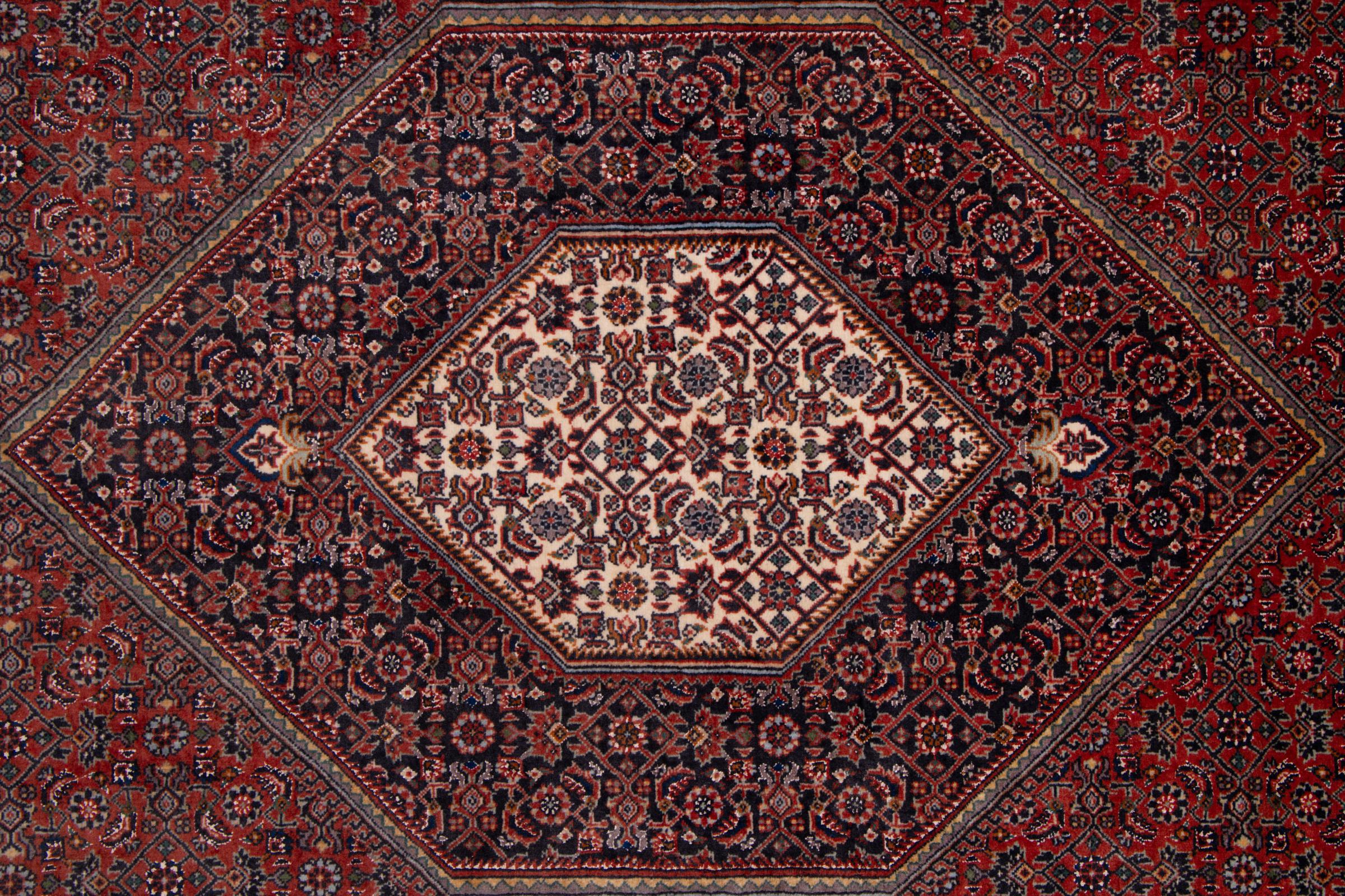 Questi tappeti persiani venivano annodati a mano in una piccola cittá curda. Questi tappeti Bdjar rappresentano alta qualitáe grazie alla compattezza della trama, dovuta allo spessore die noti, garantiscono lunga durata. Questi tappeti curdi hanno convinto sin dall´inizio, e per molto altro tempo ancora!