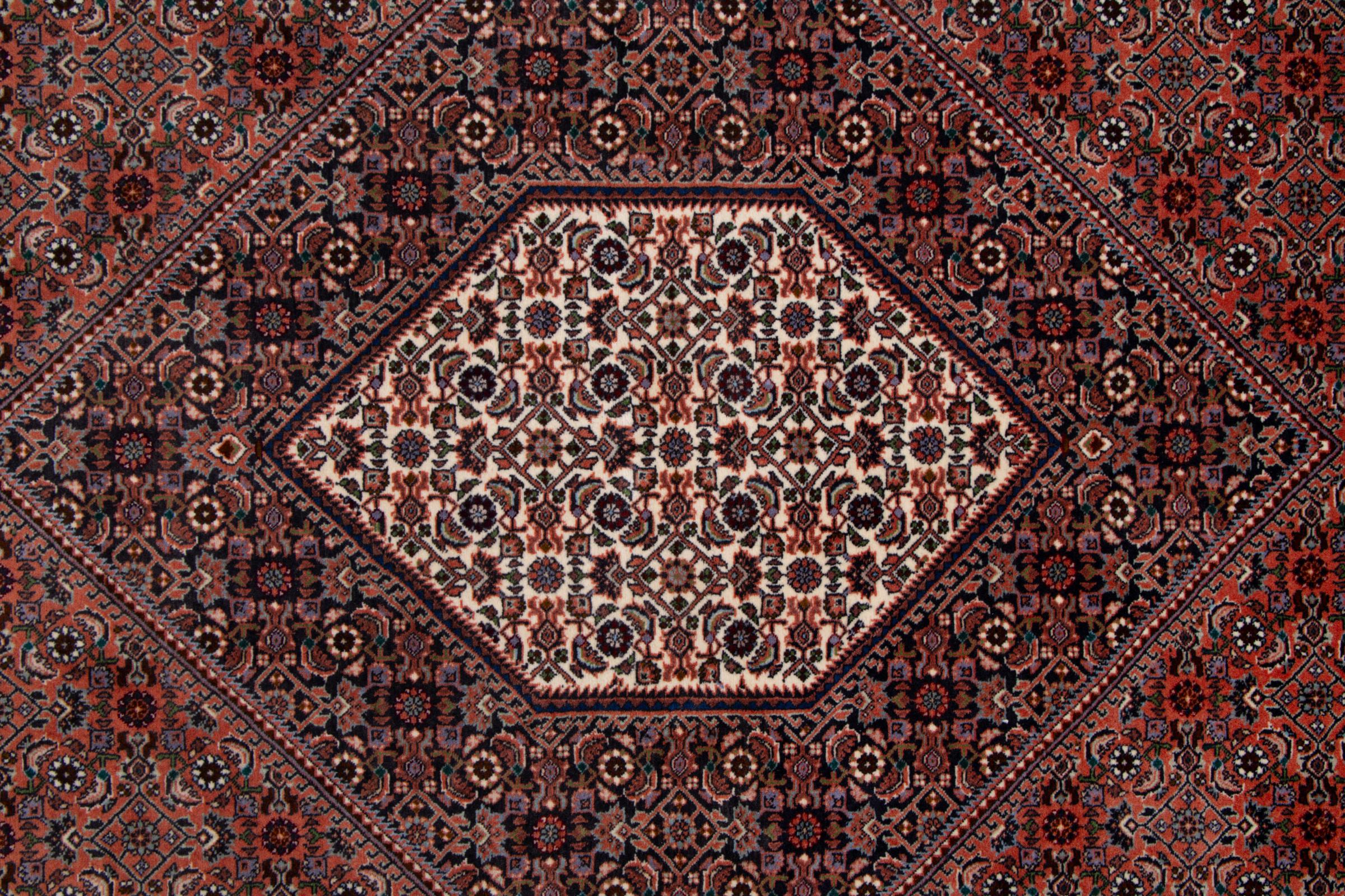 Questi tappeti persiani venivano annodati a mano in una piccola cittá curda. Questi tappeti Bdjar rappresentano alta qualitáe grazie alla compattezza della trama, dovuta allo spessore die noti, garantiscono lunga durata. Questi tappeti curdi hanno convinto sin dall´inizio, e per molto altro tempo ancora!