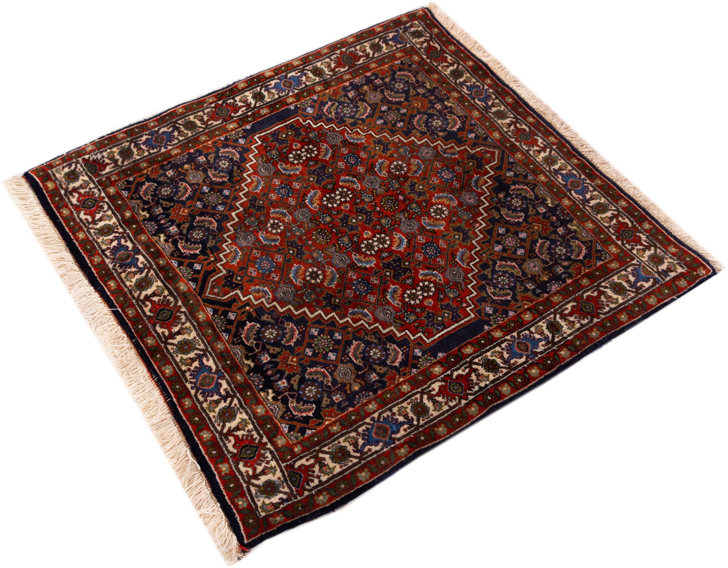 Tappeto-N.: 30704400105574 Dimensione: 79x74 cm Spessore: circa . 15 mm Nodi: 320 000 - 360 000 / m² Lavorazione: Annodato a mano Fondo: Lana filata a mano Catena: Cotone Origine: Persia / Iran Età: Nuovo Peso: circa . 3 kg Disponibile: Unico - Solo 1 disponibili
