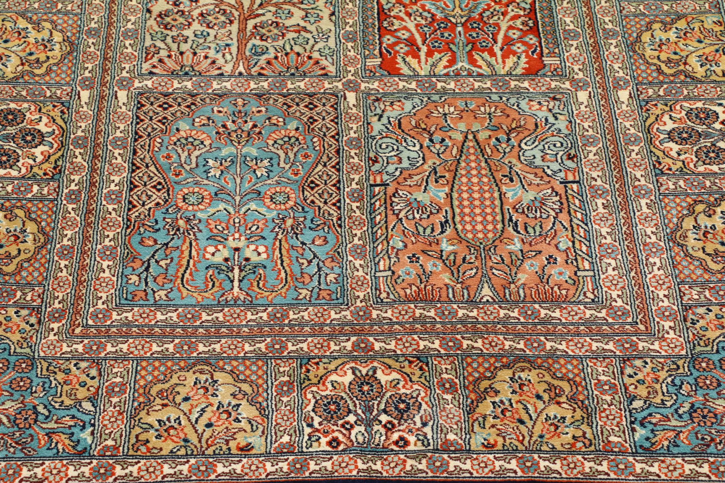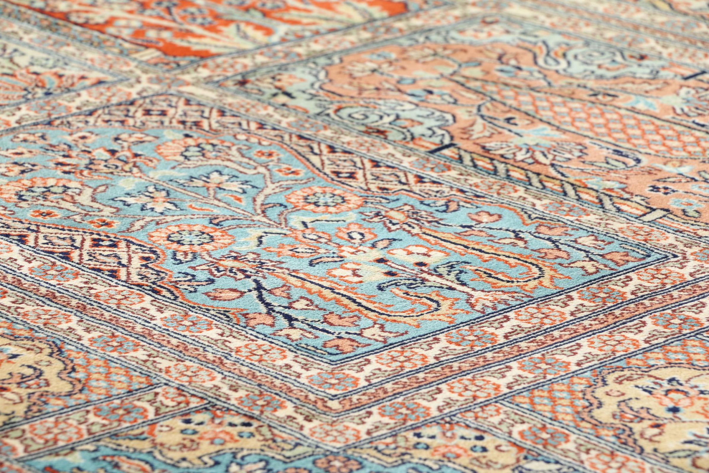 Questo tappeto di seta lavorato a mano proveniente da Kashmir riflette nuovamente le abilità dei tappeti indiani, i migliori materiali per la lavorazione di modelli impressionanti. Un pezzo di lusso indiano solo per voi.