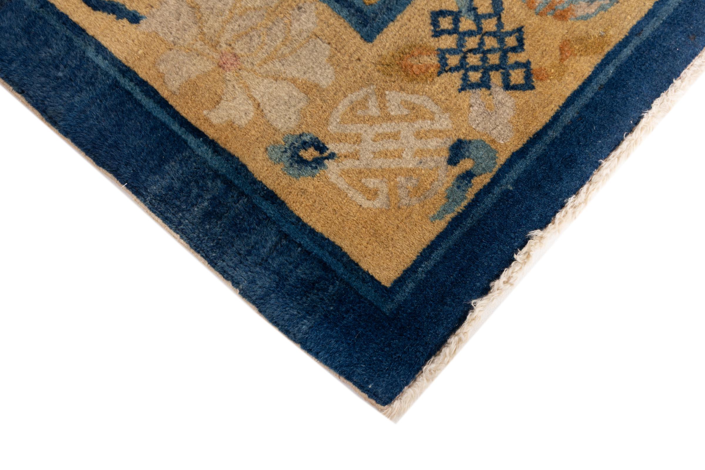Questo tappeto antico proveniente dalla cina è annodato a mano e soddisfa a pieno le pretese dei conoscitori della cultura dei tappeti cinese. L’alta qualità, il materiale e il design parlano per l’acquisto di questo tappeto..