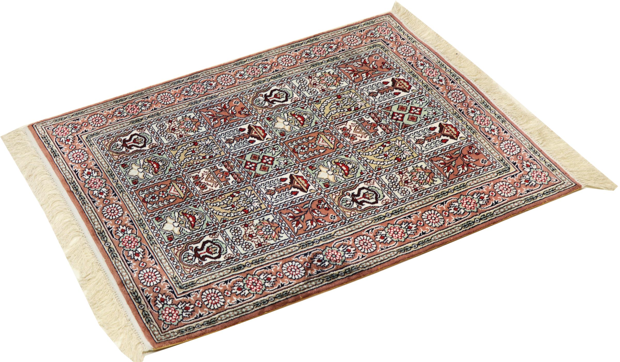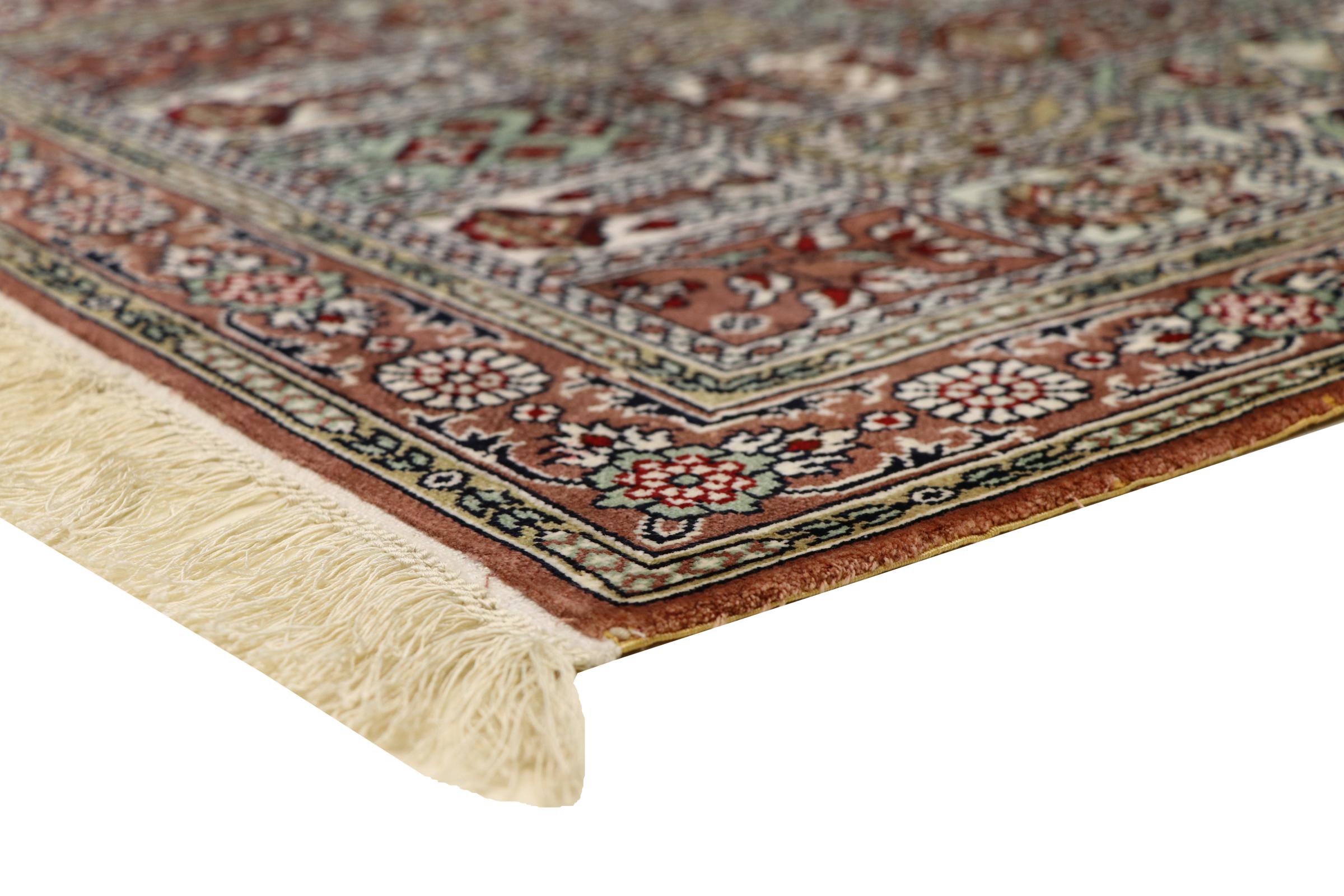 Tappeto-N.: 303290006738940 Dimensione: 90x60 cm Spessore: circa . 5 mm Nodi: 810 000 / m² Lavorazione: Annodato a mano Fondo: Seta Catena: Seta Origine: Cina Età: Nuovo Peso: circa . 2 kg Disponibile: Unico - Solo 1 disponibili