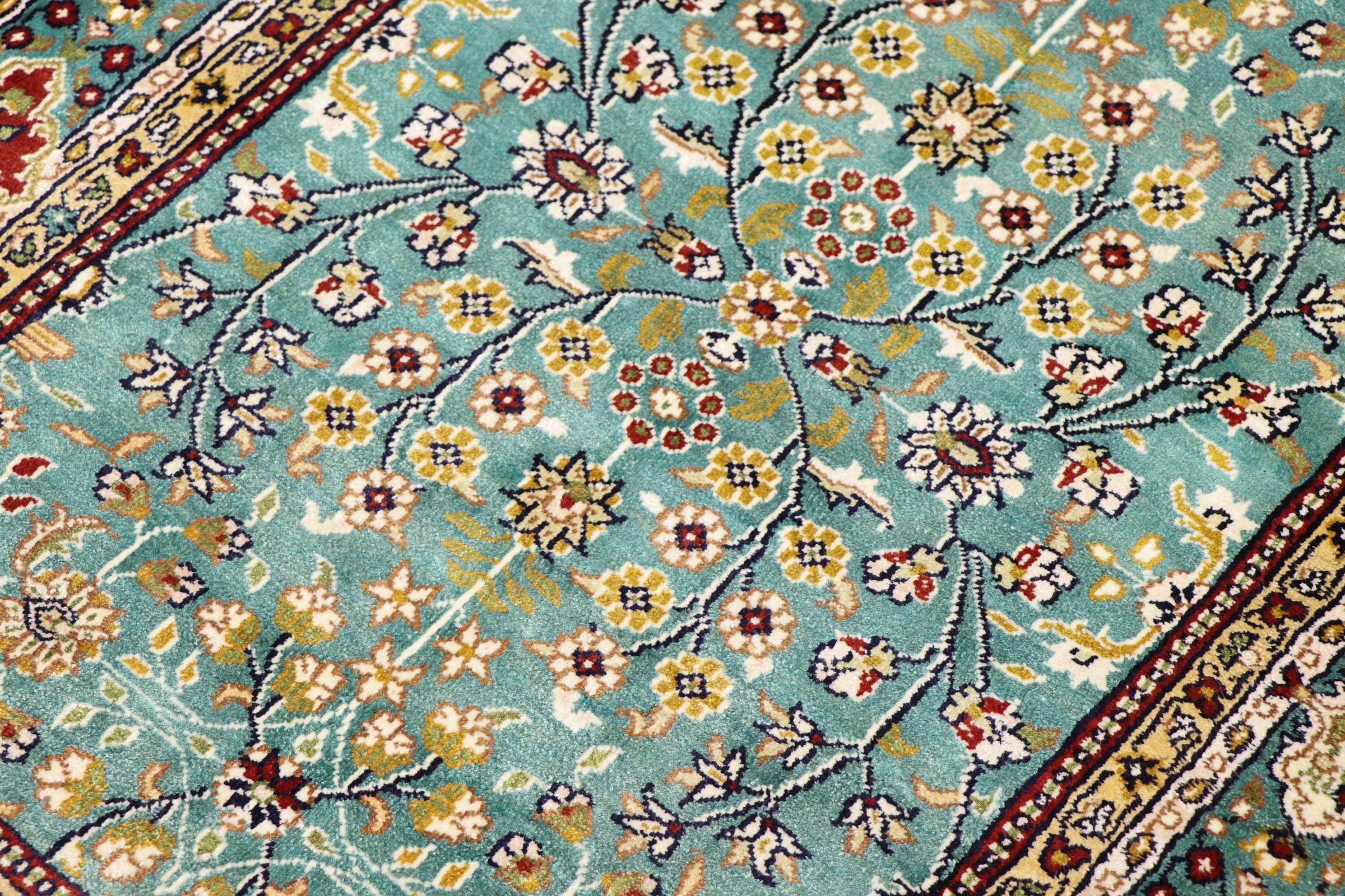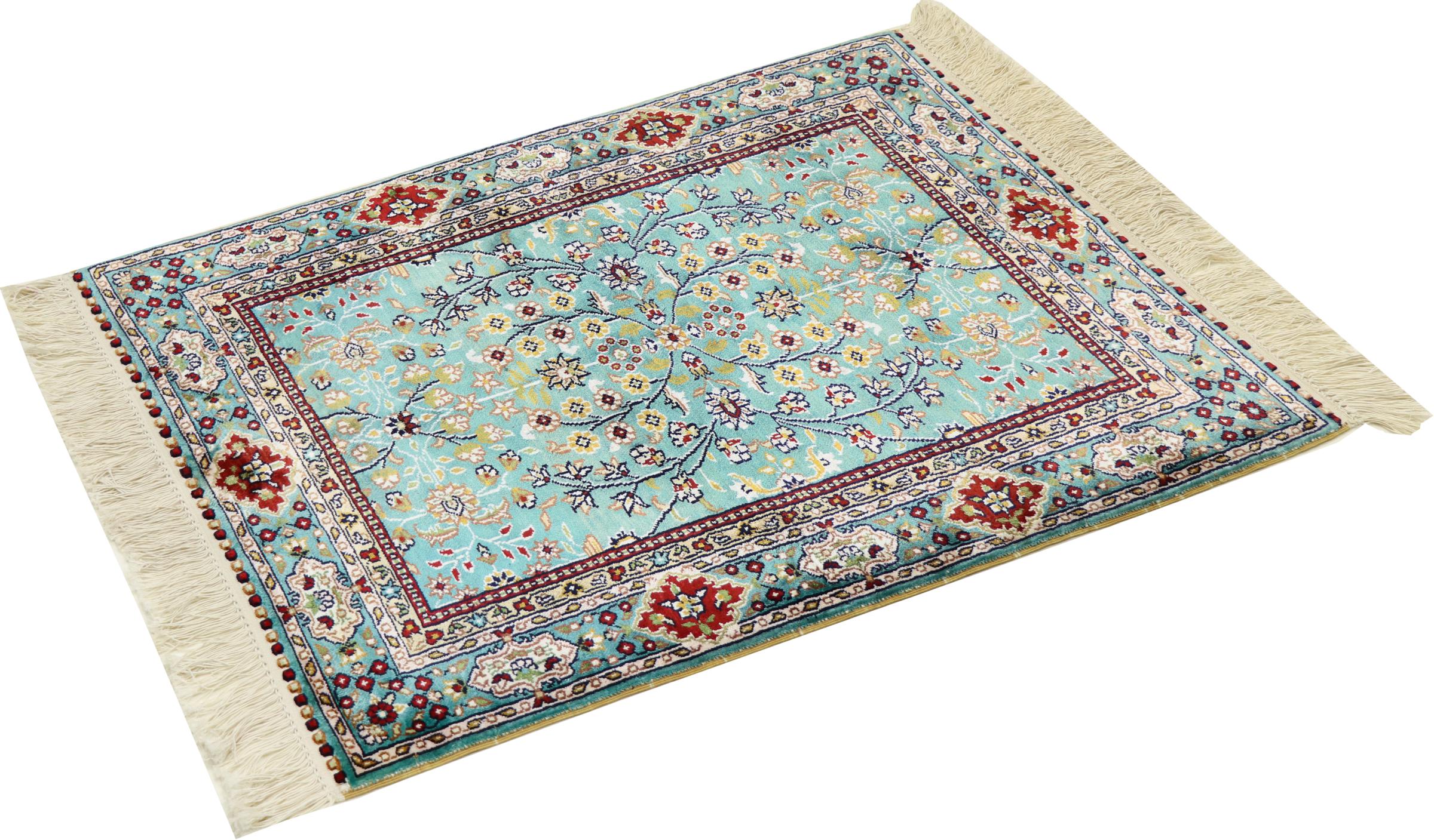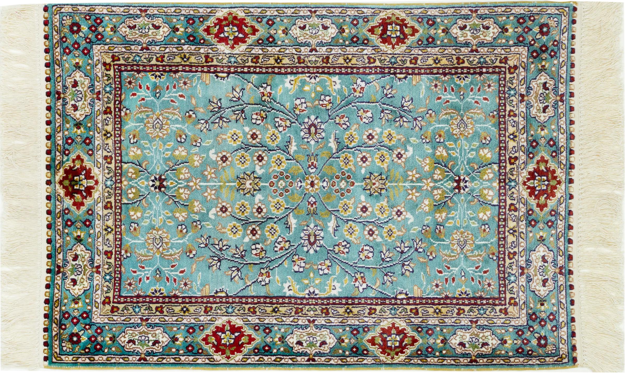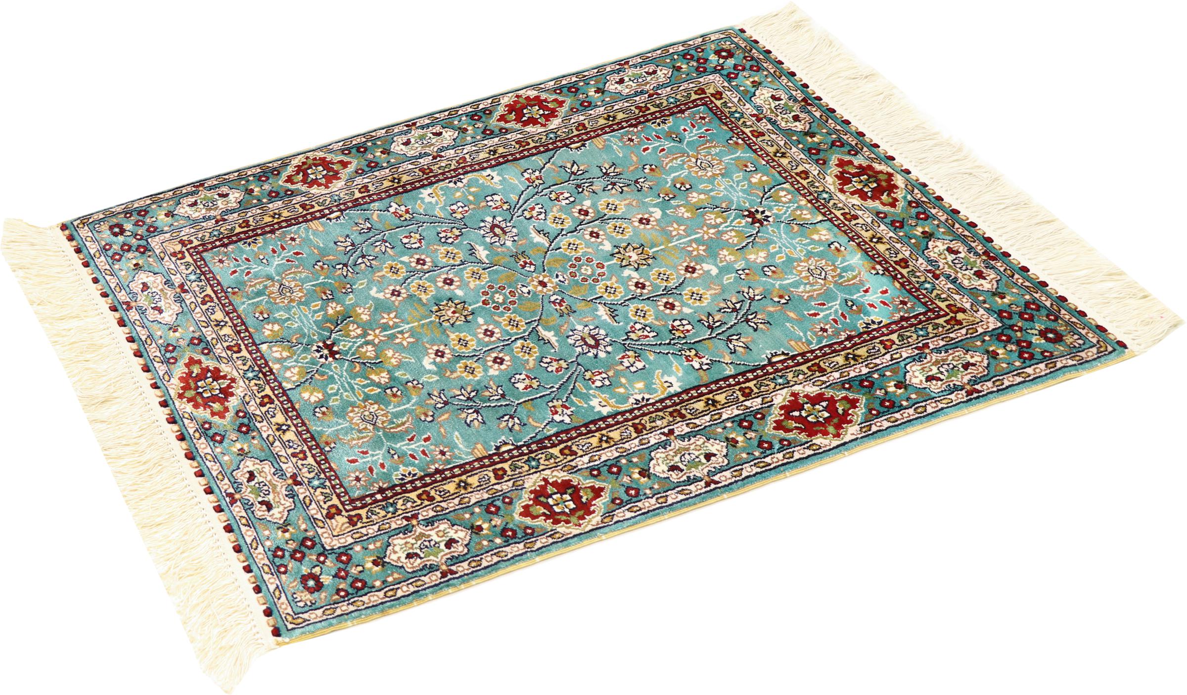 Tappeto-N.: 30330200498132 Dimensione: 91x61 cm Spessore: circa . 5 mm Nodi: 410 000 - 450 000 / m² Lavorazione: Annodato a mano Fondo: Seta Catena: Seta Origine: Cina Età: Nuovo Peso: circa . 2 kg Disponibile: Unico - Solo 1 disponibili