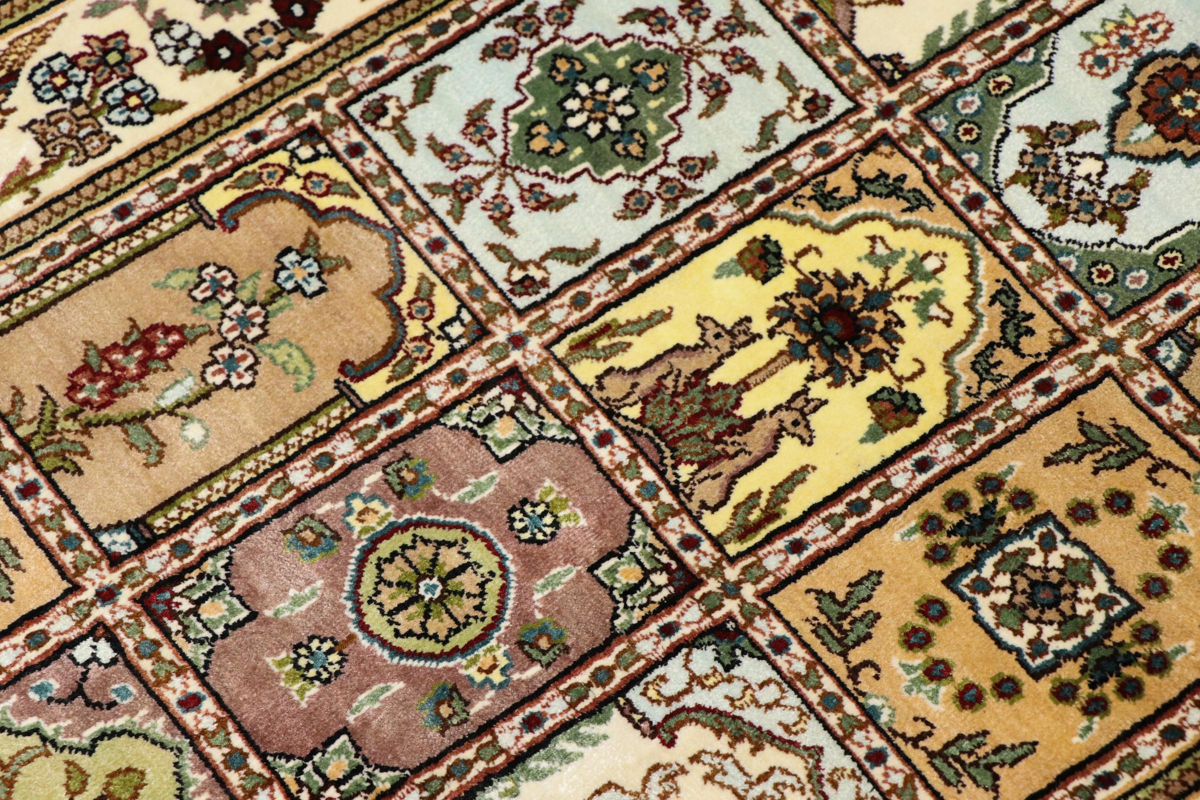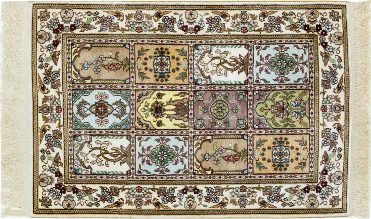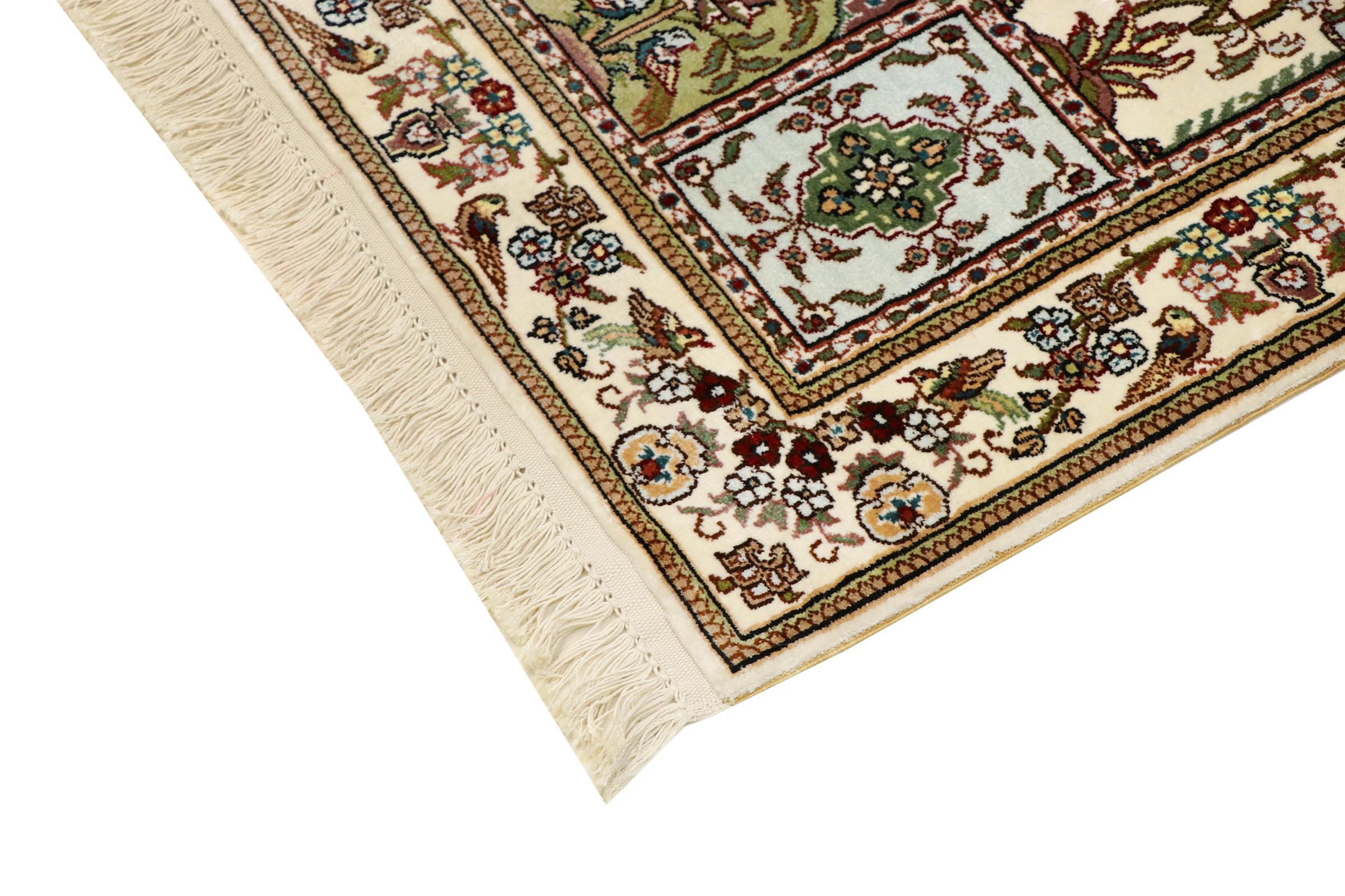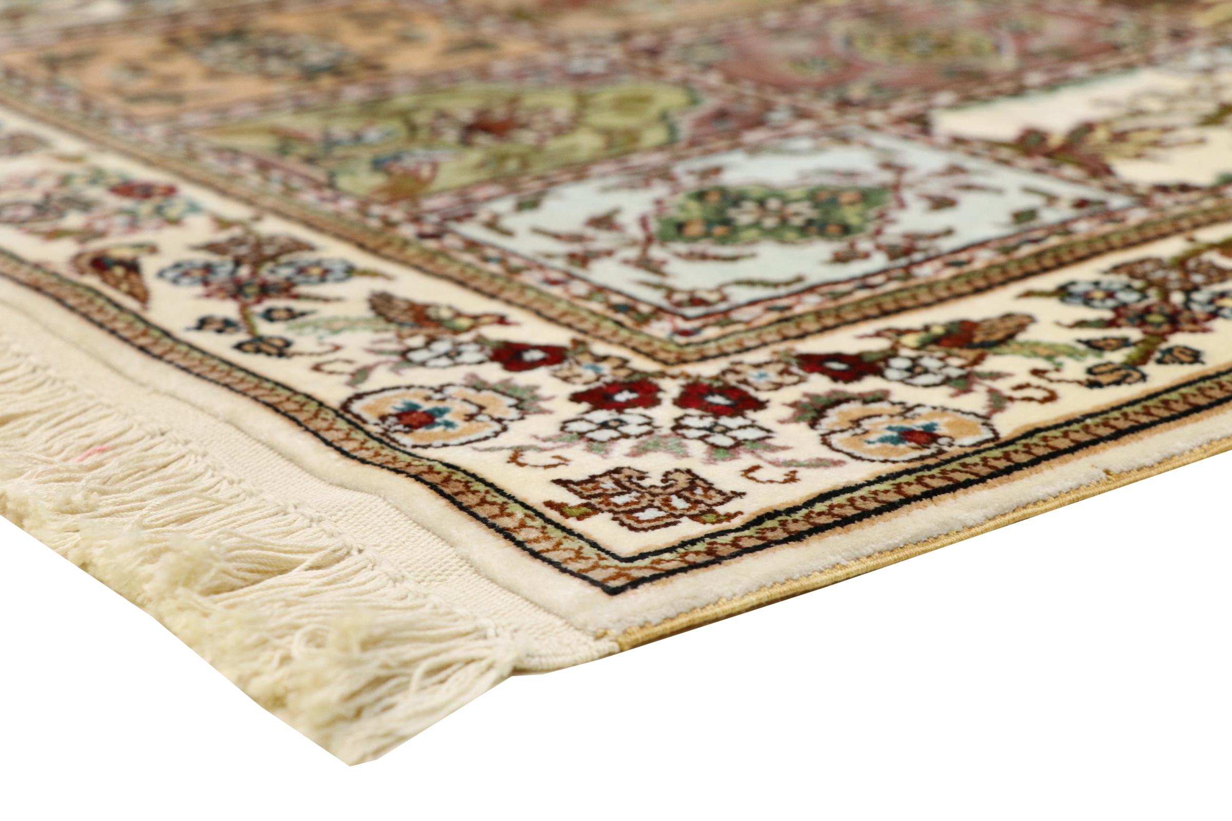 Tappeto-N.: 303280008995542 Dimensione: 93x60 cm Spessore: circa . 5 mm Nodi: 450 000 - 500 000 / m² Lavorazione: Annodato a mano Fondo: Seta Catena: Seta Origine: Cina Età: Nuovo Peso: circa . 2 kg Disponibile: Unico - Solo 1 disponibili