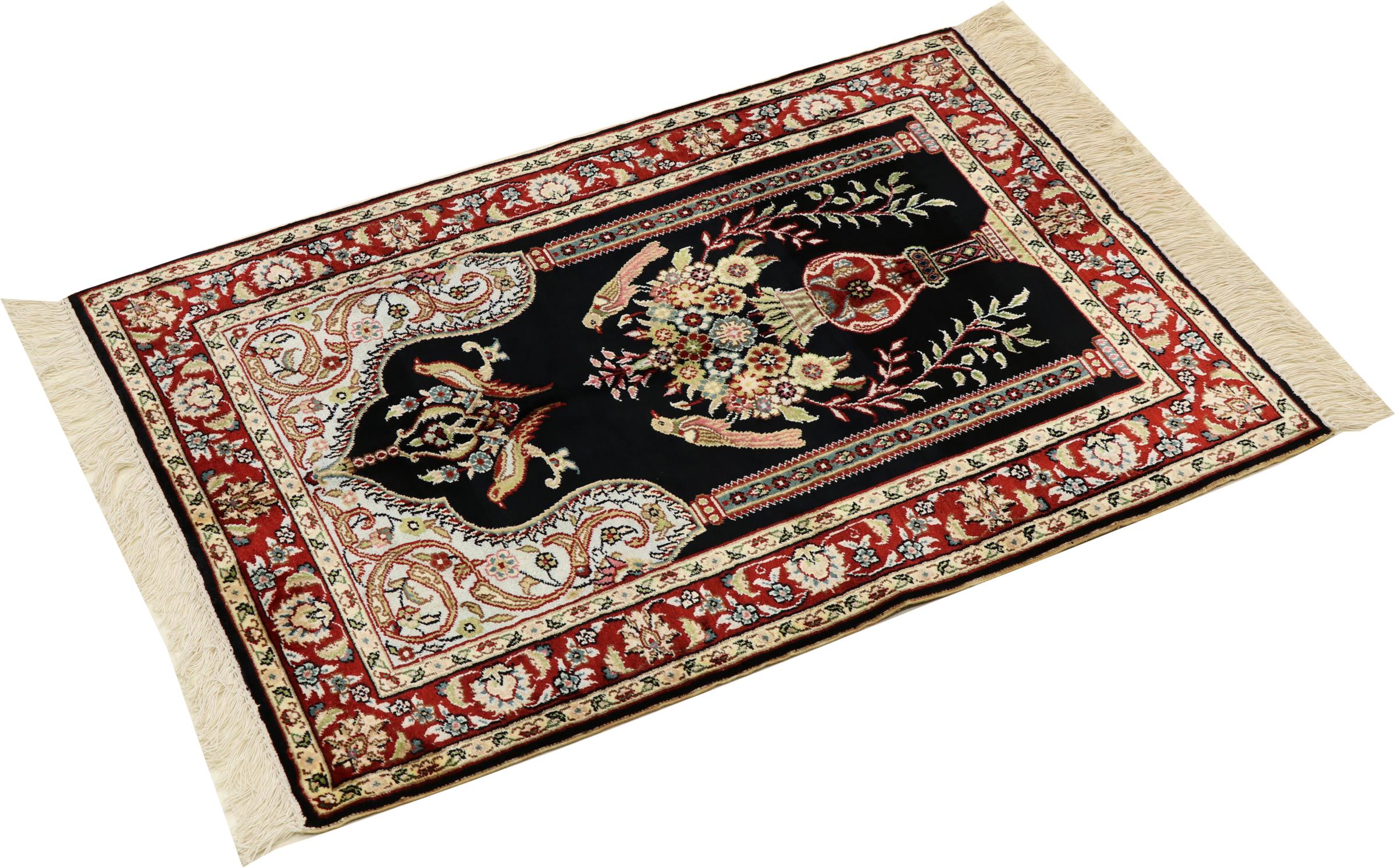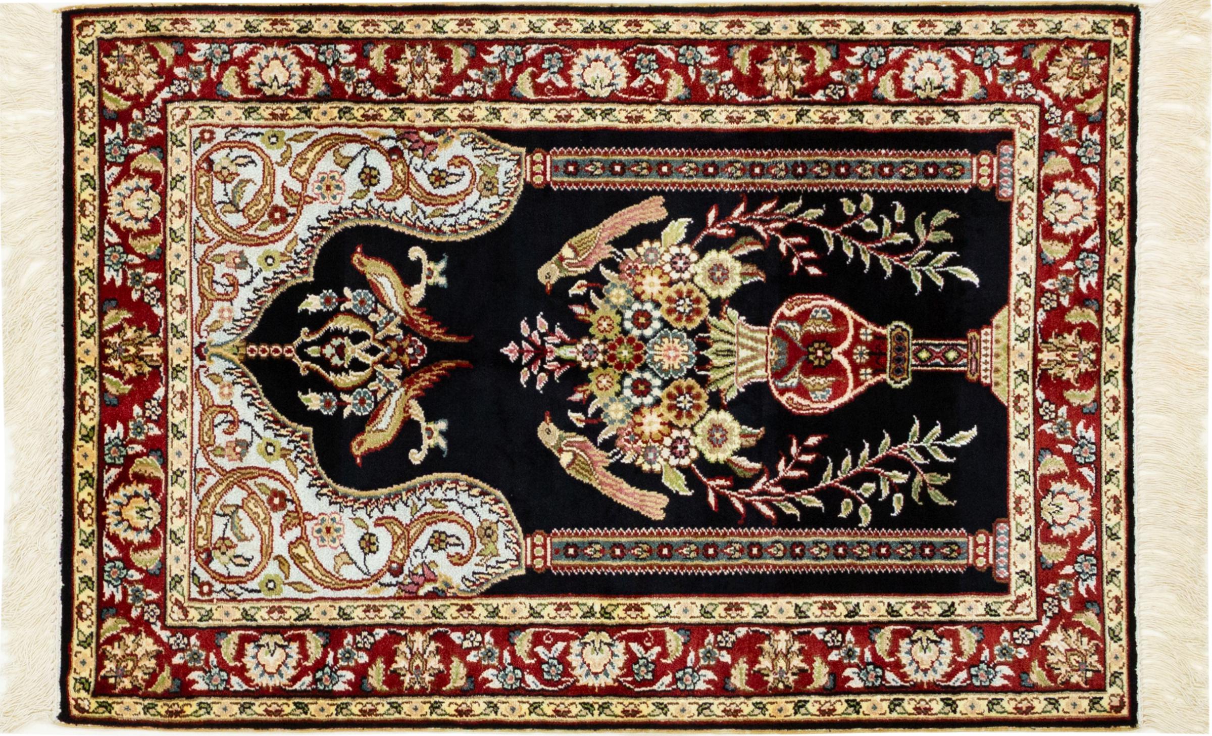 Tappeto-N.: 303292004668681 Dimensione: 93x62 cm Spessore: circa . 5 mm Nodi: 440 000 - 490 000 / m² Lavorazione: Annodato a mano Fondo: Seta Catena: Seta Origine: Cina Età: Nuovo Peso: circa . 2 kg Disponibile: Unico - Solo 1 disponibili
