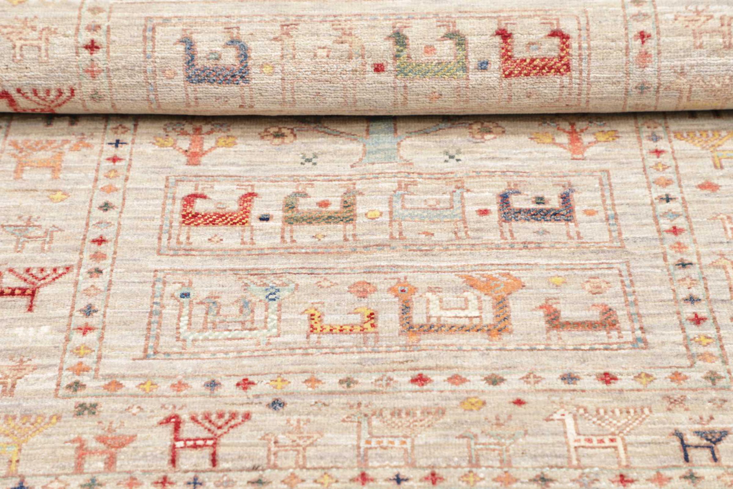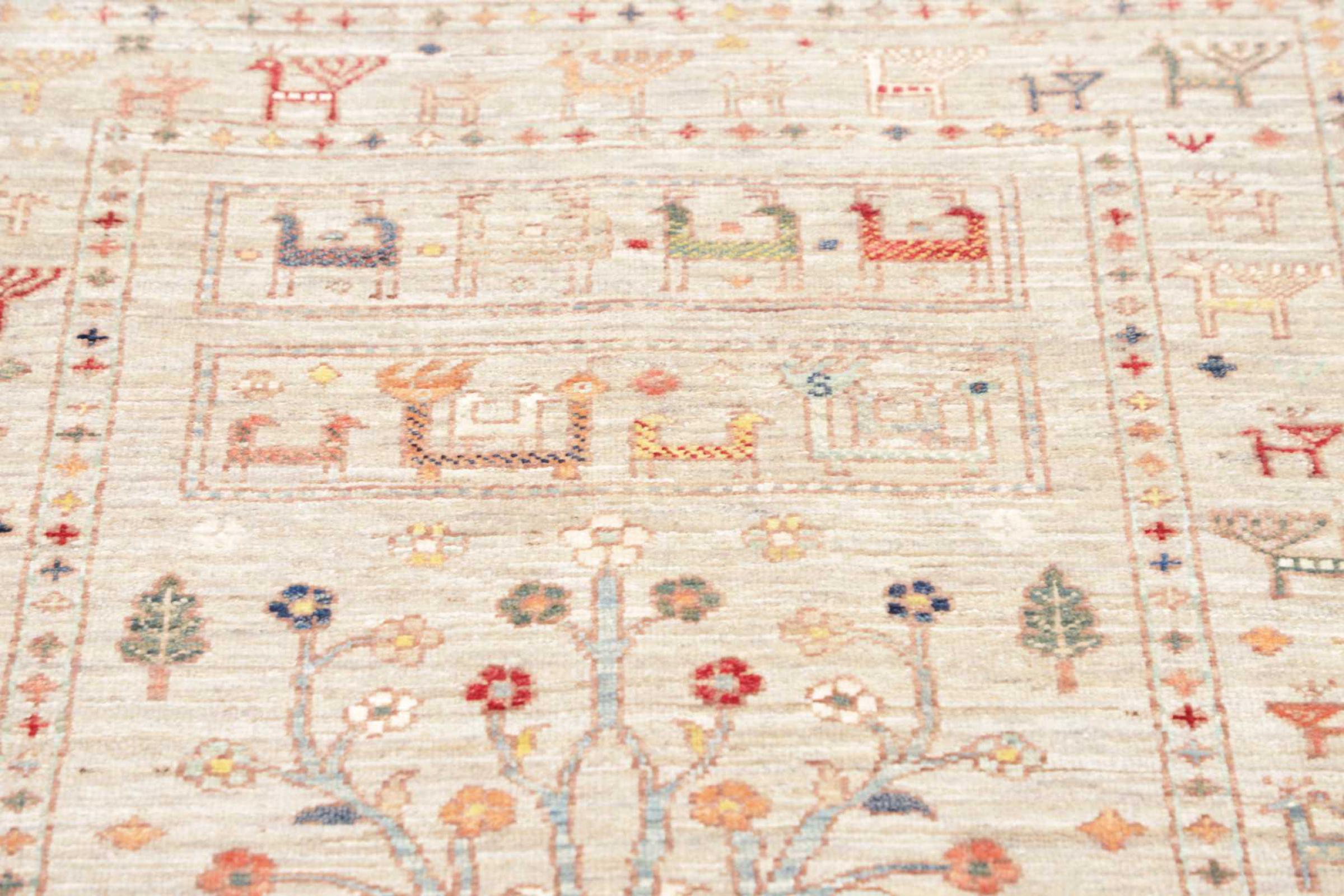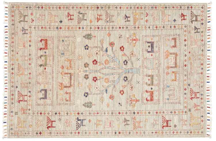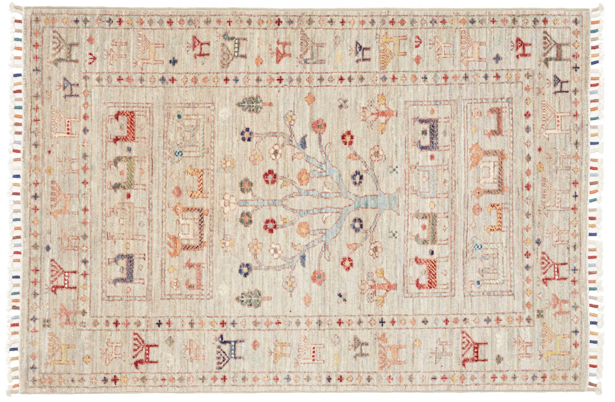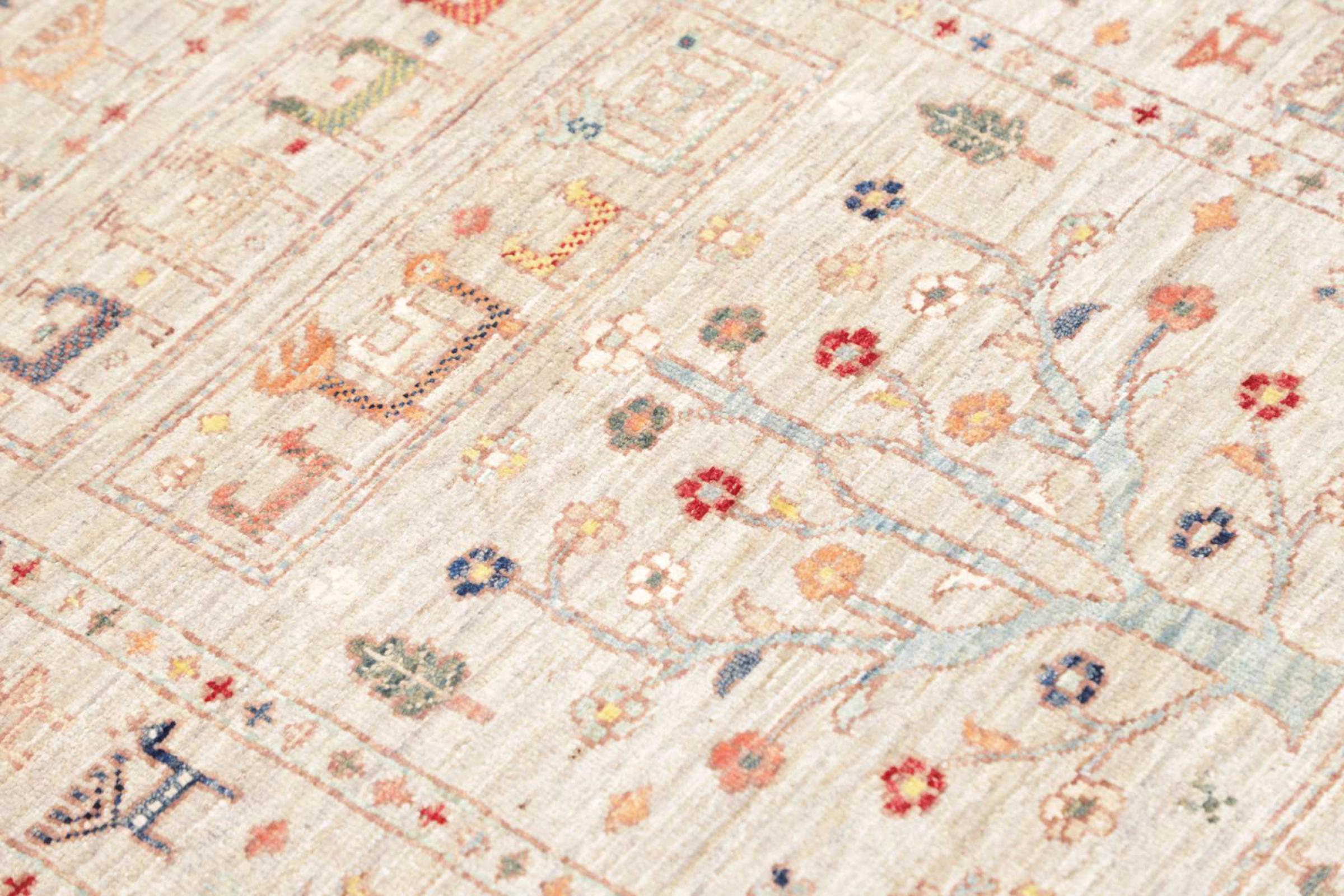 Questo tappeto è realizzato in lana di pecora filata a mano di altissima qualità. Soprattutto in Iran (ex Persia), Afghanistan e Pakistan la lana viene ancora filata a mano prima che inizi l'annodatura vera e propria del tappeto. La lana si è dimostrata nei secoli un materiale naturale ed estremamente resistente. Tra le altre cose, ha proprietà di repellenza allo sporco e di isolamento termico. Allo stesso tempo, la lana è incomparabilmente morbida e ha una lucentezza naturale.