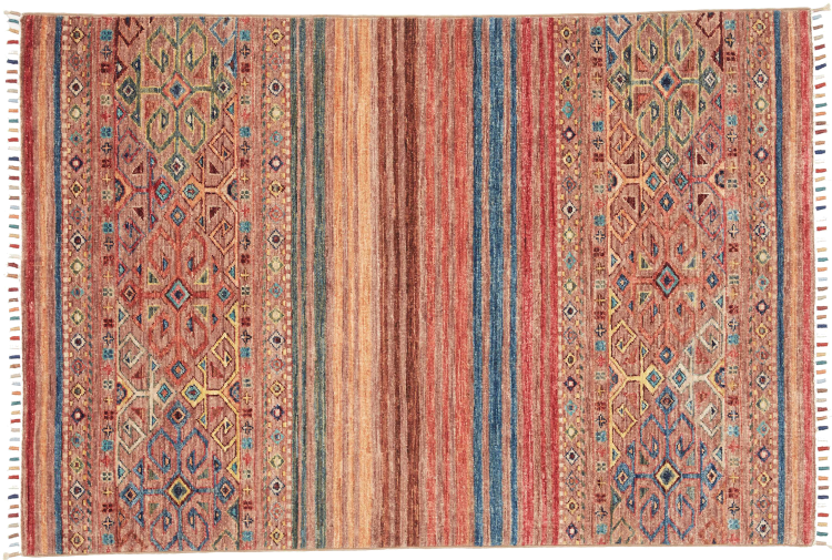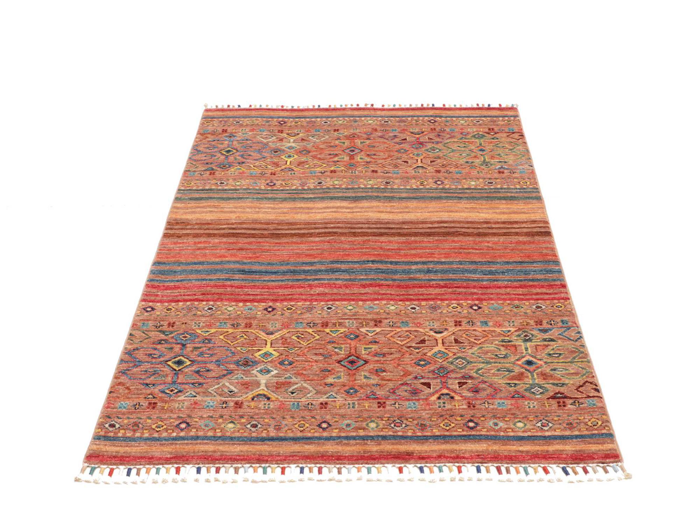 Tappeto-N.: 306877009884223 Dimensione: 147x100 cm Spessore: circa . 5 mm Nodi: 128 000 - 160 000 / m² Lavorazione: Annodato a mano Fondo: Lana filata a mano Catena: Cotone Origine: Pakistan Età: Nuovo Peso: circa . 5 kg Disponibile: Unico - Solo 1 disponibili