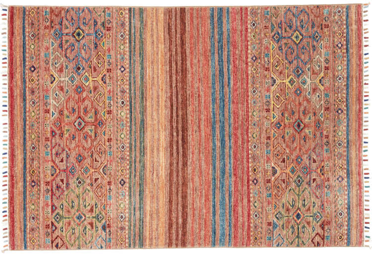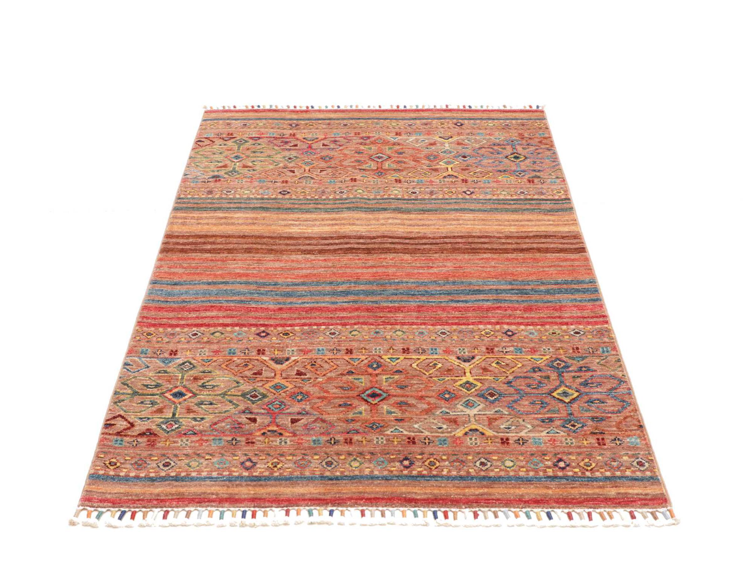 Tappeto-N.: 306863009091788 Dimensione: 147x101 cm Spessore: circa . 5 mm Nodi: 128 000 - 160 000 / m² Lavorazione: Annodato a mano Fondo: Lana filata a mano Catena: Cotone Origine: Pakistan Età: Nuovo Peso: circa . 5 kg Disponibile: Unico - Solo 1 disponibili