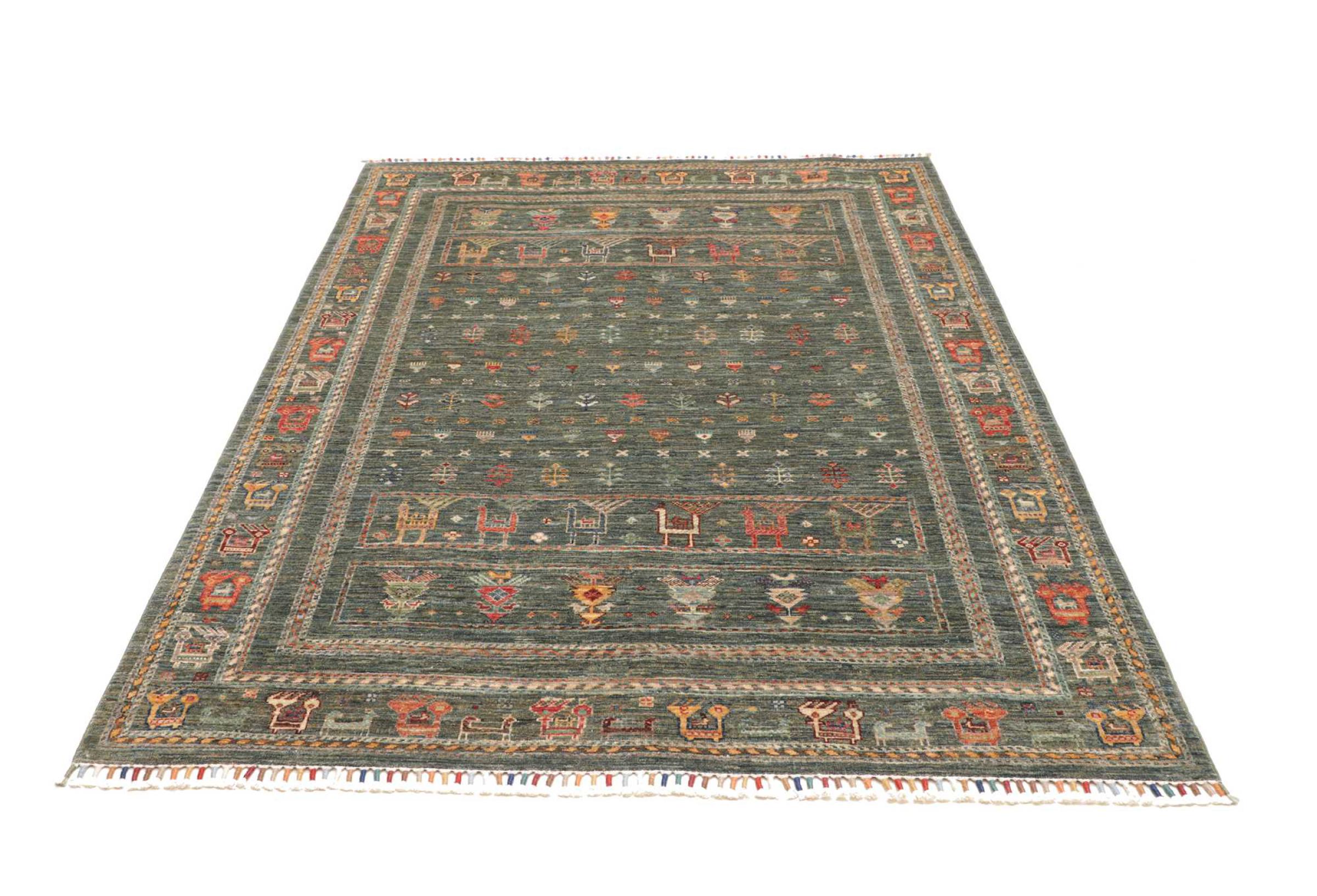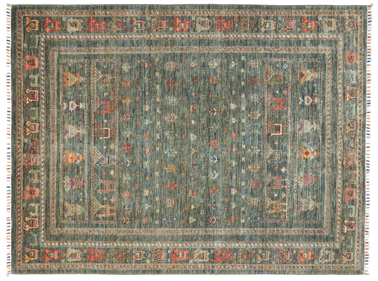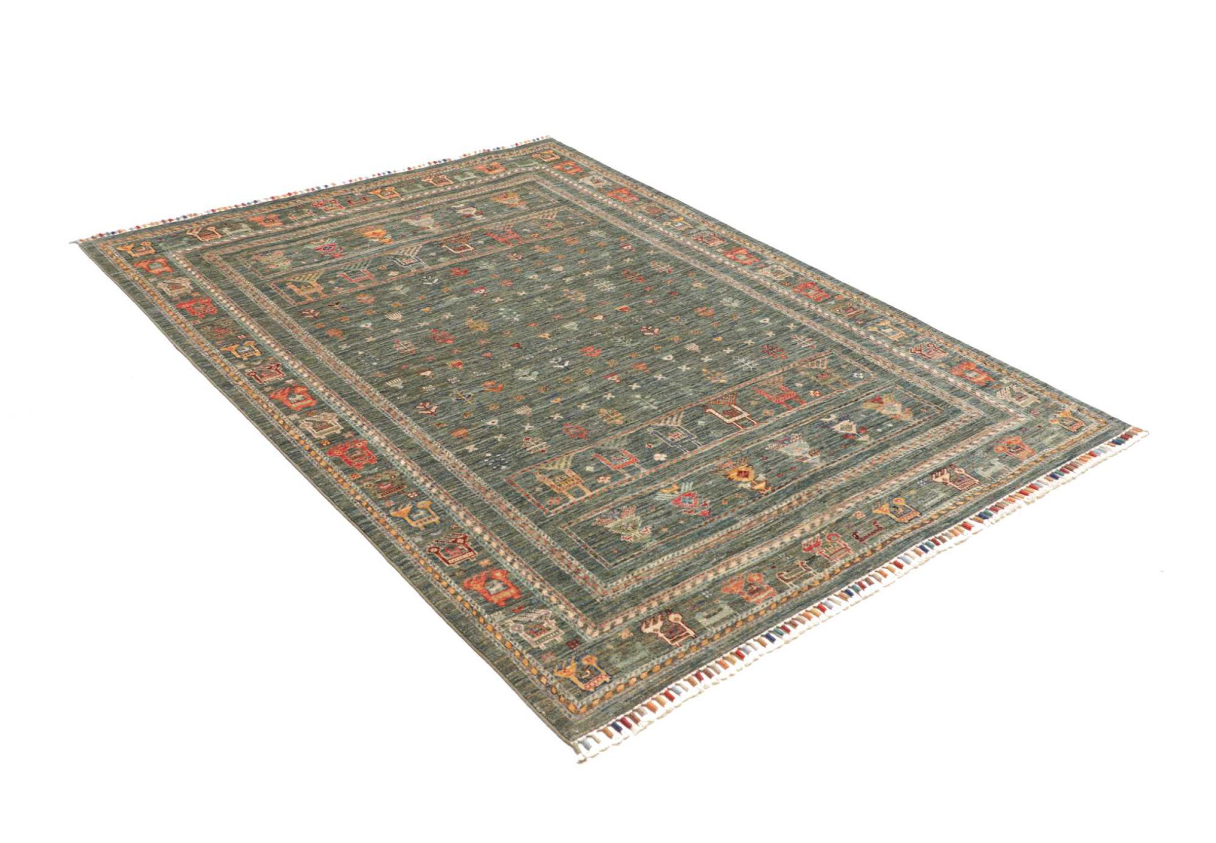 Tappeto-N.: 306698002765883 Dimensione: 192x146 cm Spessore: circa . 5 mm Nodi: 128 000 - 160 000 / m² Lavorazione: Annodato a mano Fondo: Lana filata a mano Catena: Cotone Origine: Pakistan Età: Nuovo Peso: circa . 10 kg Disponibile: Unico - Solo 1 disponibili
