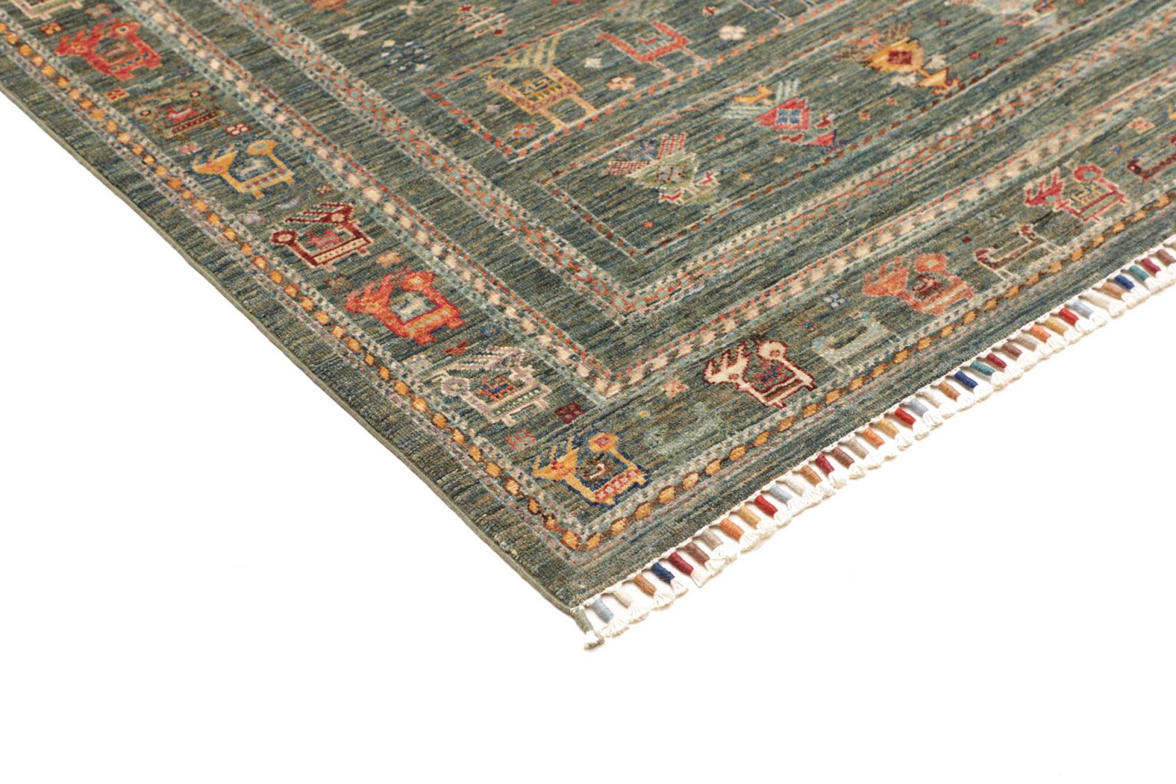 Questo tappeto è realizzato in lana di pecora filata a mano di altissima qualità. Soprattutto in Iran (ex Persia), Afghanistan e Pakistan la lana viene ancora filata a mano prima che inizi l'annodatura vera e propria del tappeto. La lana si è dimostrata nei secoli un materiale naturale ed estremamente resistente. Tra le altre cose, ha proprietà di repellenza allo sporco e di isolamento termico. Allo stesso tempo, la lana è incomparabilmente morbida e ha una lucentezza naturale.