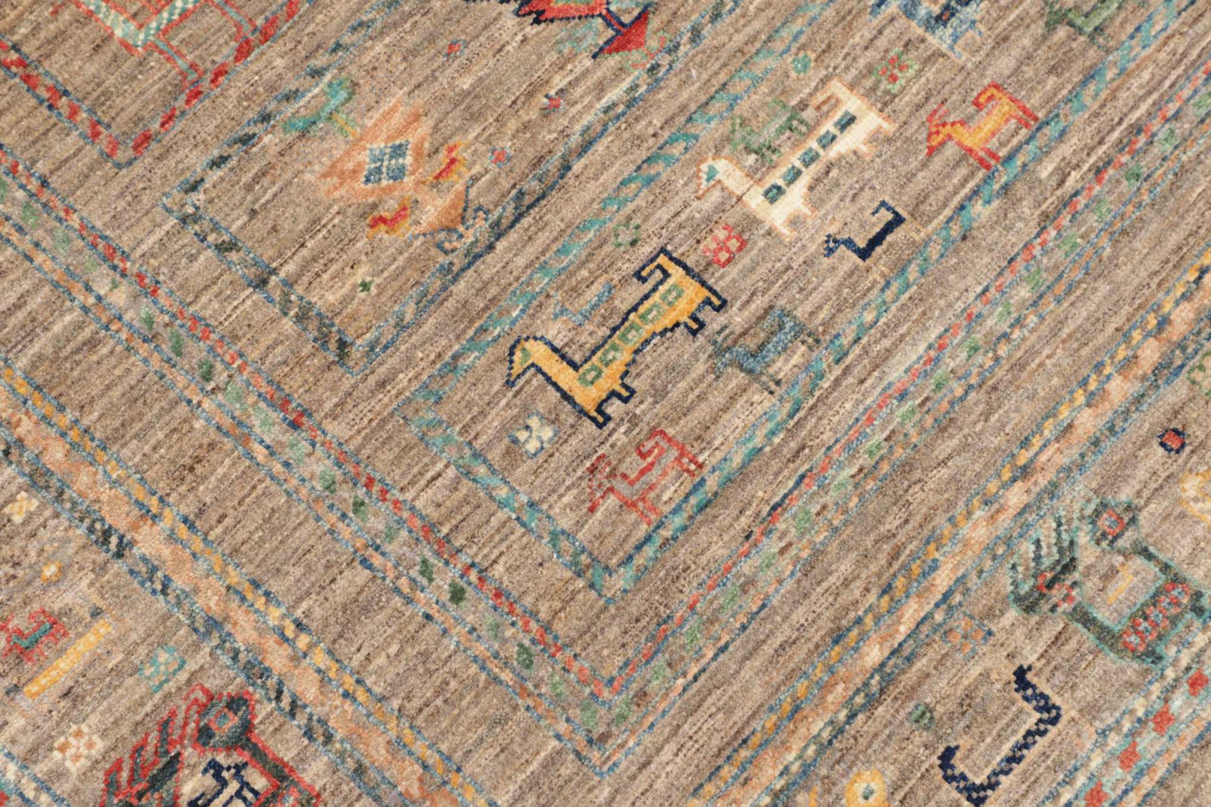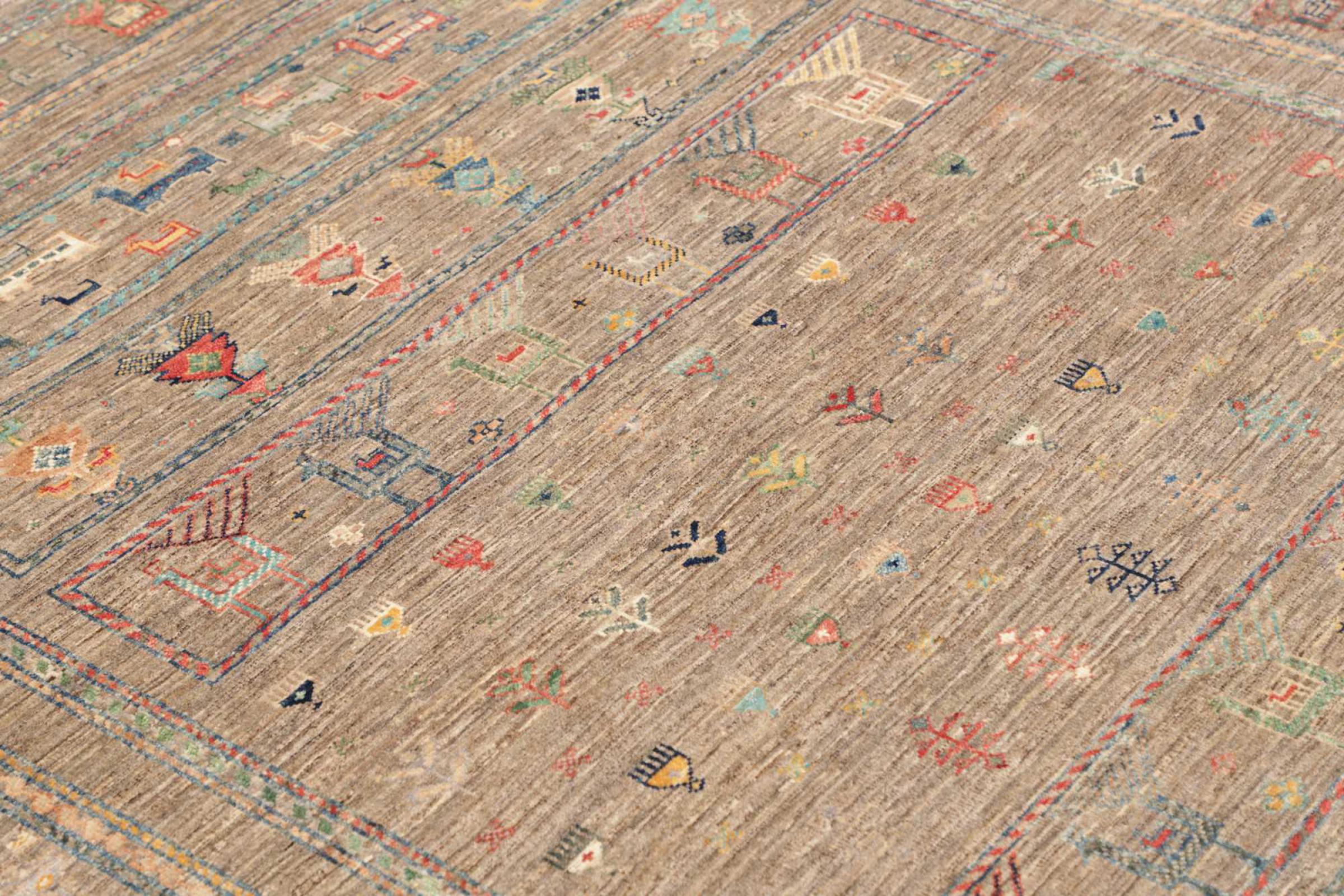 Questo tappeto è realizzato in lana di pecora filata a mano di altissima qualità. Soprattutto in Iran (ex Persia), Afghanistan e Pakistan la lana viene ancora filata a mano prima che inizi l'annodatura vera e propria del tappeto. La lana si è dimostrata nei secoli un materiale naturale ed estremamente resistente. Tra le altre cose, ha proprietà di repellenza allo sporco e di isolamento termico. Allo stesso tempo, la lana è incomparabilmente morbida e ha una lucentezza naturale.