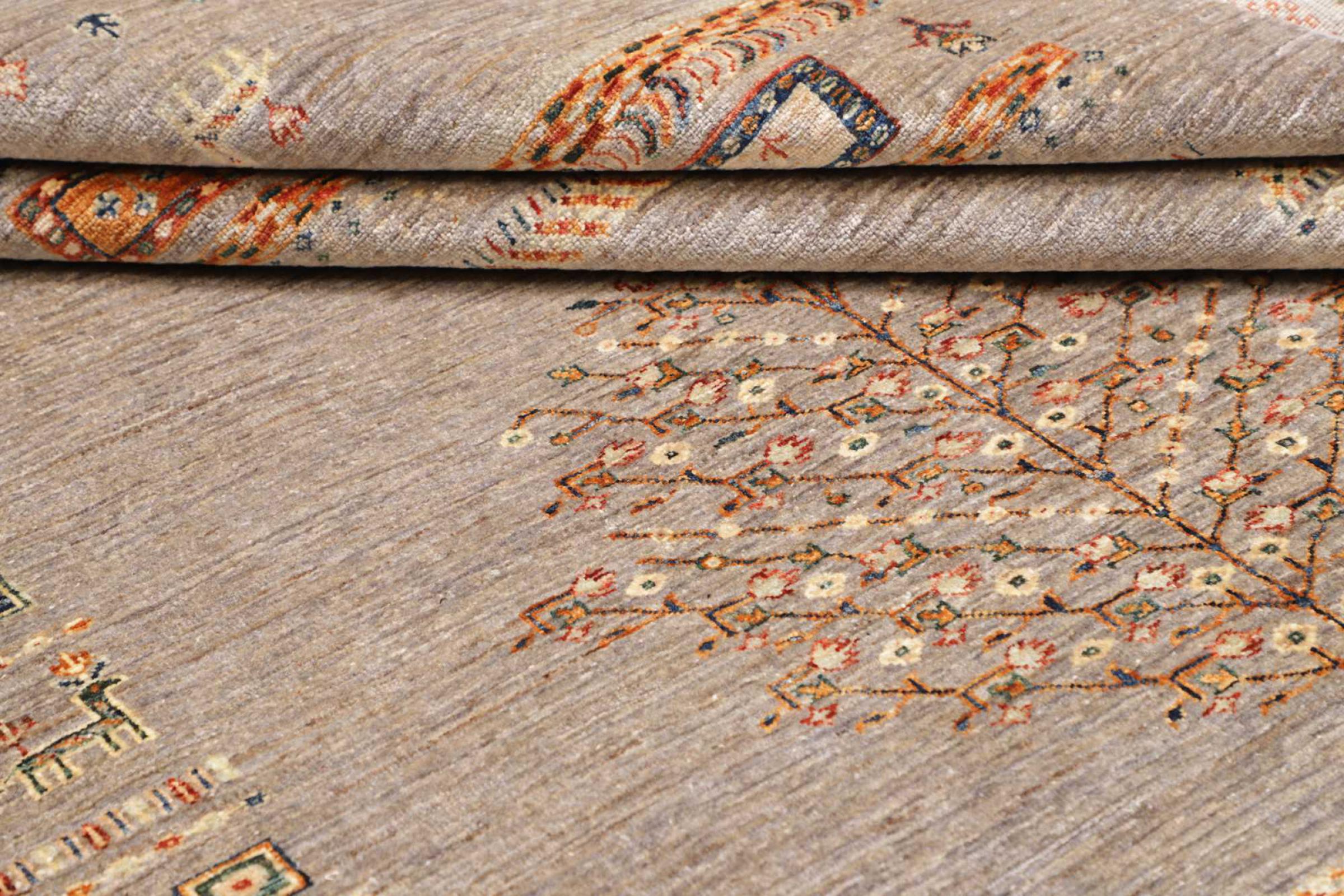 Questo tappeto è realizzato in lana di pecora filata a mano di altissima qualità. Soprattutto in Iran (ex Persia), Afghanistan e Pakistan la lana viene ancora filata a mano prima che inizi l'annodatura vera e propria del tappeto. La lana si è dimostrata nei secoli un materiale naturale ed estremamente resistente. Tra le altre cose, ha proprietà di repellenza allo sporco e di isolamento termico. Allo stesso tempo, la lana è incomparabilmente morbida e ha una lucentezza naturale.