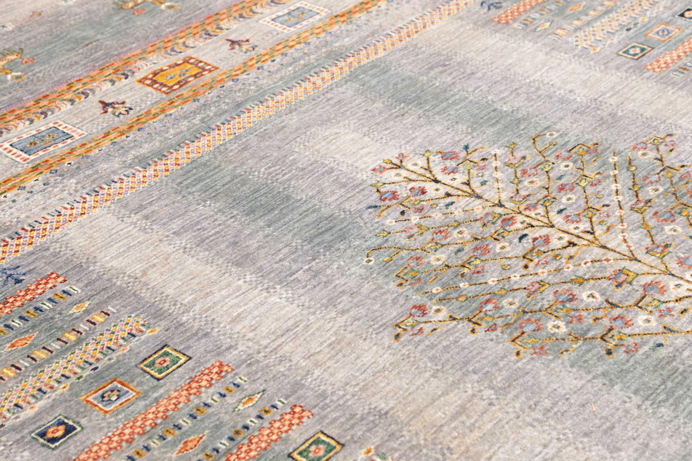 Questo tappeto è realizzato in lana di pecora filata a mano di altissima qualità. Soprattutto in Iran (ex Persia), Afghanistan e Pakistan la lana viene ancora filata a mano prima che inizi l'annodatura vera e propria del tappeto. La lana si è dimostrata nei secoli un materiale naturale ed estremamente resistente. Tra le altre cose, ha proprietà di repellenza allo sporco e di isolamento termico. Allo stesso tempo, la lana è incomparabilmente morbida e ha una lucentezza naturale.