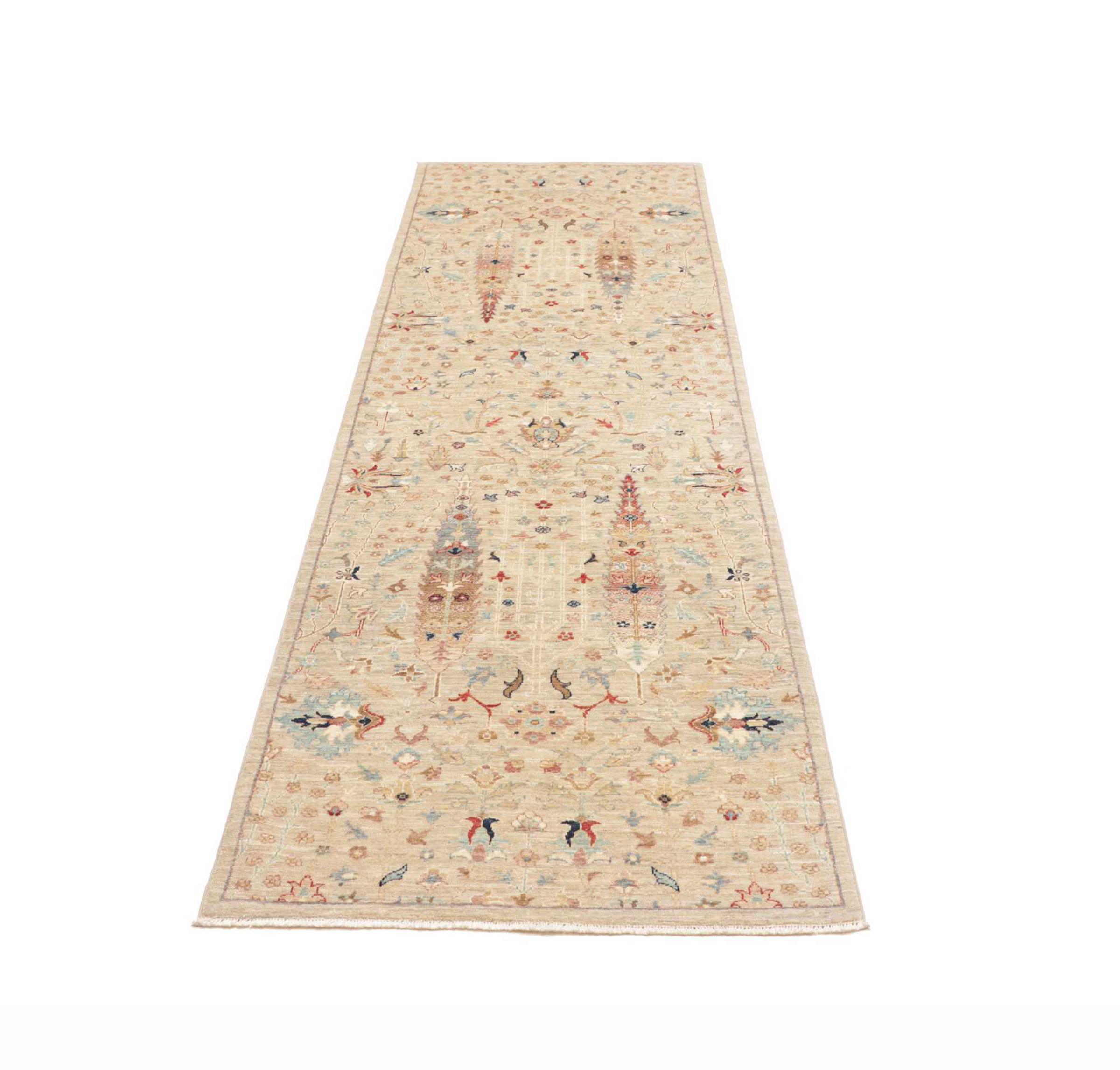 Tappeto-N.: 306513001124395 Dimensione: 292x82 cm Spessore: circa . 5 mm Nodi: 200 000 - 250 000 / m² Lavorazione: Annodato a mano Fondo: Lana filata a mano Catena: Cotone Origine: Pakistan Età: Nuovo Peso: circa . 8 kg Disponibile: Unico - Solo 1 disponibili