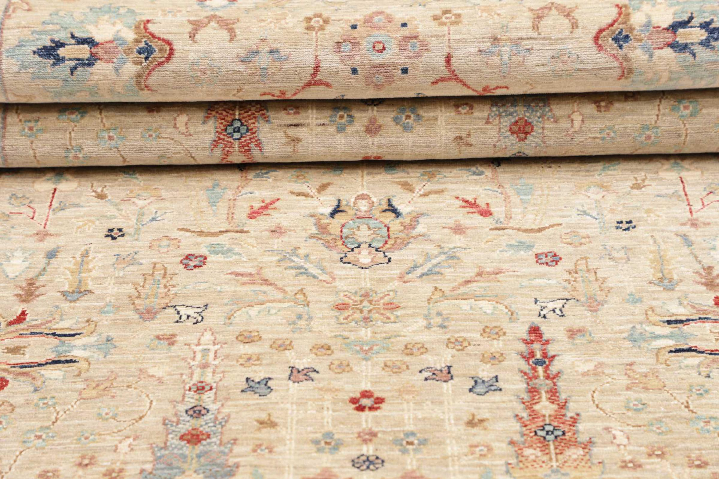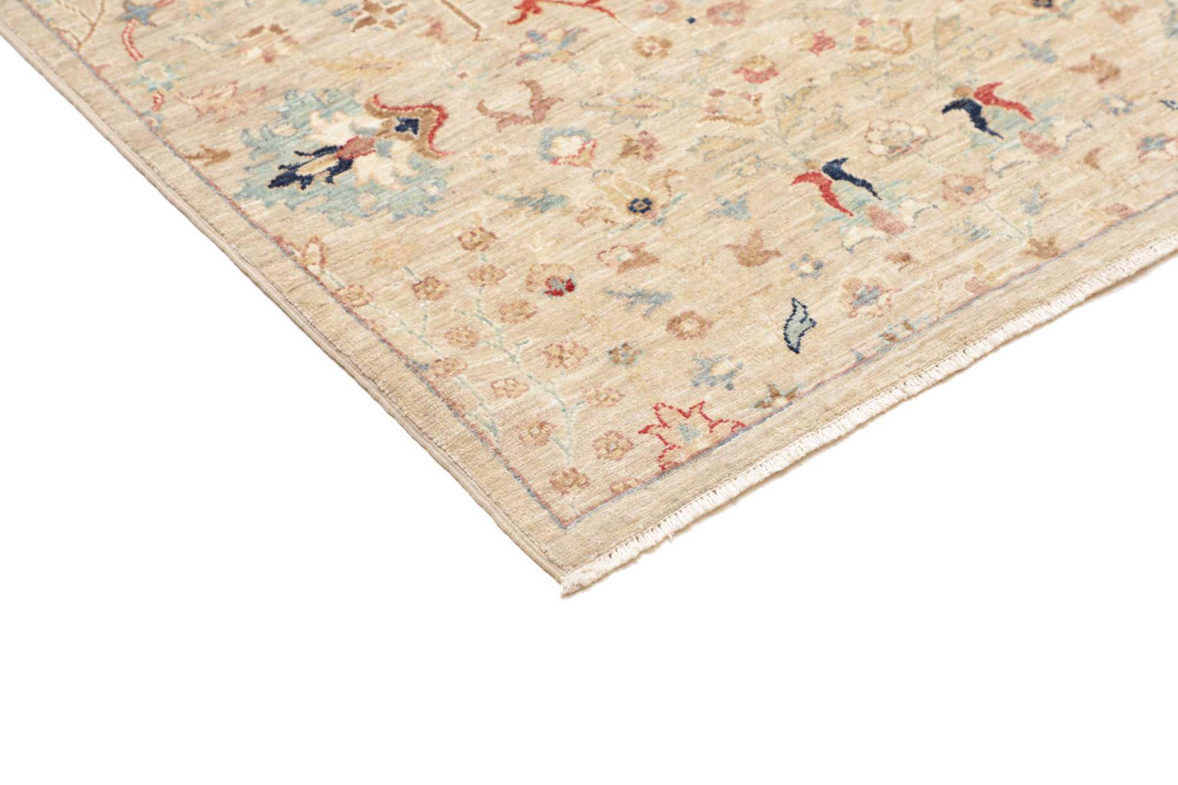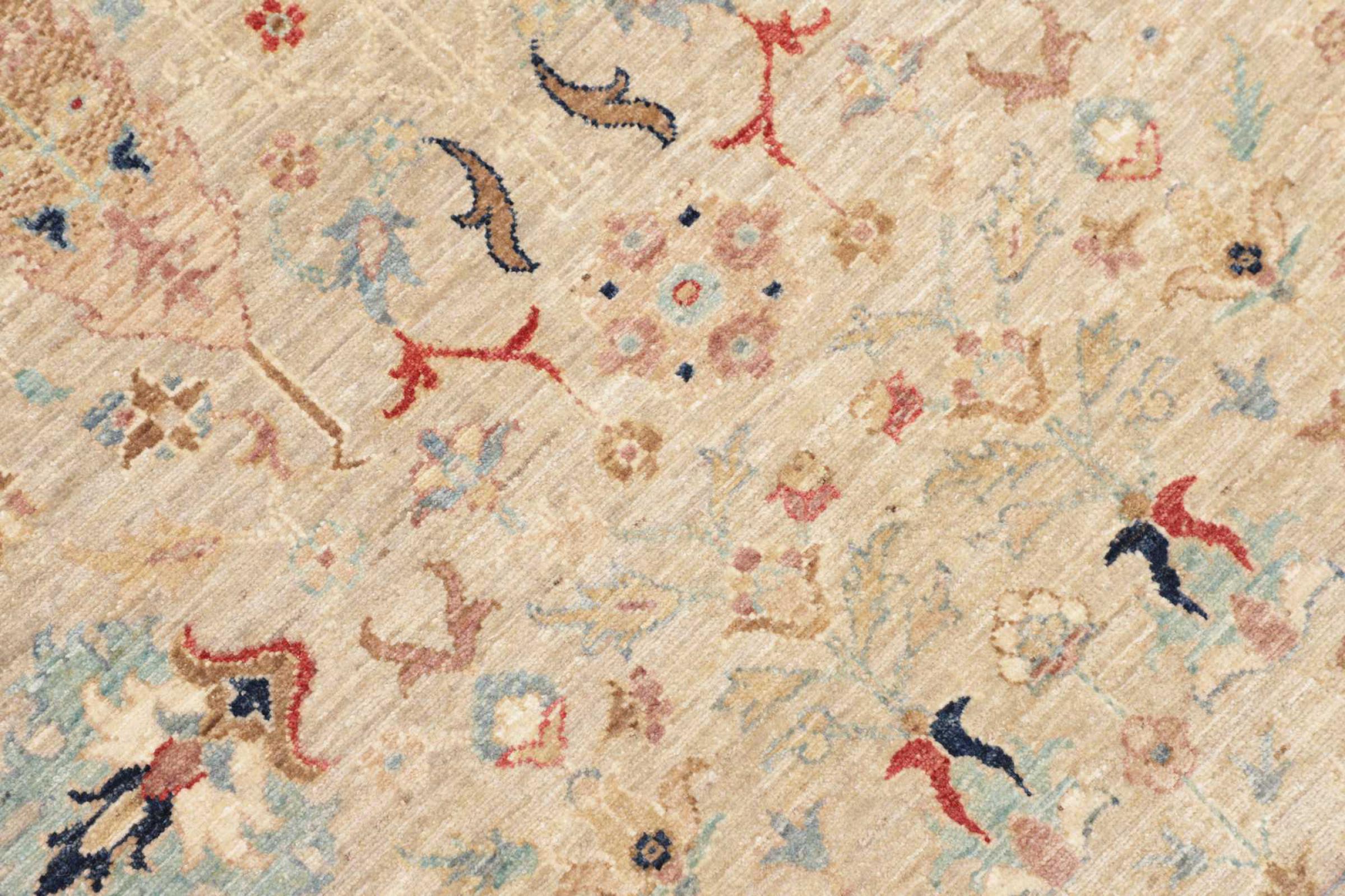 Questo tappeto è realizzato in lana di pecora filata a mano di altissima qualità. Soprattutto in Iran (ex Persia), Afghanistan e Pakistan la lana viene ancora filata a mano prima che inizi l'annodatura vera e propria del tappeto. La lana si è dimostrata nei secoli un materiale naturale ed estremamente resistente. Tra le altre cose, ha proprietà di repellenza allo sporco e di isolamento termico. Allo stesso tempo, la lana è incomparabilmente morbida e ha una lucentezza naturale.
