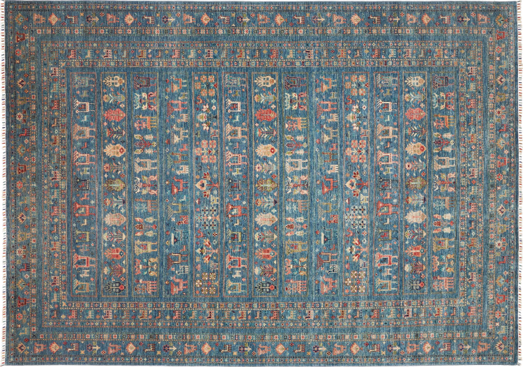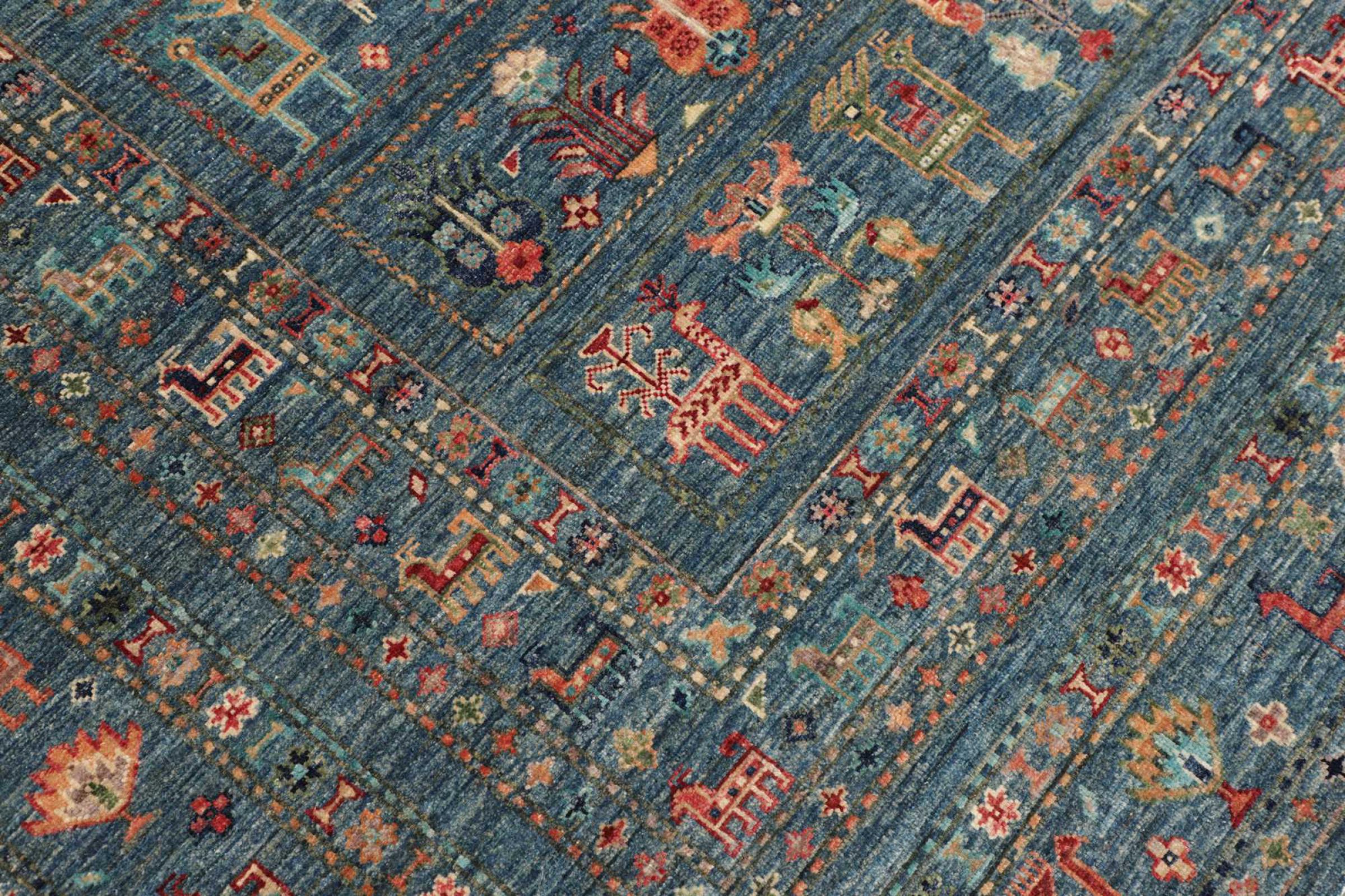 Questo tappeto è realizzato in lana di pecora filata a mano di altissima qualità. Soprattutto in Iran (ex Persia), Afghanistan e Pakistan la lana viene ancora filata a mano prima che inizi l'annodatura vera e propria del tappeto. La lana si è dimostrata nei secoli un materiale naturale ed estremamente resistente. Tra le altre cose, ha proprietà di repellenza allo sporco e di isolamento termico. Allo stesso tempo, la lana è incomparabilmente morbida e ha una lucentezza naturale.