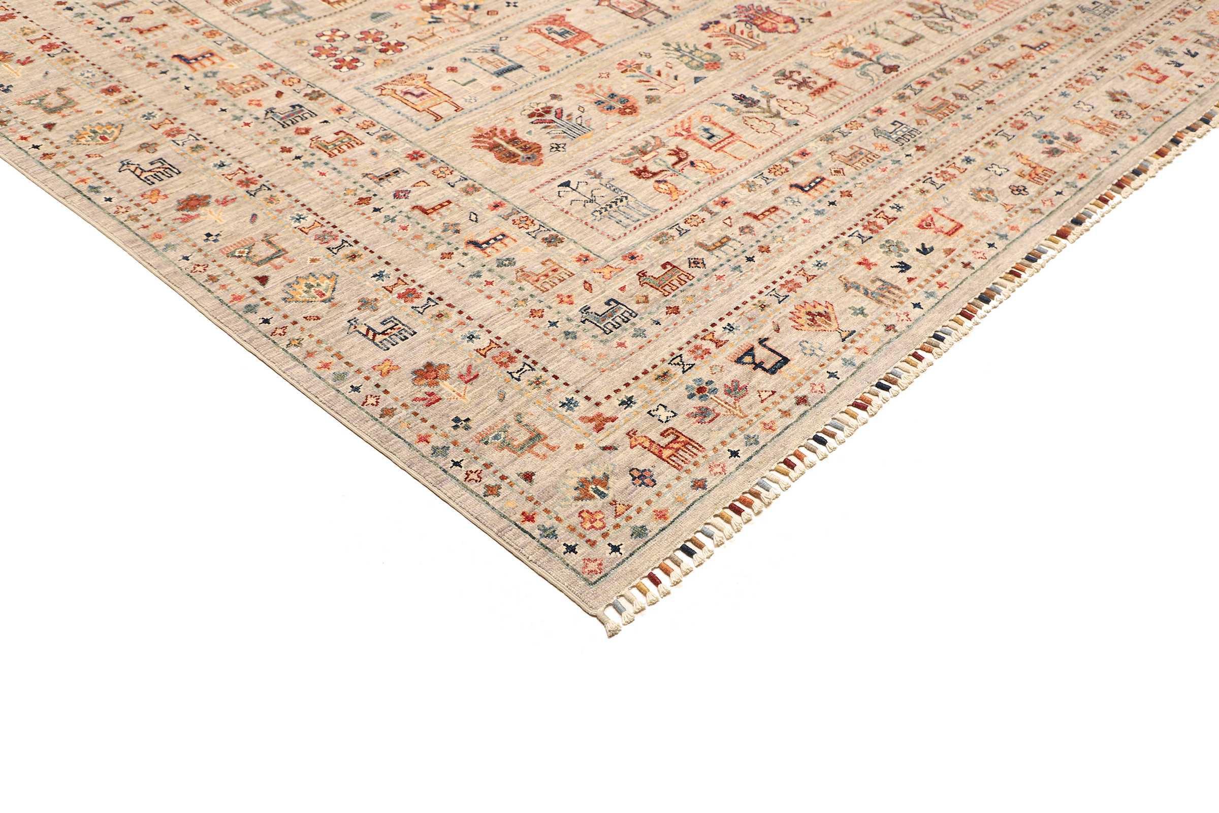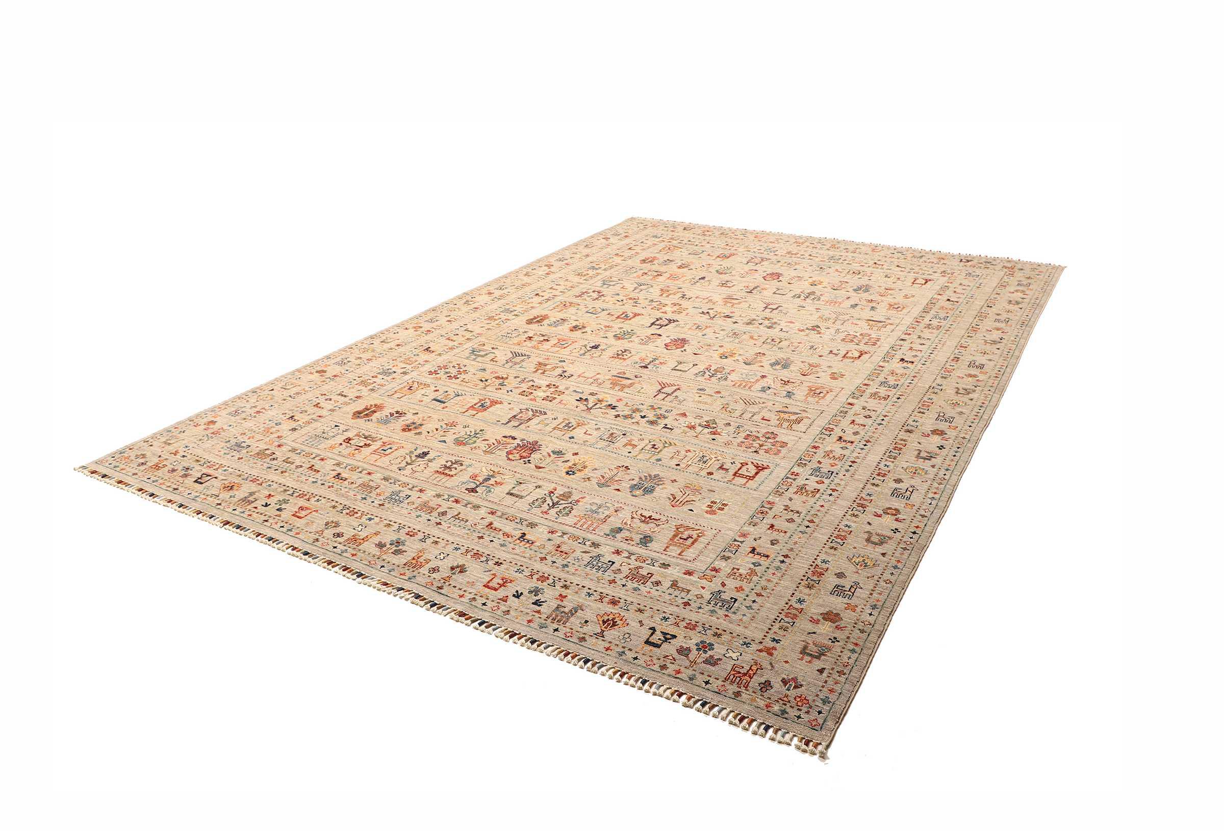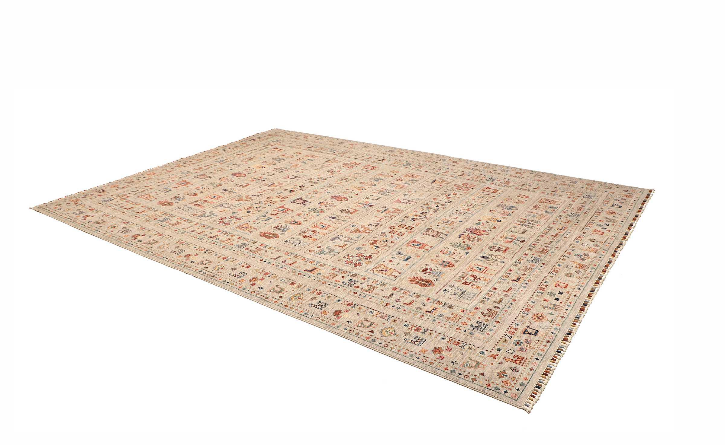 Tappeto-N.: 306174004156243 Dimensione: 347x250 cm Spessore: circa . 5 mm Nodi: 128 000 - 160 000 / m² Lavorazione: Annodato a mano Fondo: Lana filata a mano Catena: Cotone Origine: Pakistan Età: Nuovo Peso: circa . 30 kg Disponibile: Unico - Solo 1 disponibili